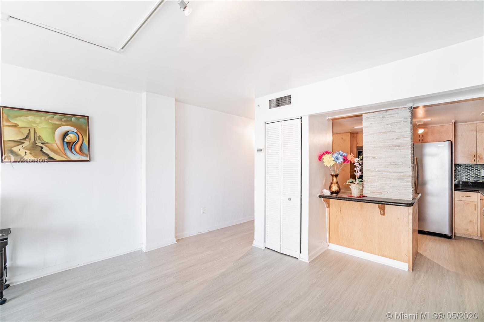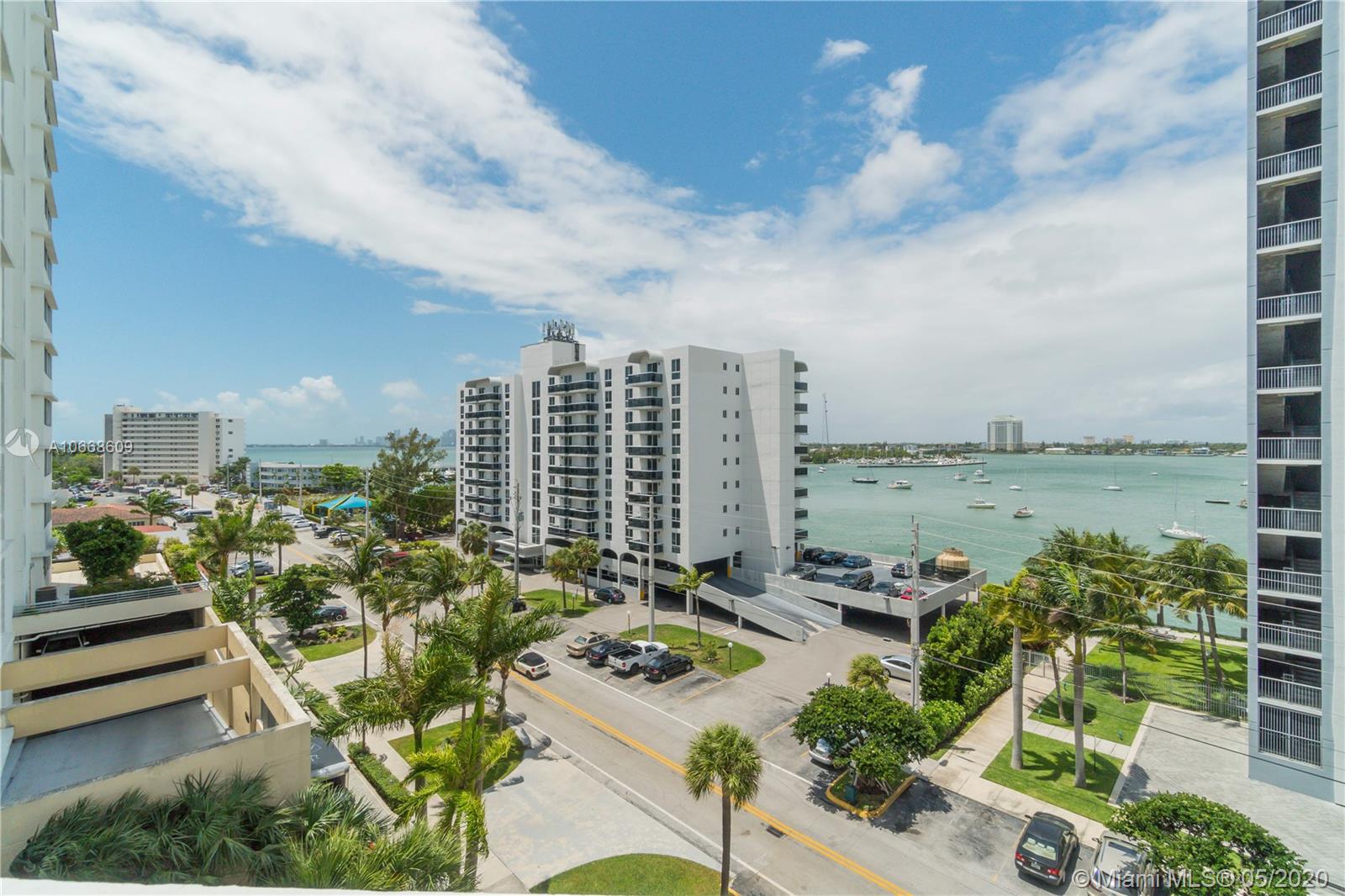 Selling due to fast relocation! Gorgeous east & west water views of Biscayne Bay, from this beautifully upgraded 2 BR, 2 BA, 2 balconies in Bay- front Magaluf Towers, a boutique building w/ only 34 units, 4 units p/floor. This condo features modern NEW light-gray laminate waterproof floors, remodeled kitchen w/ light wood cabinets, Granite counters & Stainless Steel appliances, opened to the living-dining room, remodeled baths & two custom-made closets w/ wood shelves. Hurricane Shutters, tank less water heater, assigned covered parking under the bldg. & Guest parking in front of the bldg. One Laundry room p/floor. Beautiful Bay front pool. Perfect for investors, rentals are allowed immediately. Pet friendly. Steps from Community waterfront Park. Great BAY-FRONT value you can’t miss!