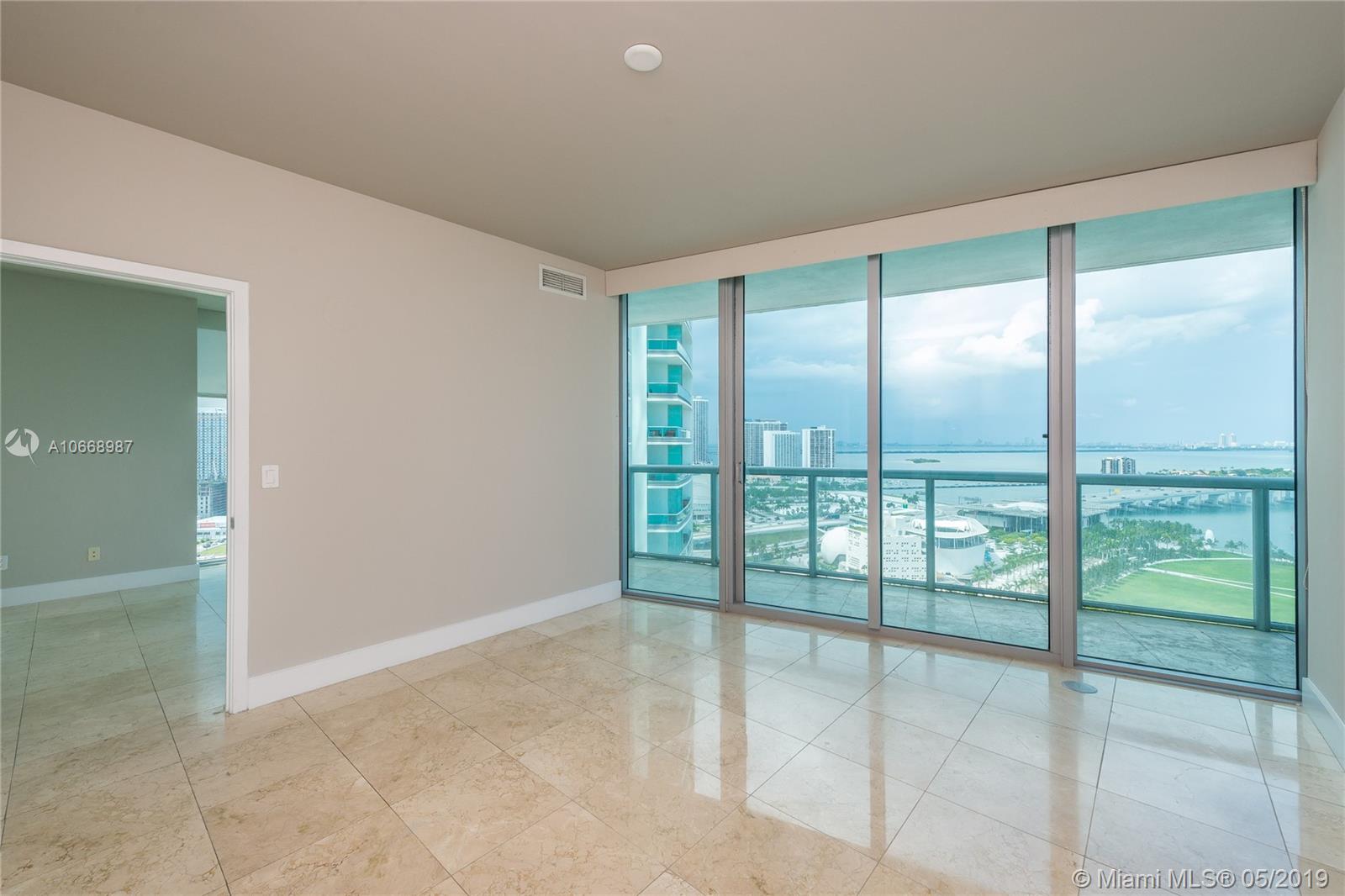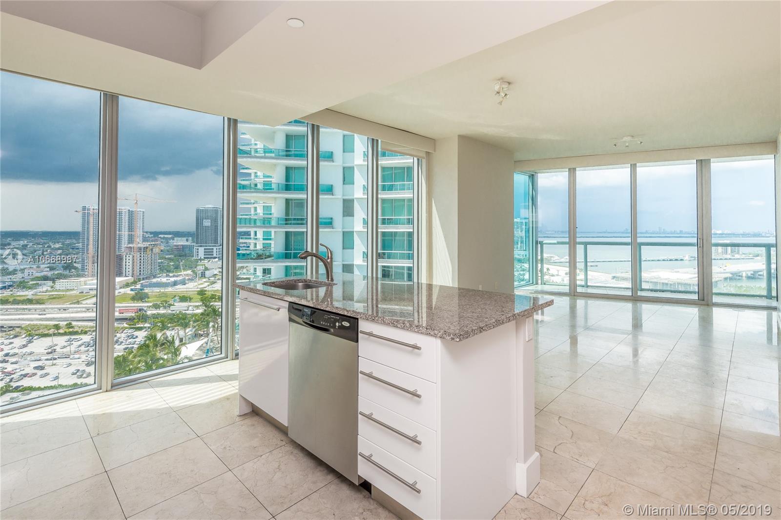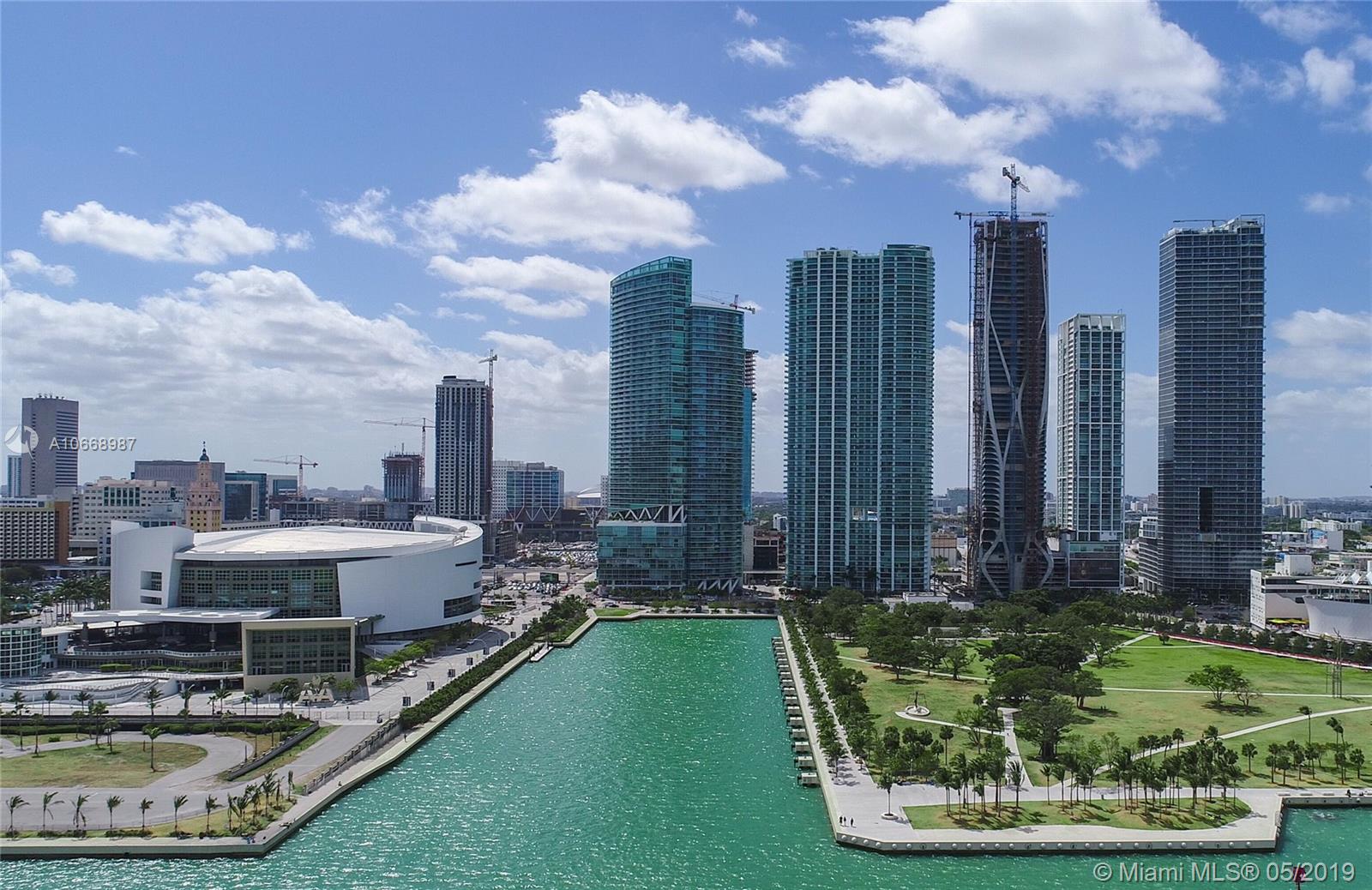Incredible bay & ocean views from this spacious 2 Bed/2 Bath located directly in front of the American Airlines Arena & Museum Park. This beautiful 1,318 interior square feet downtown condo features sunrise and sunset balconies, stainless steel appliances, washer/dryer, tiled flooring throughout, and walk-in closets in each bedroom. Includes 1 assigned parking space + storage. Building approved for 5% Down