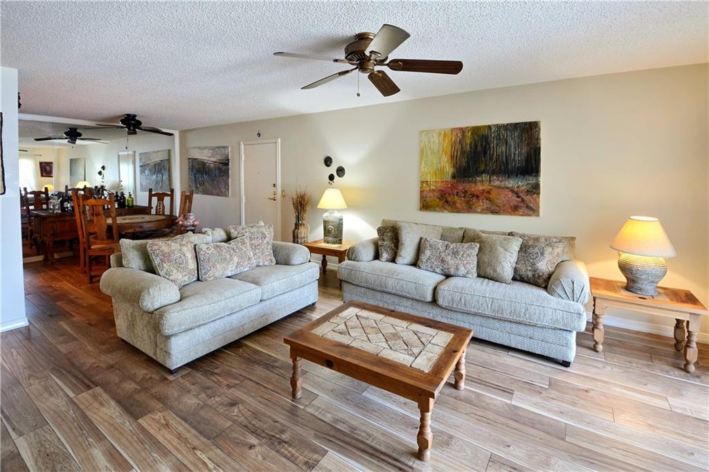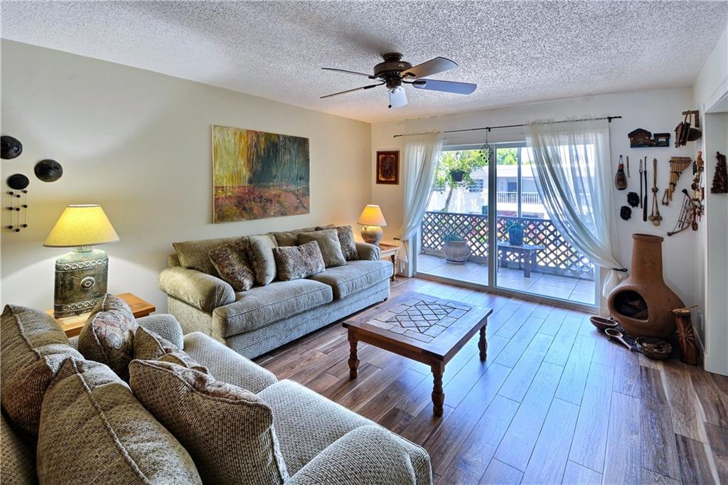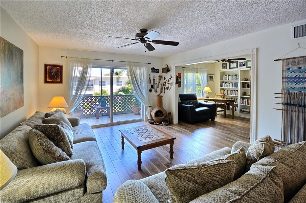 Exceptional Updates throughout this bright open floor plan, ideal for today's lifestyle. The gourmet kitchen opens onto the dining area & large great room. Sliding glass doors afford access to a screened in balcony with waterway views & extra storage. The master suite offers tranquil waterway views & is large enough for a sitting area & boasts a lavish custom bathroom. The 2nd bedroom is currently used as a den/office. Washer/Dryer hookup is available. Dockage available thru association. Sq Ft from bcpa believed accurate
