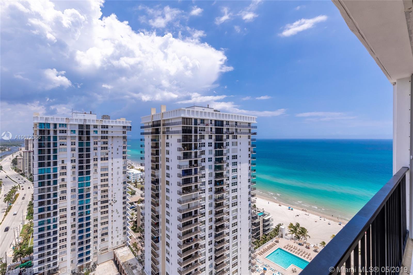 High floor, lovely 2br/2ba with great ocean and Intracoastal views. Hurricane proof windows throughout. Enjoy the resort style amenities featuring 2 swimming pools, 2 gyms, 2 saunas, a restaurant, kids room, billiards and ping pong, brand new salon, business center, free zumba, yoga, aqua aerobics, 24 hr. security, and much more. Walk to the famous Hollywood Broadwalk. Sold AS IS with furniture. Covered parking #421. Priced for a quick sale!