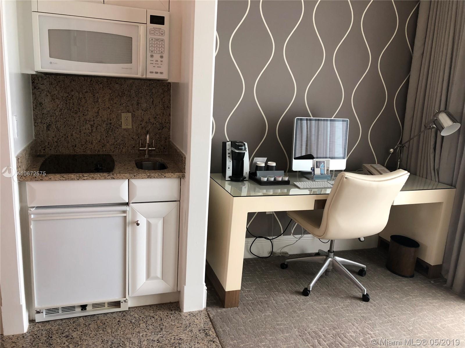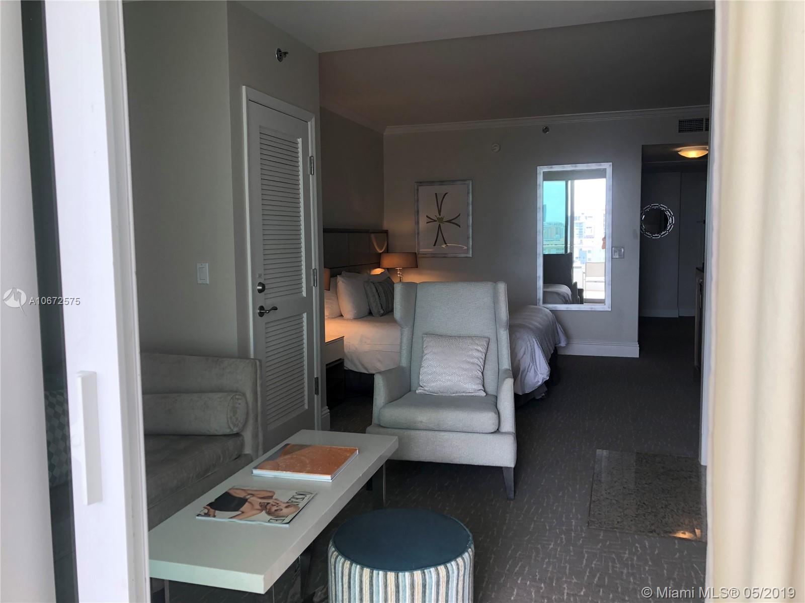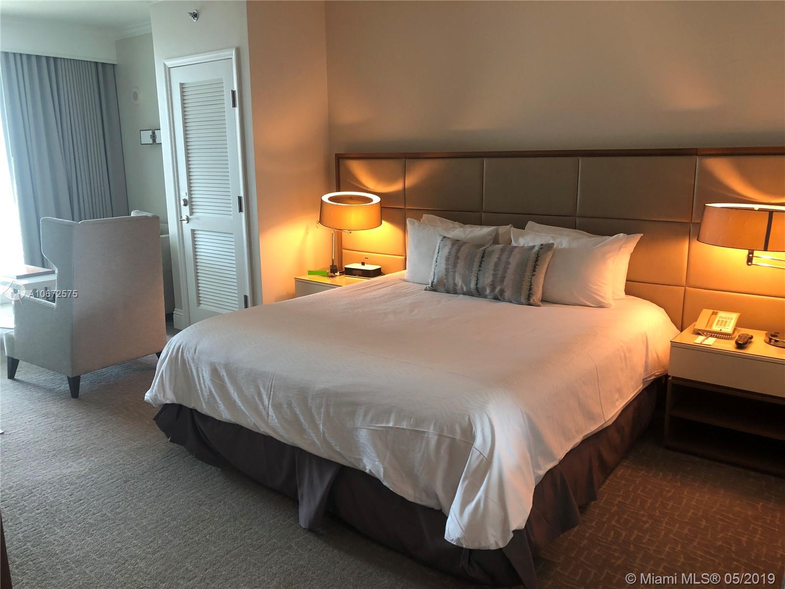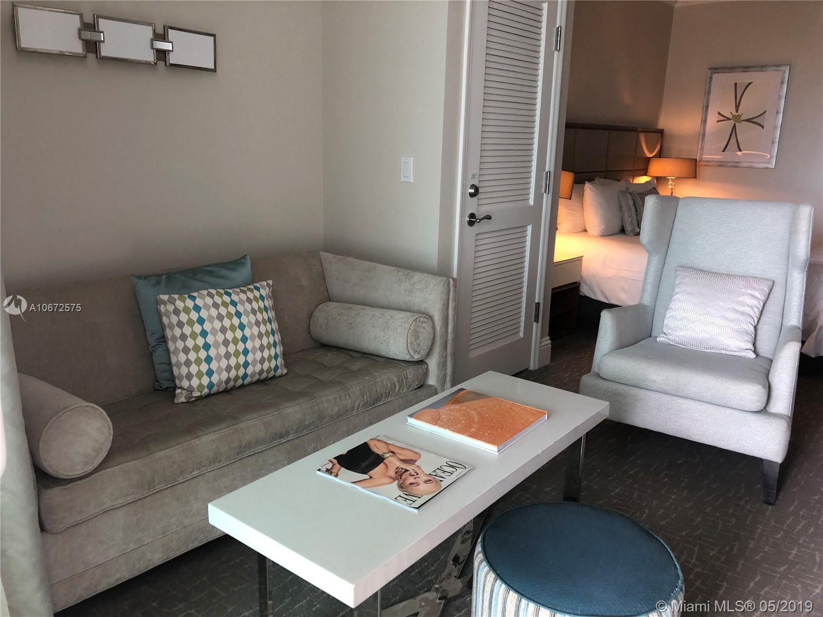 Beautiful Jr. Suite with city views at Fontainebleau II. Enjoy full service, vacation-style living in a furnished turnkey unit with ample closet space and with a big balcony. This unit comfortably sleeps four with a king bed, living area with sleeper sofa and kitchenette. Enroll in hotel rental program & receive income while away! The Fontainebleau Resort offers luxury amenities on 22 oceanfront acres including award-winning restaurants, LIV night club, Lapis spa & state-of-the-art fitness center. Maintenance includes: AC, local calls, electricity, valet + daily free breakfast in the owner’s lounge.