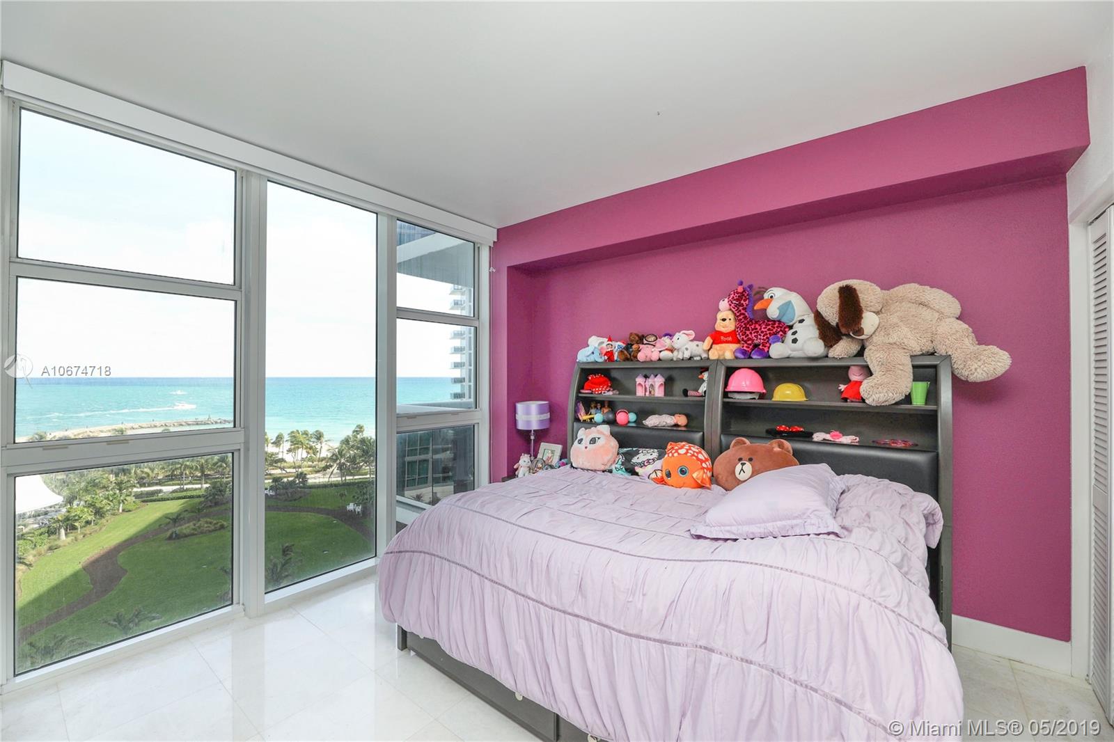 Best line in the building rarely available with direct unobstructed ocean views from each room. First class with impact windows, large balcony, white marble floors with 4ftx4ft slabs in the living room, designer kitchen and appliances, blackout shades, apartment hallways and lobby have been newly renovated in 2018 with modern finishes and modern furniture Amenities include a large heated pool and hot tub, movie theater, 3000 sq ft. modern gym and spa facing the pool, large party room facing the pool, food market with food cooked to order with delivery service to the beach, and beach service is included for lounge chairs and umbrellas Valet parking and security, the beach features a bike and running path. Best beach in Dade County close to Bal Harbour Shops and to the Ritz Carlton Hotel.