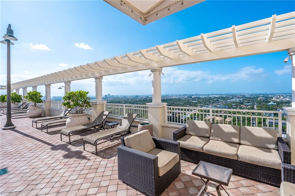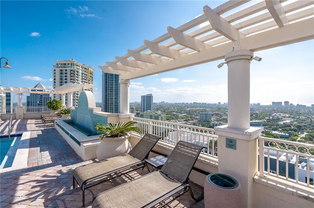 Immaculate South facing 2 bed/2 bath w/a distant view to the ocean, port and the airport. Well maintained with custom lighting fixtures, split bedroom floorplan and close proximity to the elevator and lobby area for ease of access. The deck offers access from the living room and master bedroom. Building boasts amazing amenities such as heated rooftop pool, state-of-the art fitness center, racquet/handball court, basketball court, business center and community room/café. Easily walkable to downtown Las Olas, and quick access to all major highways, the beach and the airport. 5 minutes from everything.
