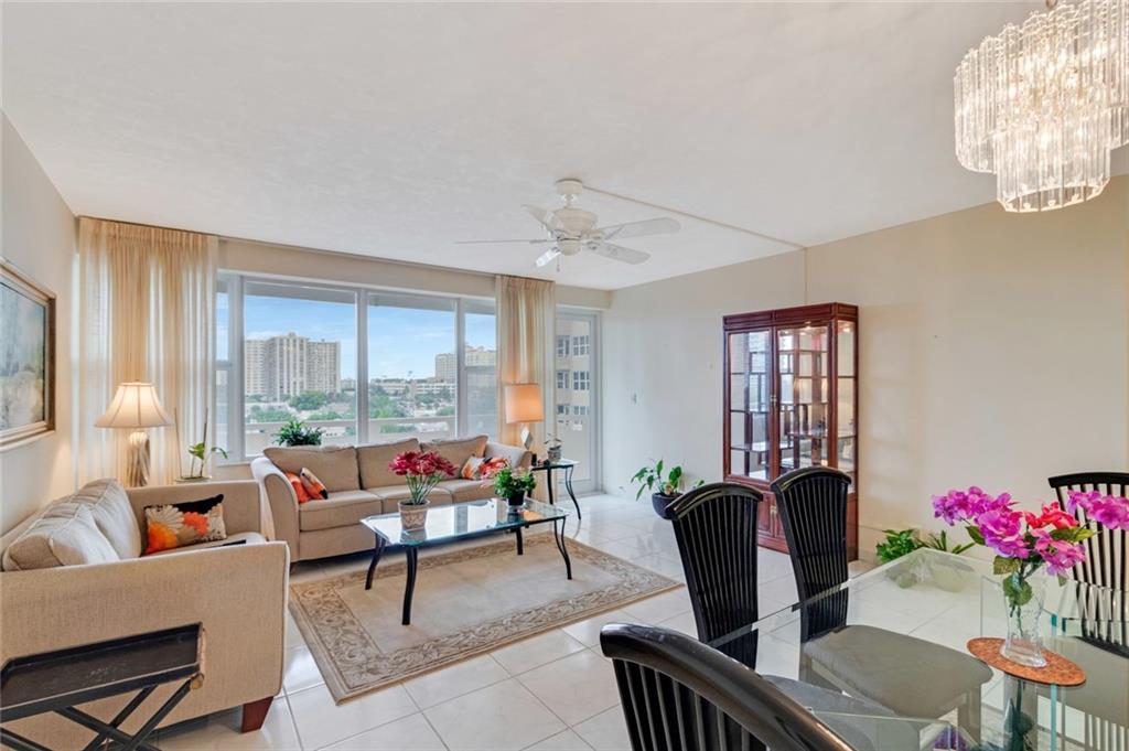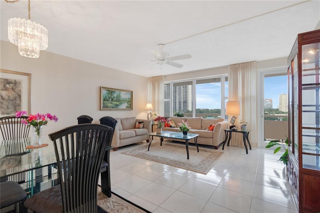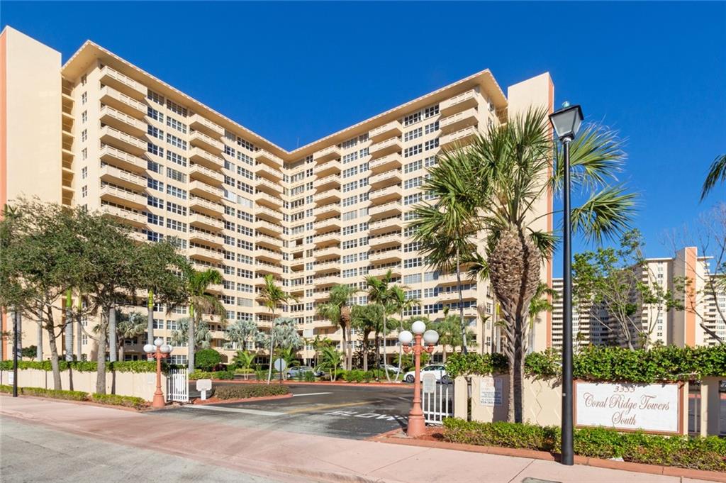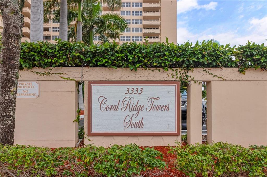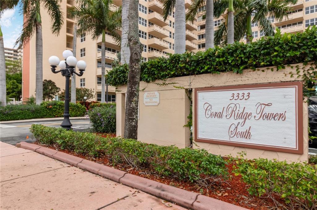 Fantastic, Southeast facing 2 bedroom, 2 bath unit in the best building in Coral Ridge Towers! Enjoy views of both the ocean and the skyline of Fort Lauderdale beach from your balcony. Unit features an open floorplan with tile floors throughout, an expansive dinning area, lovely window treatments, great storage and hurricane impact windows and doors. The bedrooms are very large and offer plenty of room for a king size bed and a sitting area. The Furniture in the unit is negotiable. Kitchen features a breakfast area with lot of cabinetry and has been well maintained. The complex offers 24 hour security, resort style amenities including resort style pool, fitness center, card rooms and a beautiful formal lobby.