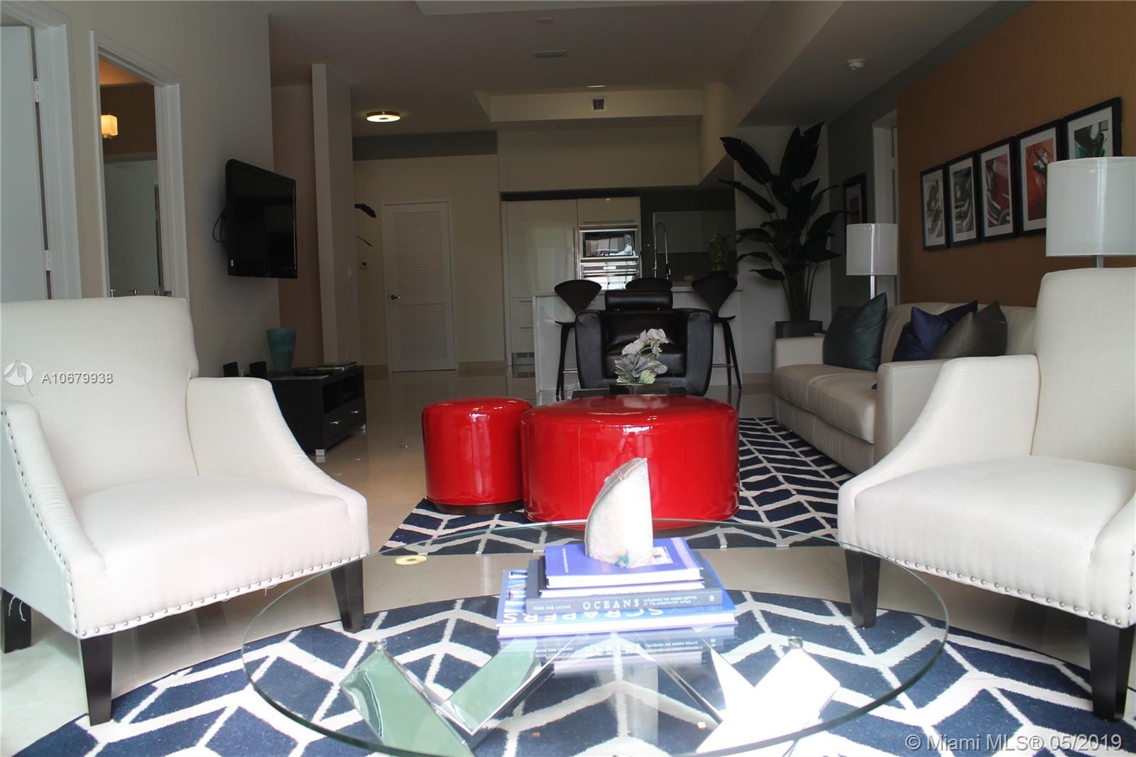 A MUST SEE UNIT at St. Tropez - Beautiful 2 bed + 2 bath + Den Townhome. Model unit professionally decorated and fully furnished. featuring oversized living spaces and amazing canal/partial ocean views. Arrive by car by each in private community dock. This resort style complex features a state of the art gym, Versace themed party room, private library and private beach club. The unit features top of the line appliances. Beach access, concierge, valet. Grade A school district. 1 assigned space + valet.