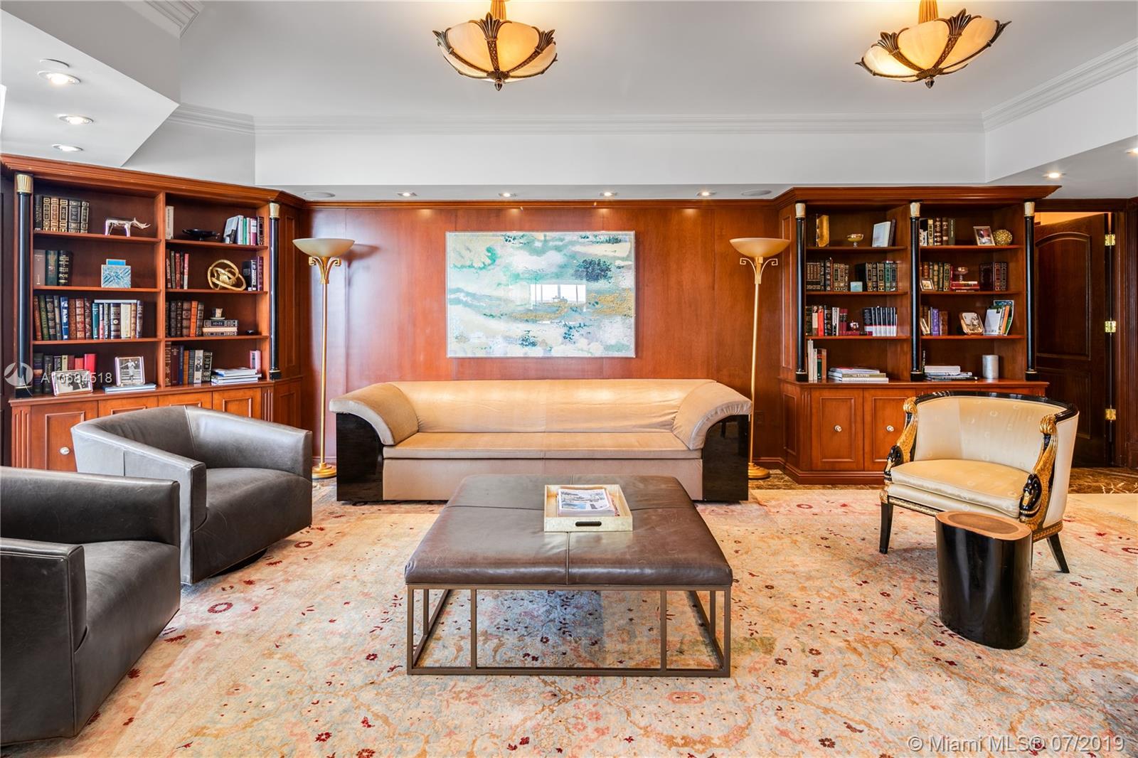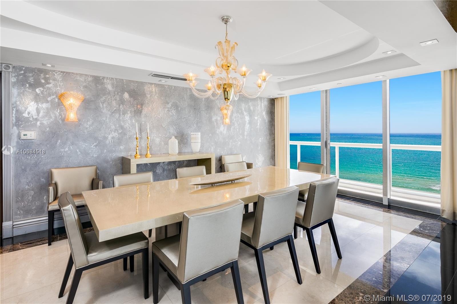 One-of-a-kind unit at the luxury Solimar in Surfside. Owner combined 3 units from the developer and into one for a spacious 6 bedroom, 5 bathroom, 2 half bath, and 6,230 sf unit. Take private elevator to foyer entrance and immediately be greeted by panoramic ocean views with flow-through layout. Unit offers large living room, dining room, family room, library, private office, balconies, maid's quarter, bar & entertainment area, and master suite with large walk-in closet. Building has 5 star amenities including 24 hour security, valet, pool + beach service, gym and unit includes 220 sf cabana. Great location across from the Bal Harbour Shops and adjacent to the shops of Harding Ave.