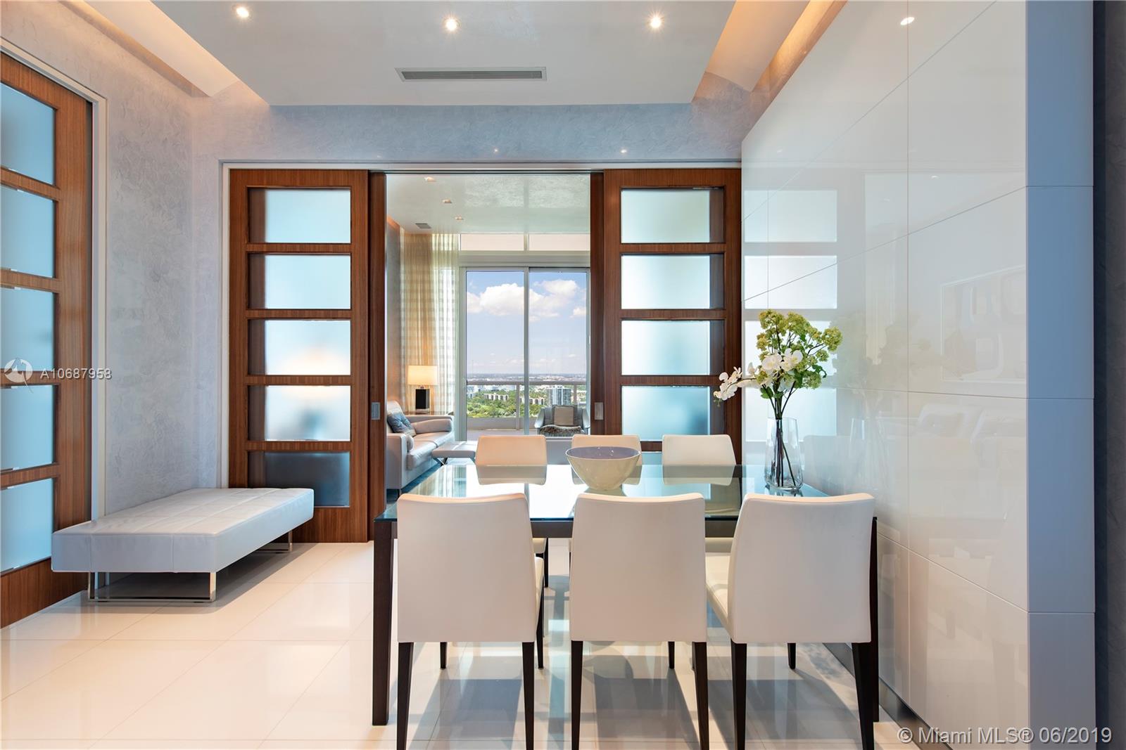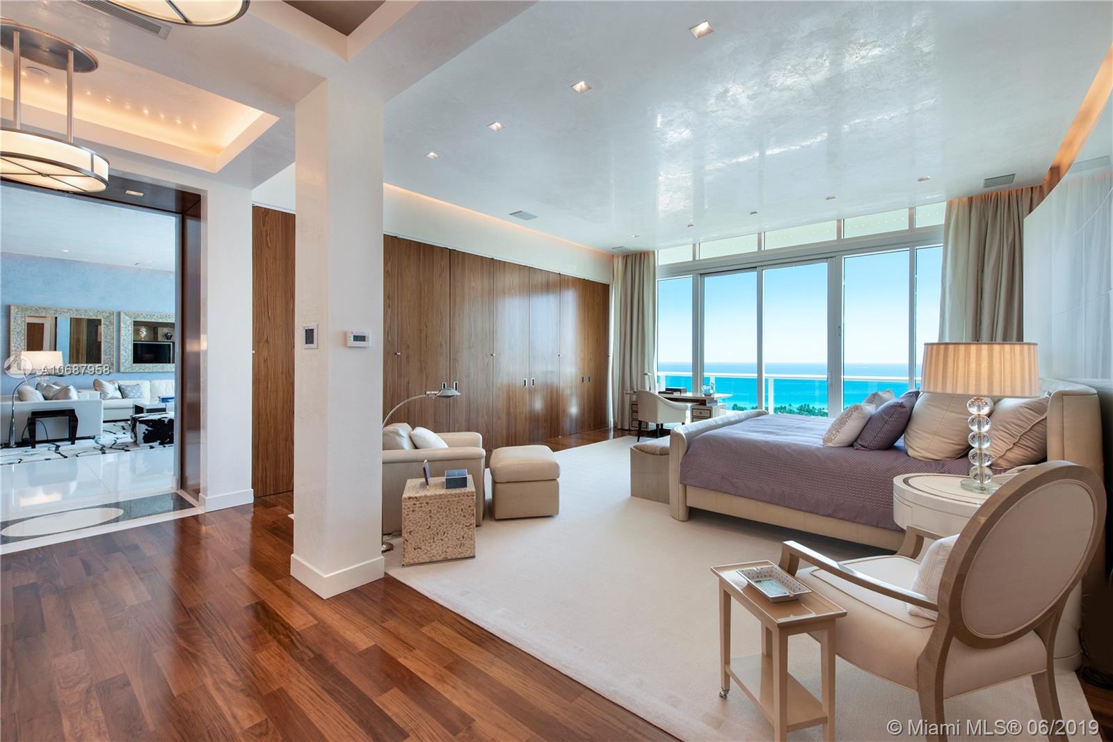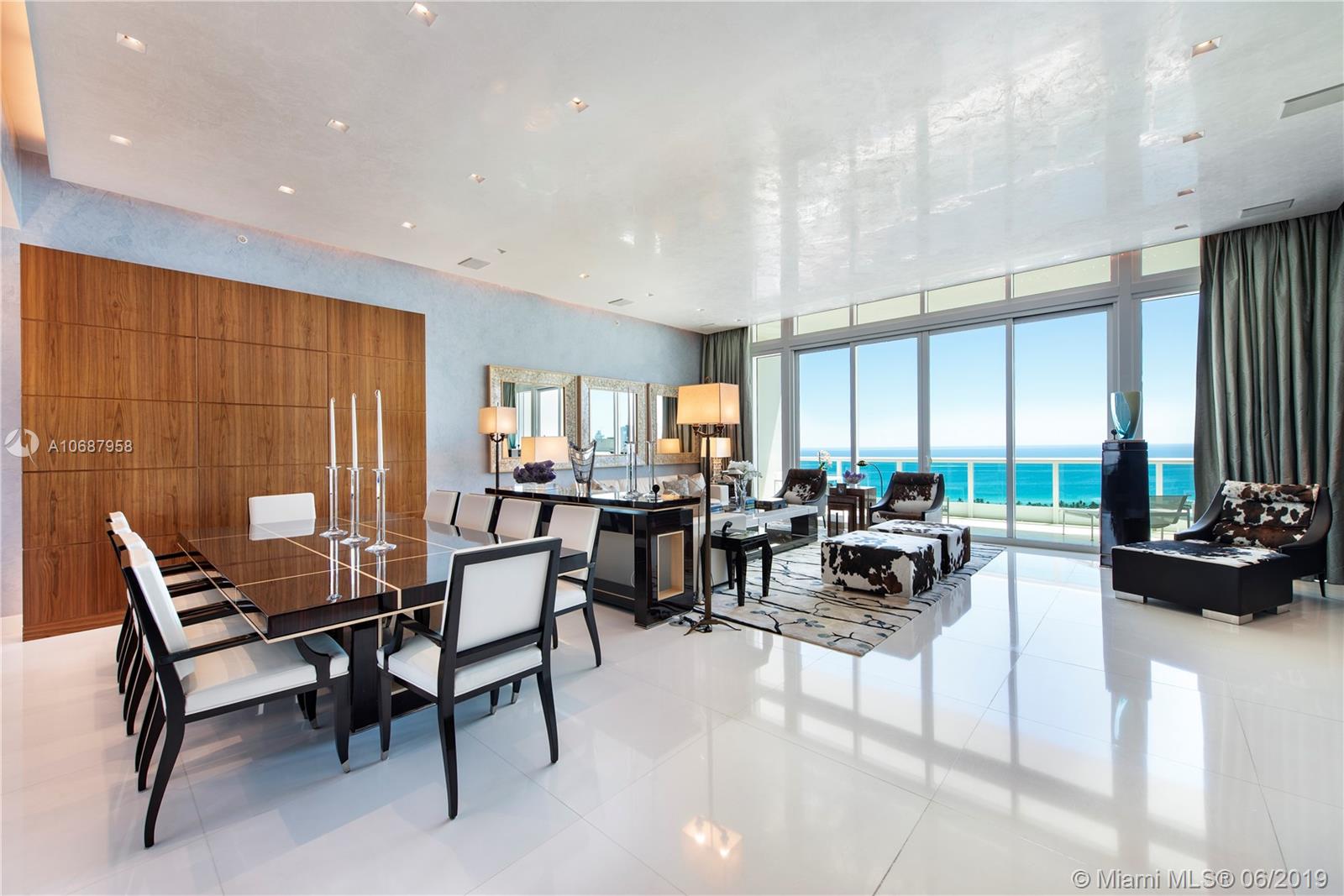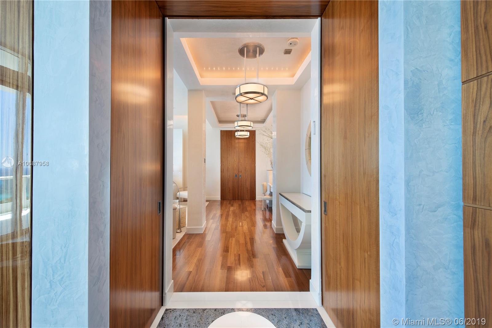 REFINED AND TIMELESS DESIGN captures you upon entering this Penthouse residence. 12 Ft. high Volume ceilings & wide expanses of wall to wall sliding glass doors and impeccable white marble floors reflect the sweeping views of the Ocean and Intracoastal on the East facing terraces & Golf/City views on the West side terrace.Completely UPGRADED with a re designed floor plan that includes a Den. All custom Makassar wood doors, Snaidero custom kitchen, exotic blue & white marble & granite as well as pink onyx throughout the upgraded baths. Modern lighting set in curvilinear drop ceilings, complete home automation system for sound, lighting & window treatments. Full house filtration and water softening system, 3 a/c units, double capacity water heater.FURNITURE NOT INCLUDED IN SALES PRICE.
