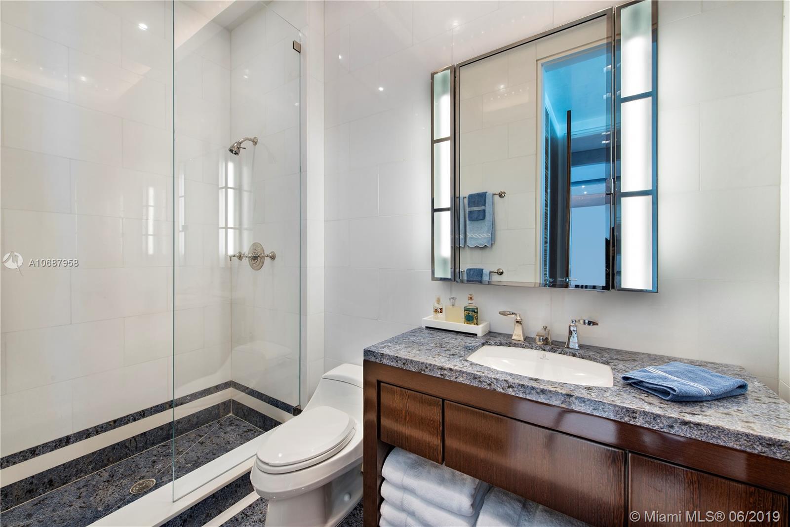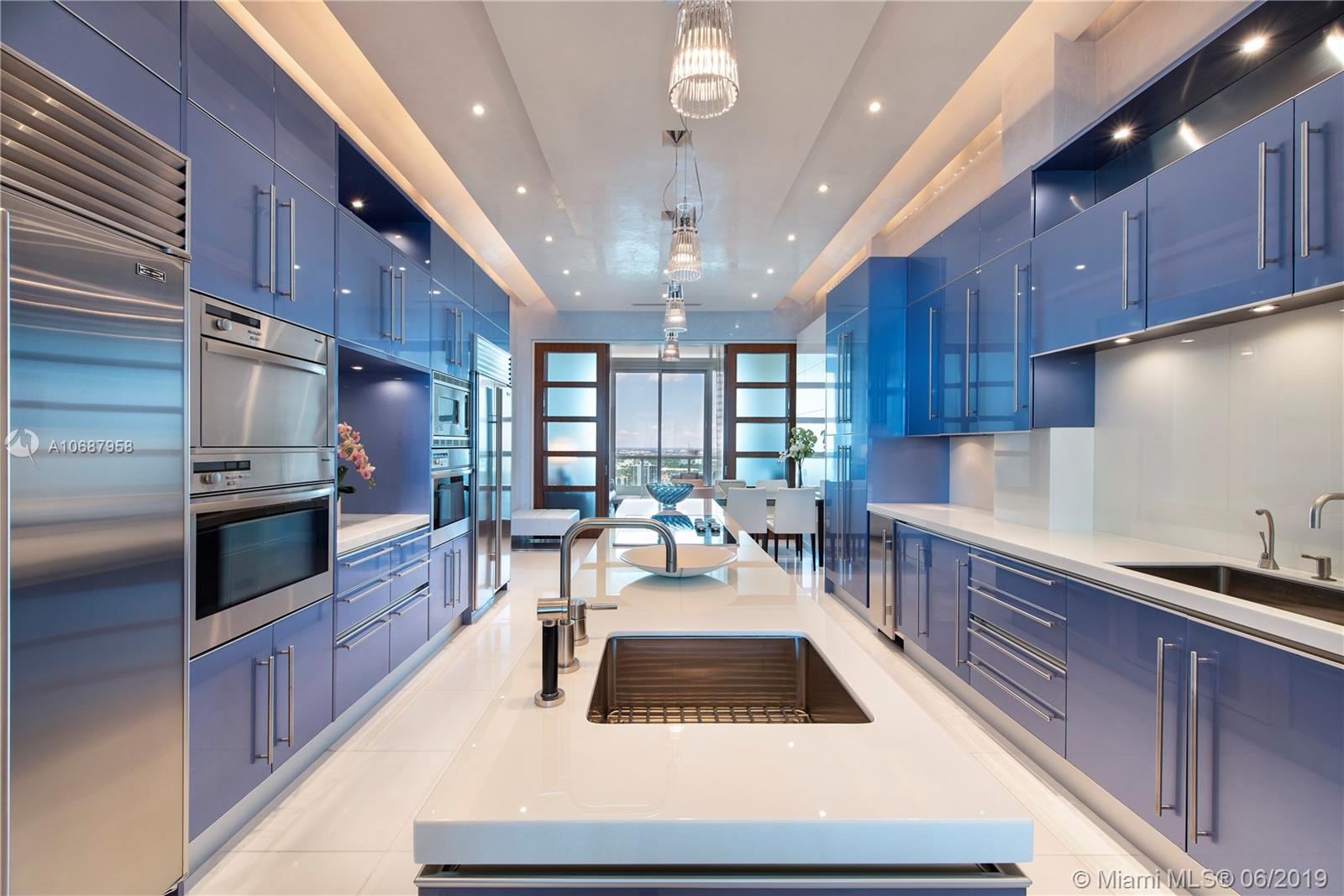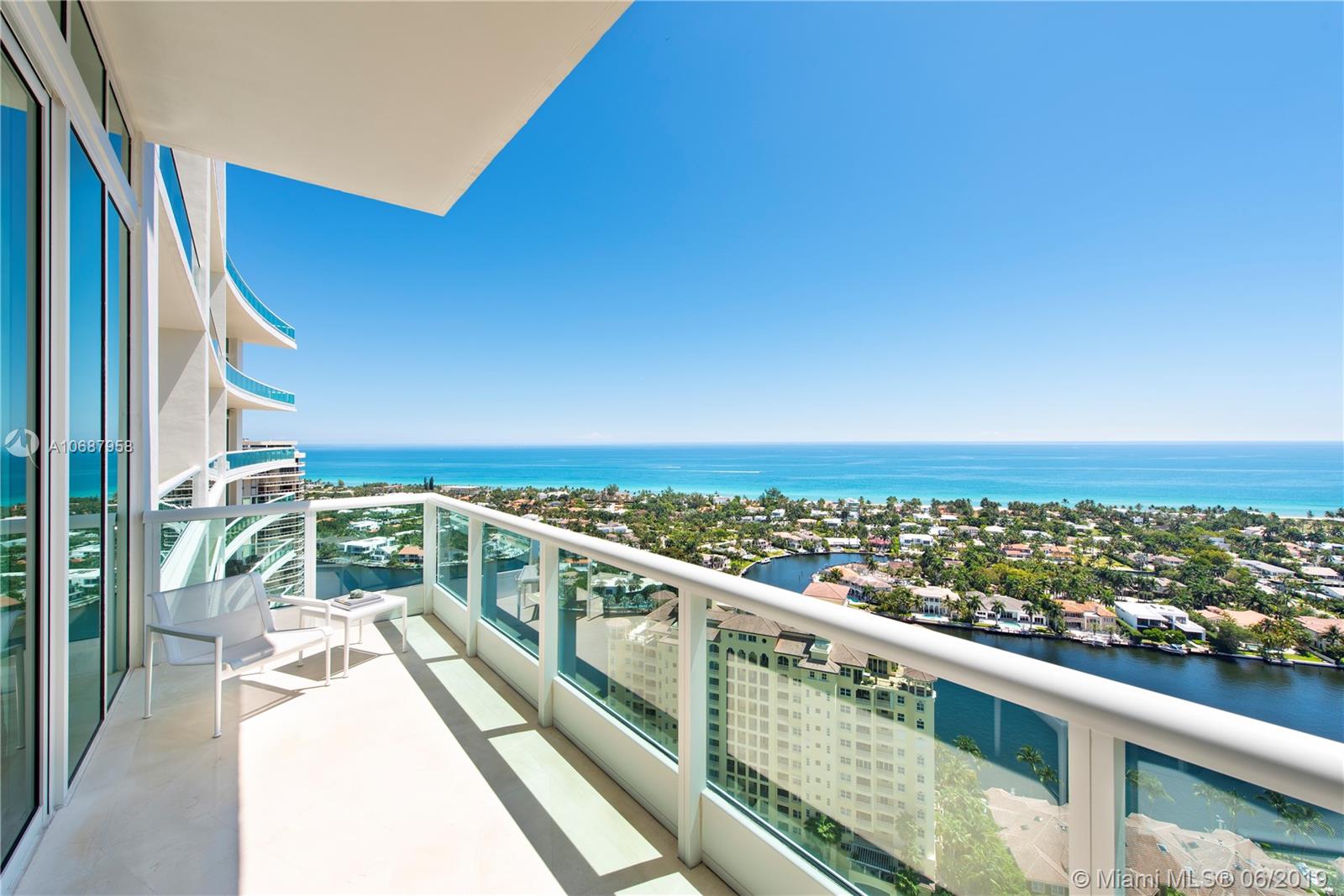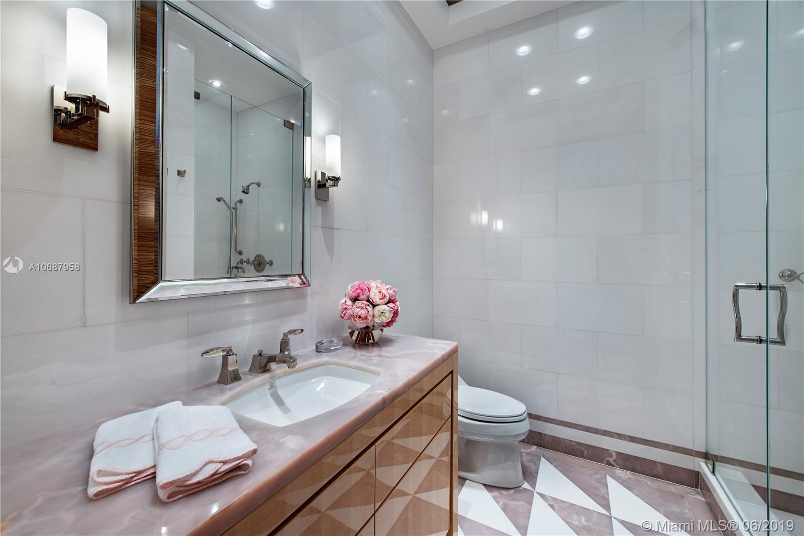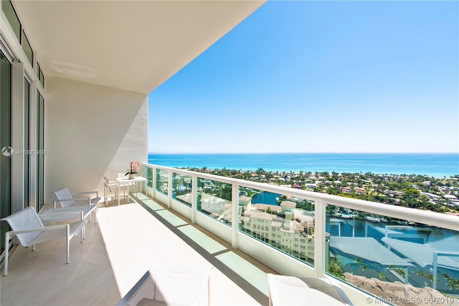 REFINED AND TIMELESS DESIGN captures you upon entering this Penthouse residence. 12 Ft. high Volume ceilings & wide expanses of wall to wall sliding glass doors and impeccable white marble floors reflect the sweeping views of the Ocean and Intracoastal on the East facing terraces & Golf/City views on the West side terrace.Completely UPGRADED with a re designed floor plan that includes a Den. All custom Makassar wood doors, Snaidero custom kitchen, exotic blue & white marble & granite as well as pink onyx throughout the upgraded baths. Modern lighting set in curvilinear drop ceilings, complete home automation system for sound, lighting & window treatments. Full house filtration and water softening system, 3 a/c units, double capacity water heater.FURNITURE NOT INCLUDED IN SALES PRICE.