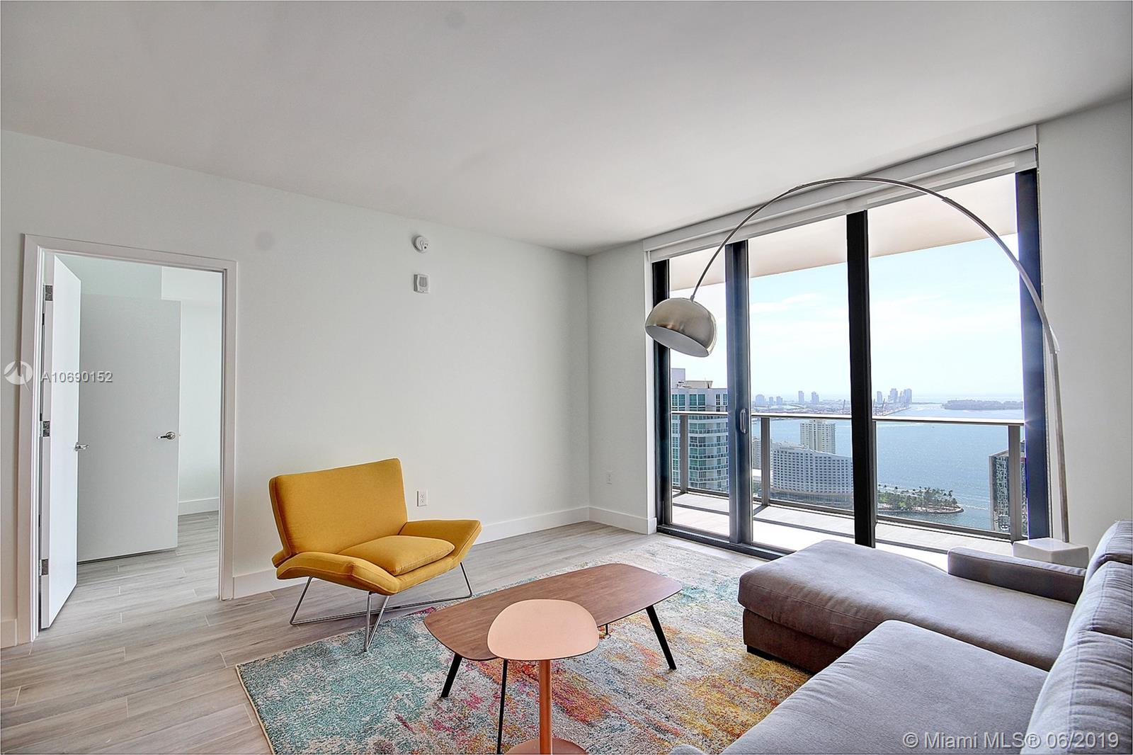 Best unit in 1010 Brickell! Designer Furnished. BRAND NEW, professionally designed 2 Bed + Den at 1010 Brickell. Step into 4504 through your private elevator and prepare to be WOW-ed by this move-in ready home in the sky. Direct views of the Biscayne Bay, Port of Miami, and South Beach. Wood-simulated porcelain flooring gives this expansive floor plan a true Miami modern feel. Designer touches throughout leave the task of further imagination at ease, as lighting, mirror, and wallpaper upgrades have already been completed. Murphy Bed storage system doubling as a home office. Residents' only rooftop pool, restaurant, Jacuzzi. Indoor pool, basketball & squash courts, bowling, hammam spa, & outdoor track. SoBe's infamous Lucali coming soon to building's ground floor. Steps from City Centre.