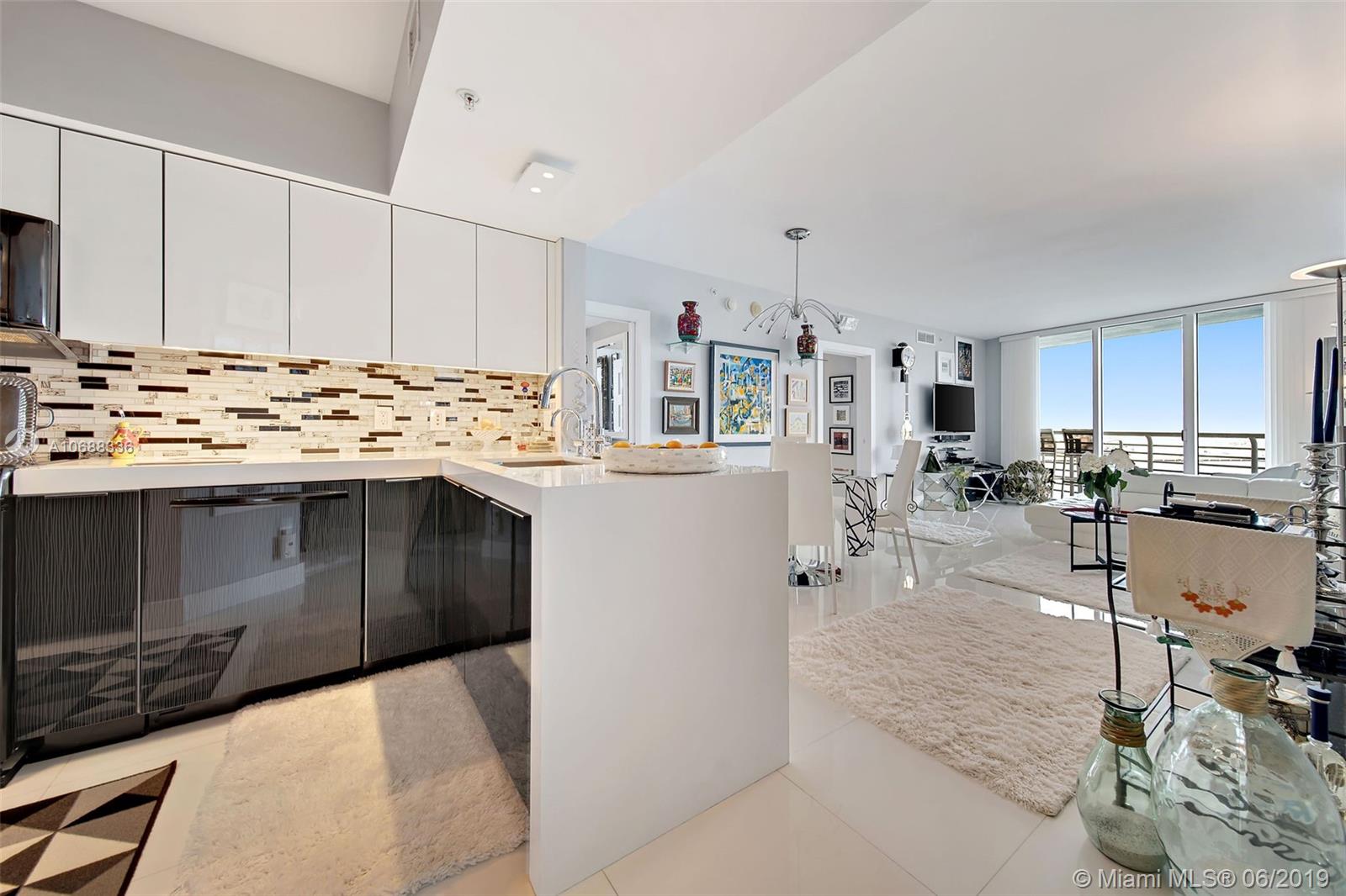 Absolutely stunning, completely remodeled 3 bedroom residence with direct water views extending to the Atlantic Ocean. A light and bright home with glass topped white 24" inch tile throughout. Fully updated Kitchen with new appliances and custom cabinetry. All bathrooms fully remodeled to perfection. This unit comes with 2 tandem parking spaces. One Miami is a sought after residential building situated on Biscayne Bay and the Miami River, with two popular restaurants on site, family pool, lap pool, cardio and weight room. Easy walk to Whole Foods, SilverSpot cinema, and a myriad of restaurants and shopping including Brickell City Center.