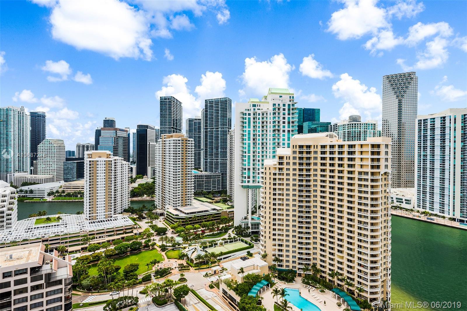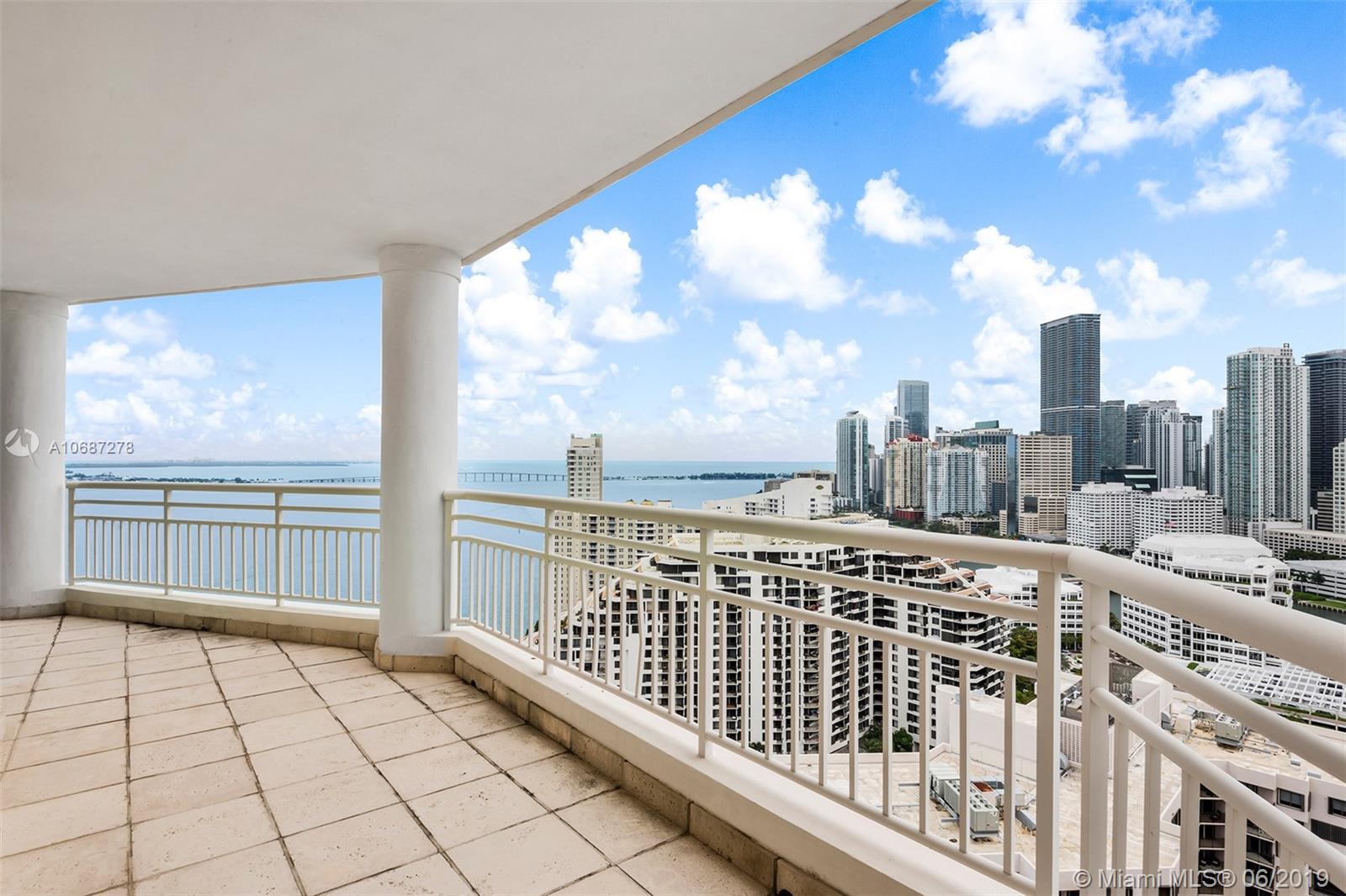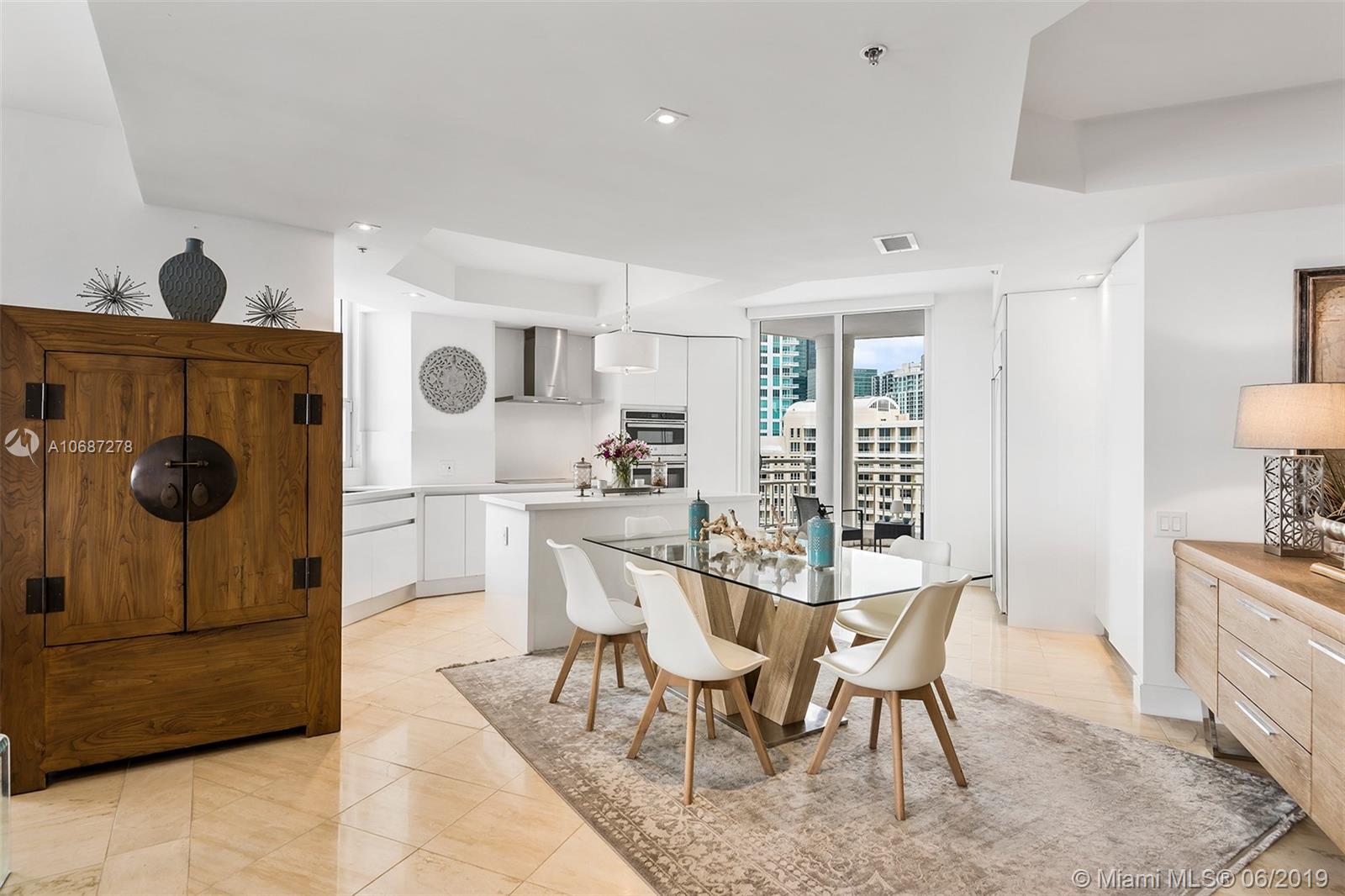 Renovated 2 bed / 2 bath corner unit with spacious living room and dining room are. Enjoy beautiful Biscayne Bay views. Building offers Concierge, 24-hour security, Sauna, tennis and racquetball courts Fully-equipped fitness center, social room, BBQ area, whirlpool, clubhouse, billiard room, and heated swimming pool, jacuzzi. Two Tequesta Point condo has direct access to a walk/jog track around Brickell Key. Minutes away from the Financial District, Brickell Citi Center, Restaurants, Nightlife, American Airlines Arena, Bayside Marketplace, Miami International Airport.