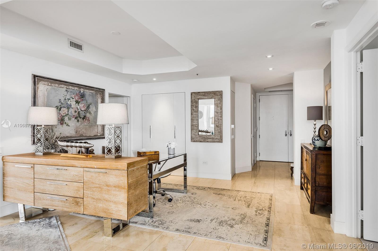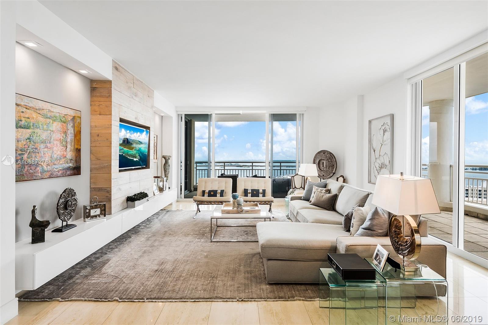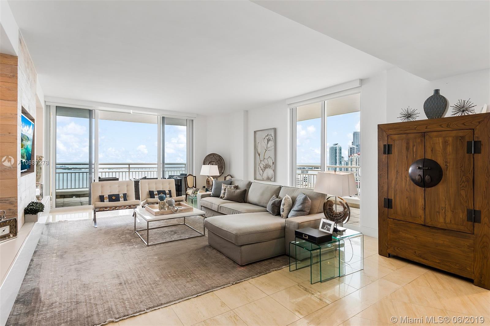 Renovated 2 bed / 2 bath corner unit with spacious living room and dining room are. Enjoy beautiful Biscayne Bay views. Building offers Concierge, 24-hour security, Sauna, tennis and racquetball courts Fully-equipped fitness center, social room, BBQ area, whirlpool, clubhouse, billiard room, and heated swimming pool, jacuzzi. Two Tequesta Point condo has direct access to a walk/jog track around Brickell Key. Minutes away from the Financial District, Brickell Citi Center, Restaurants, Nightlife, American Airlines Arena, Bayside Marketplace, Miami International Airport.