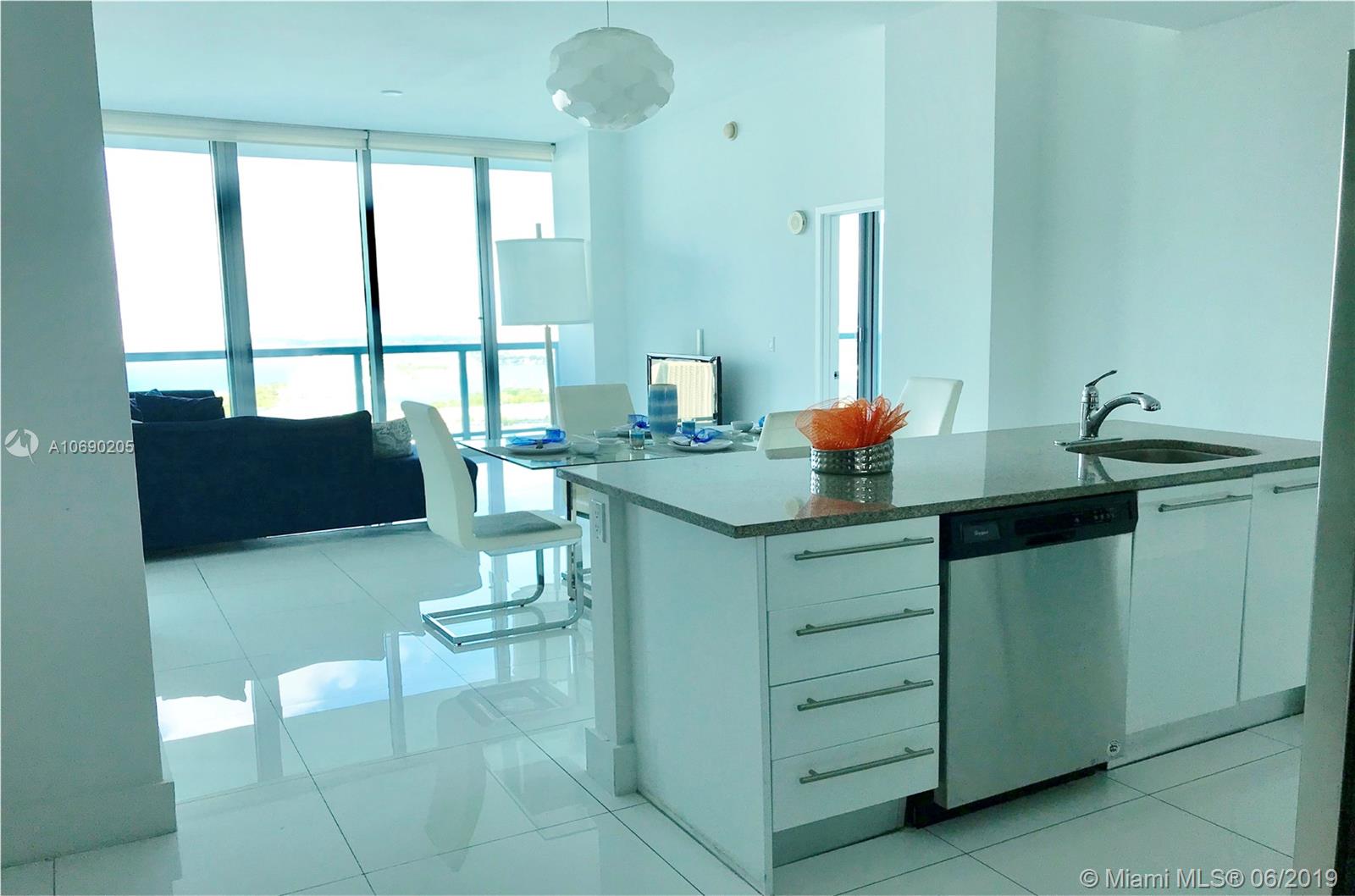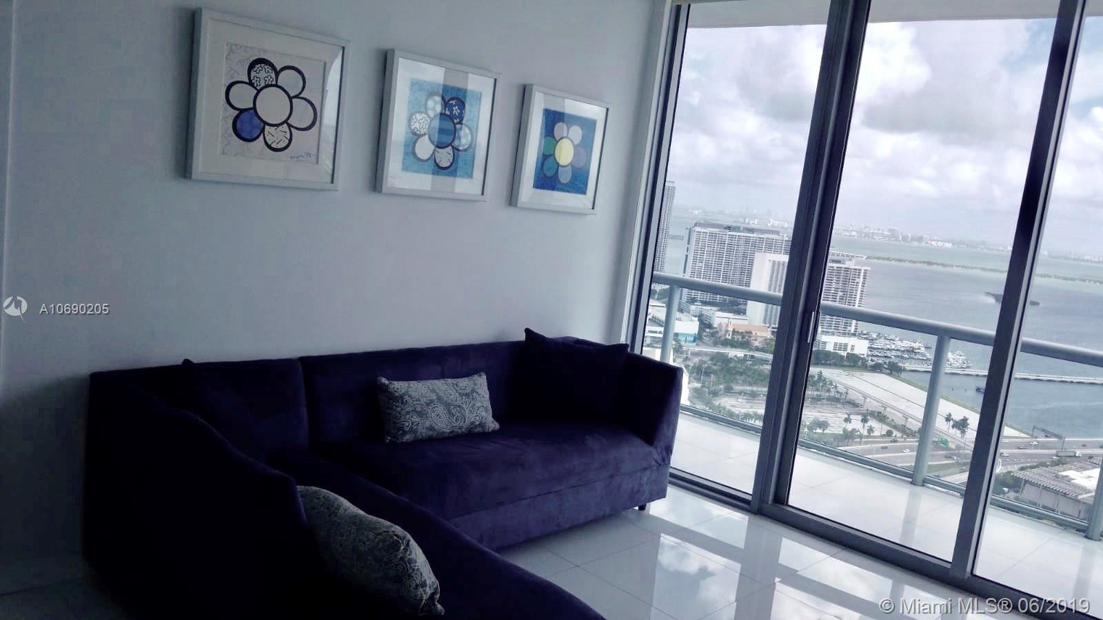 Spectacular unobstructed views in 46 floor. Luxury unit with high ceiling, floor to ceiling with high impact windows, great apartment with 2 suites completed furnished, modern kitchen. Beautiful condo in elegant Marina Blue. Amenities, private cyber center sky level, 2 swimming pools, Jacuzzi, sauna, cabanas, BBQ area, Beach volleyball courts, game room, Gym, security 24 hours, line in high rise. Association quick process. Amazing location in the middle of everything, close to Miami Beach, Brickell, Midtown District, Miami International Airport and much more. Easy to show if you call in advance to schedule the showing.