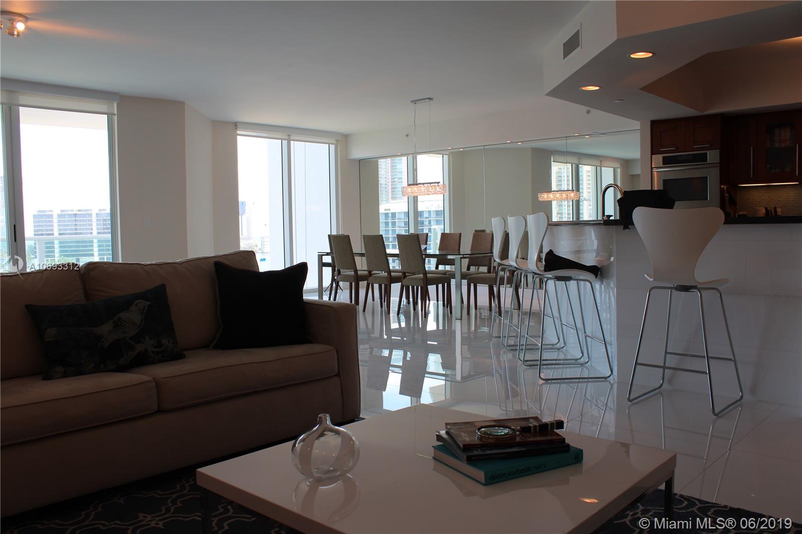 Fantastic oversized condo in Aventura on the intracoastal with stunning views of the bay and the ocean. This unit has nearly 3500 sqft of living space and ample balcony areas with 4 bedrooms 1 den and 4 and 1 half bathrooms. With only 1 owner from overseas who used the unit infrequently this unit is in excellent like new condition. Marble floors throughout with designer fixtures/appliances and wardrobe finishings. Plenty of space for entertaining, family, or work with 1 room able to be converted into a private office. The amenities include full gym style exercise room, tennis courts, marina, pool and much more. The location is second to none minutes from Turnberry, Sunny Isles Beach, Gulf Stream, the Aventura mall, and much more in Miami. Excellent opportunity to own an A Class home.