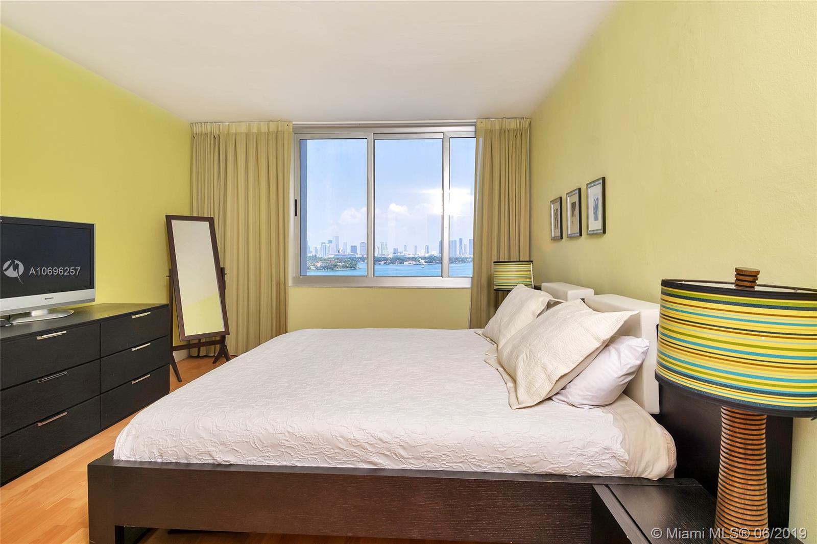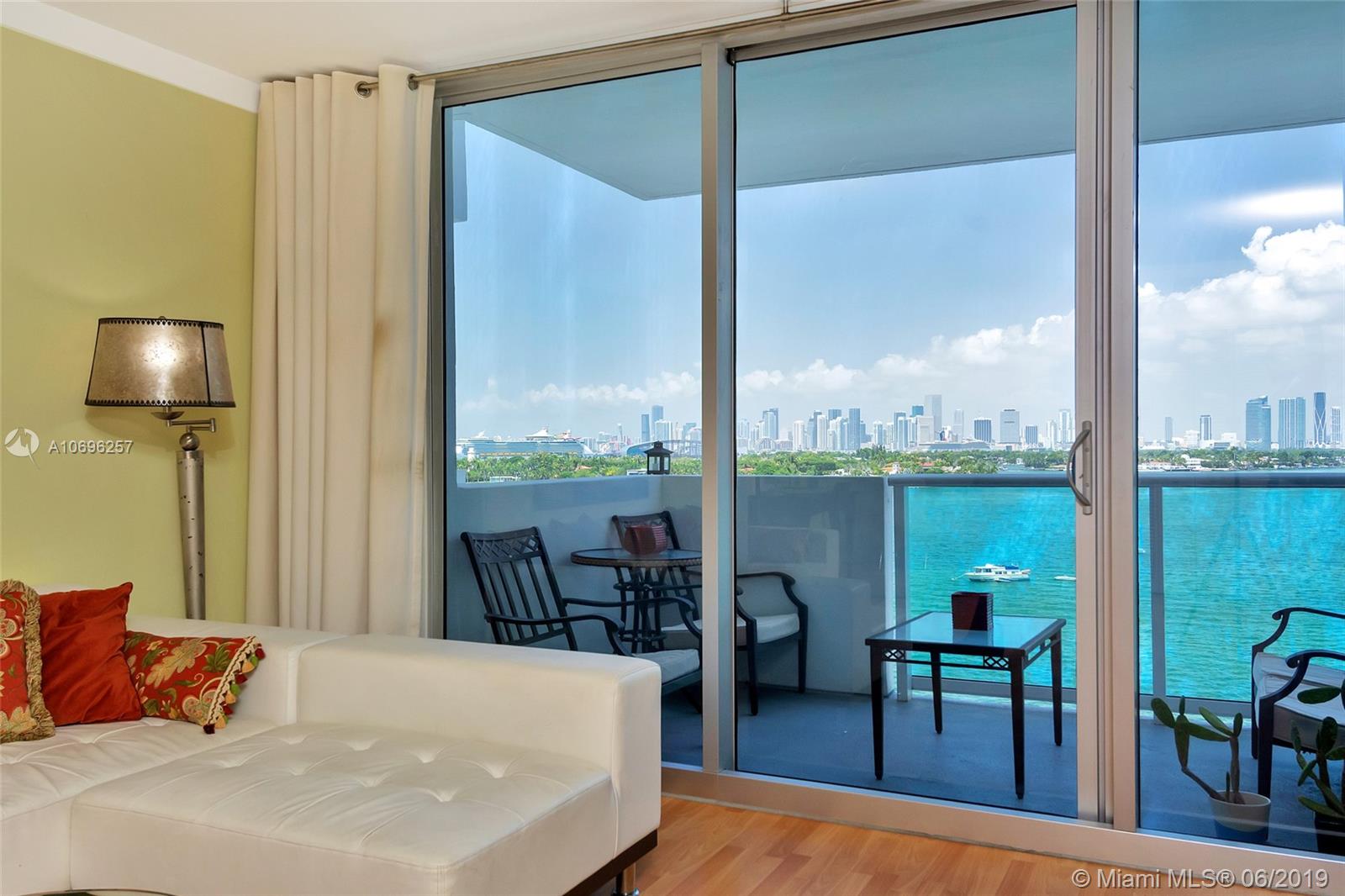 JUST REDUCED....LOWEST PRICED,..This is a Direct Unobstructed Bay View!! Upon opening your door you are welcomed home by the pristine waters of Biscayne Bay, the stunning Miami skyline as a backdrop with views of Yachts, Boats and Jet Skis as they sail thru the open bay! This will be every day in this amazing unit in the heart of South Beach. This 1 bed 1 bath condo is the epitome of easy Florida living. Enjoy exploring a neighborhood full of restaurants, cafes, shopping and retail all at your doorstep. The Mirador is a full service building including: valet, security, in house management, state of the art fitness center, gorgeous bay side pool, convenience store and more. The condo has wood floors throughout and hurricane impact windows. Easy to show.