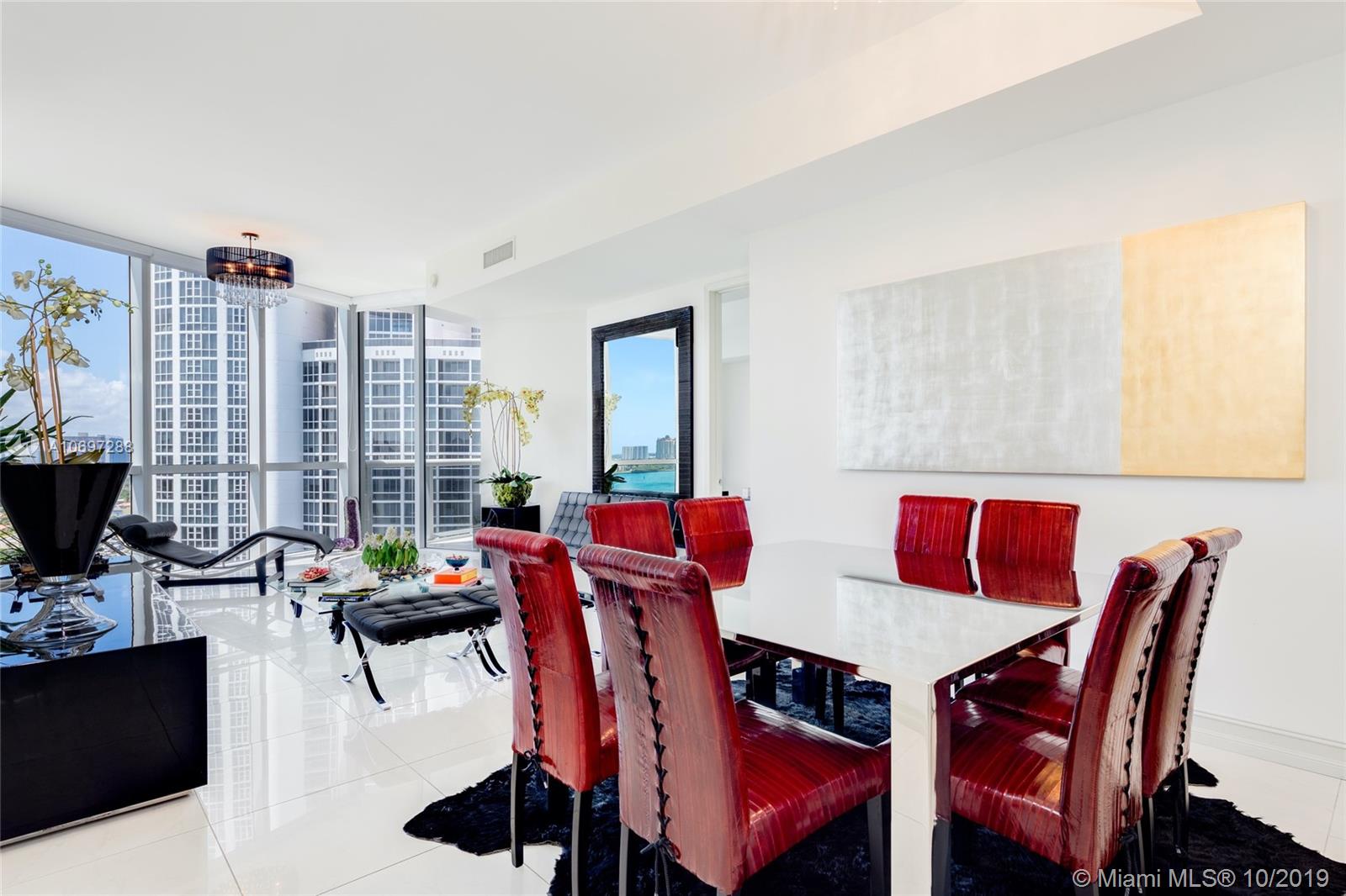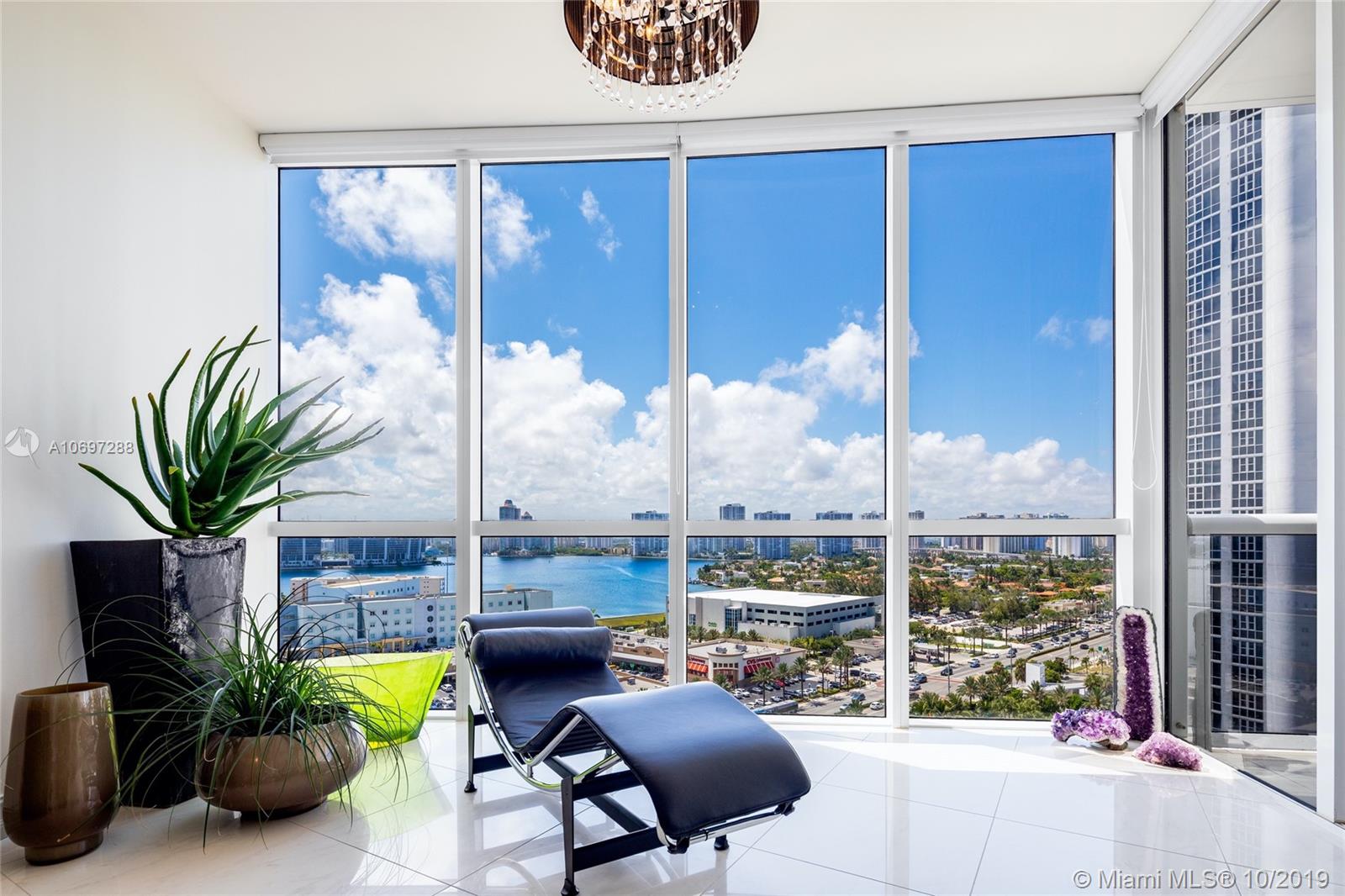 This stunning two-bedroom, two-bathroom home in the sky, with floor to ceiling windows, is light filled and has breathtaking sunset & sunrise views. Perfectly located in the heart of Sunny Isles Beach. Location, Location, Location!