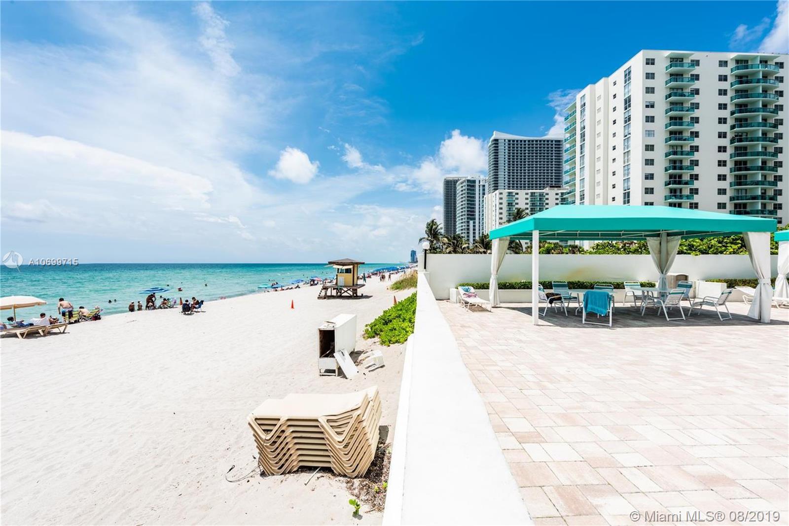 Great Ocean/Intracoastal views, right on the beach in a beautiful well maintained building, seller financing available, walk to shopping, the Hollywood Broadwalk next to Diplomat Resort!! Live like you're on vacation! Enjoy the fine amenities including a restaurant onsite, gym, pool tables, valet & self parking, and a resort-like pool, just to name a few. Lots of closet space. Tiled thru out throughout with a balcony for enjoying the views of the intra-coastal and the beach.
