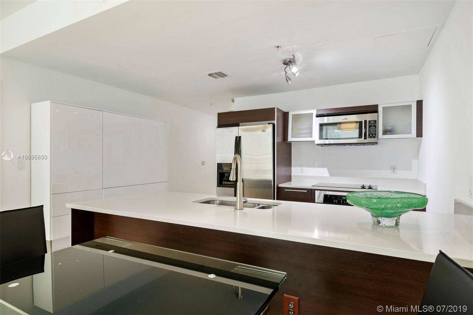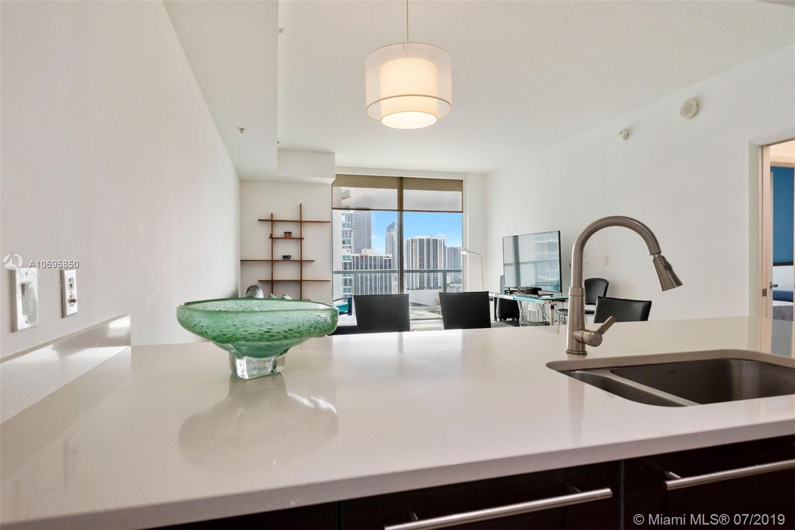 Quantum on the Bay located in Edgewater! Tastefully renovated unit. It features; 1 bedroom and 1.5 bath, large balcony with bay and city views. Enjoy a steam shower room and massaging water jets, frosted glass pocket doors, guest bathroom upgraded with glass sliding doors, custom closets, remote controlled shade/blackout. Great kitchen with cooking island, stainless steel appliances, washer and dryer inside the unit. Building amenities include: 2 heated pools, state of the art 7,000 sqft gym, theater room, business center, party room, billiard, sauna, Jacuzzi, valet, full concierge and 24 hour security. Adjacent to Margaret Pace Park, blocks from Downtown, Wynwood, and Design District, minutes to Brickell and South Beach.