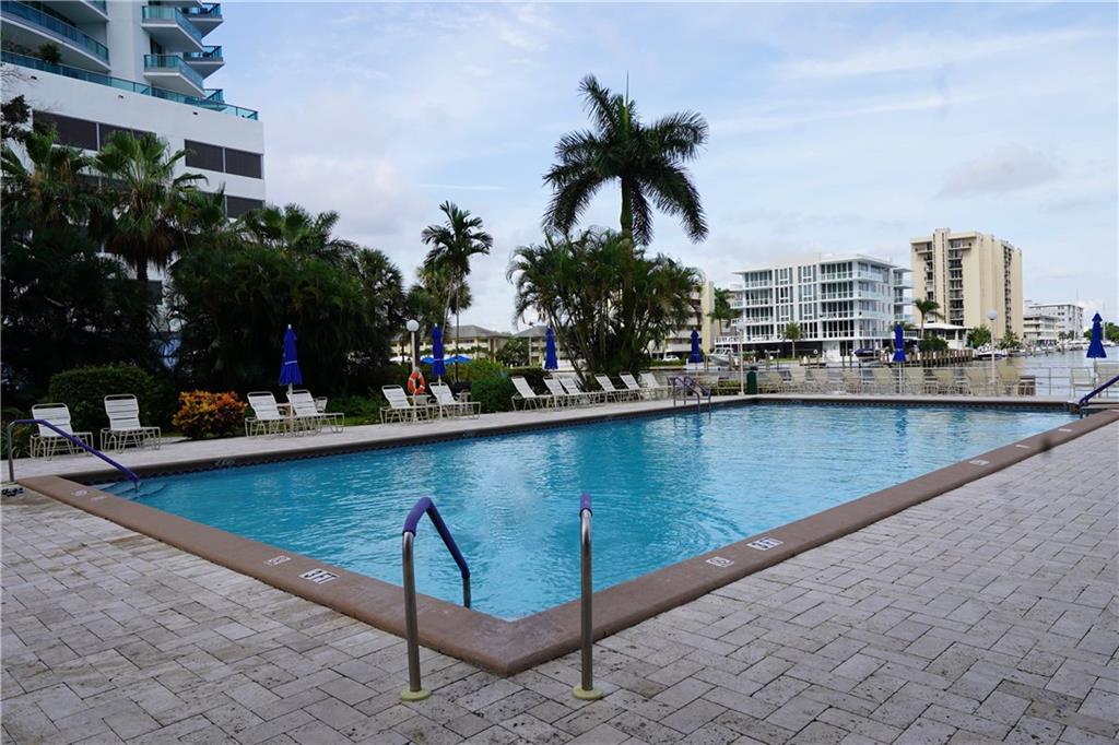 Stunning panoramic view of the ocean, the Intracoastal, and Fort Lauderdale looking North, from this totally remodeled 2 bed/2 bath penthouse unit. Brand new A/C system, kitchen with induction range, washer/dryer, porcelain floors, and master bathroom with walk-in shower. Abundance of closets and storage. Secure building with 24-hour doorman, updated gym, and a beautiful outdoor pool right on the Intracoastal. A 55+ community just 2 blocks from the ocean and an easy walk to restaurants and shopping.