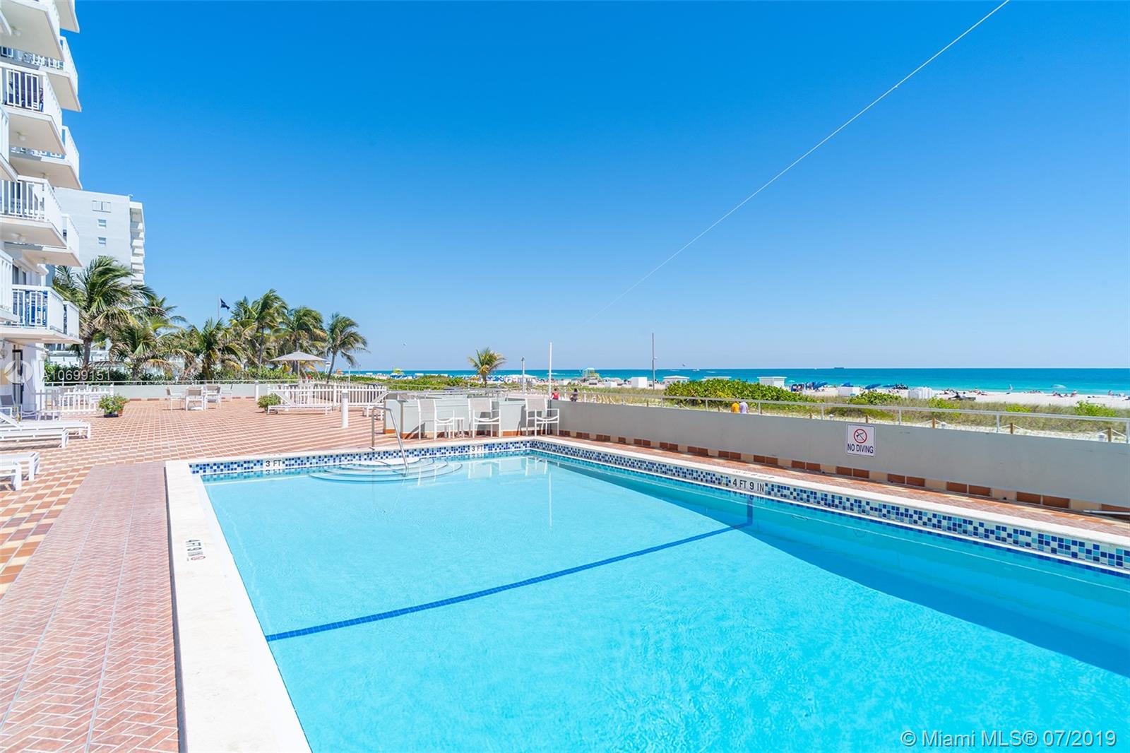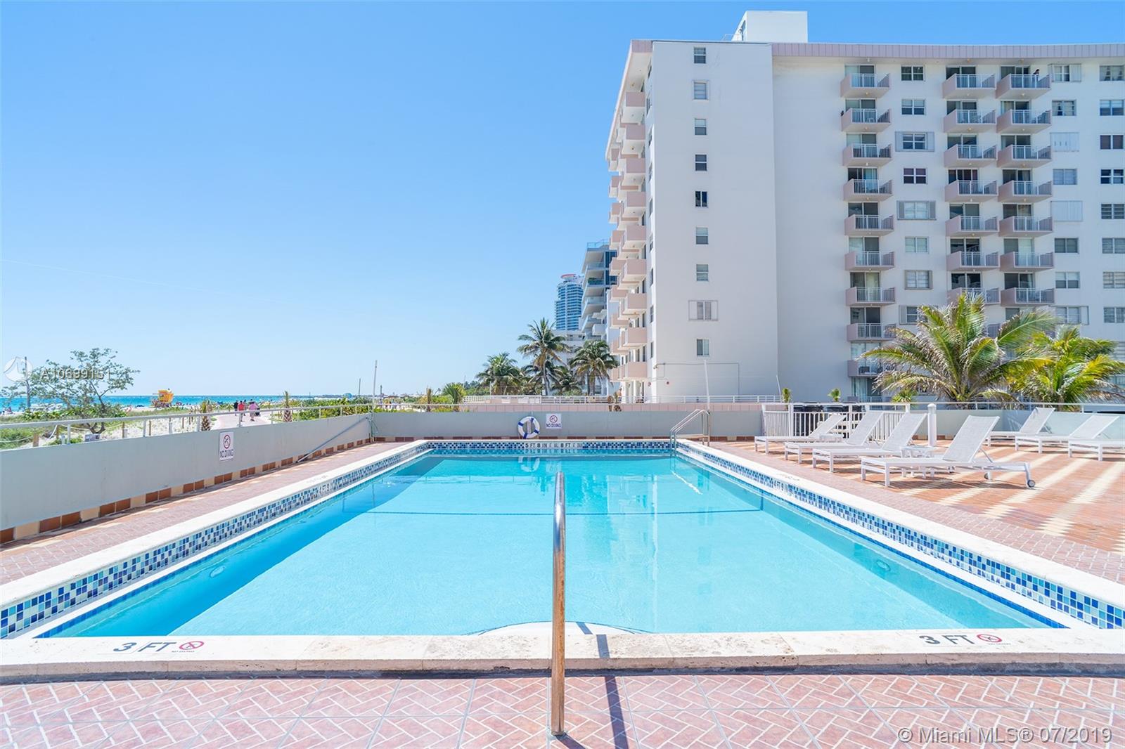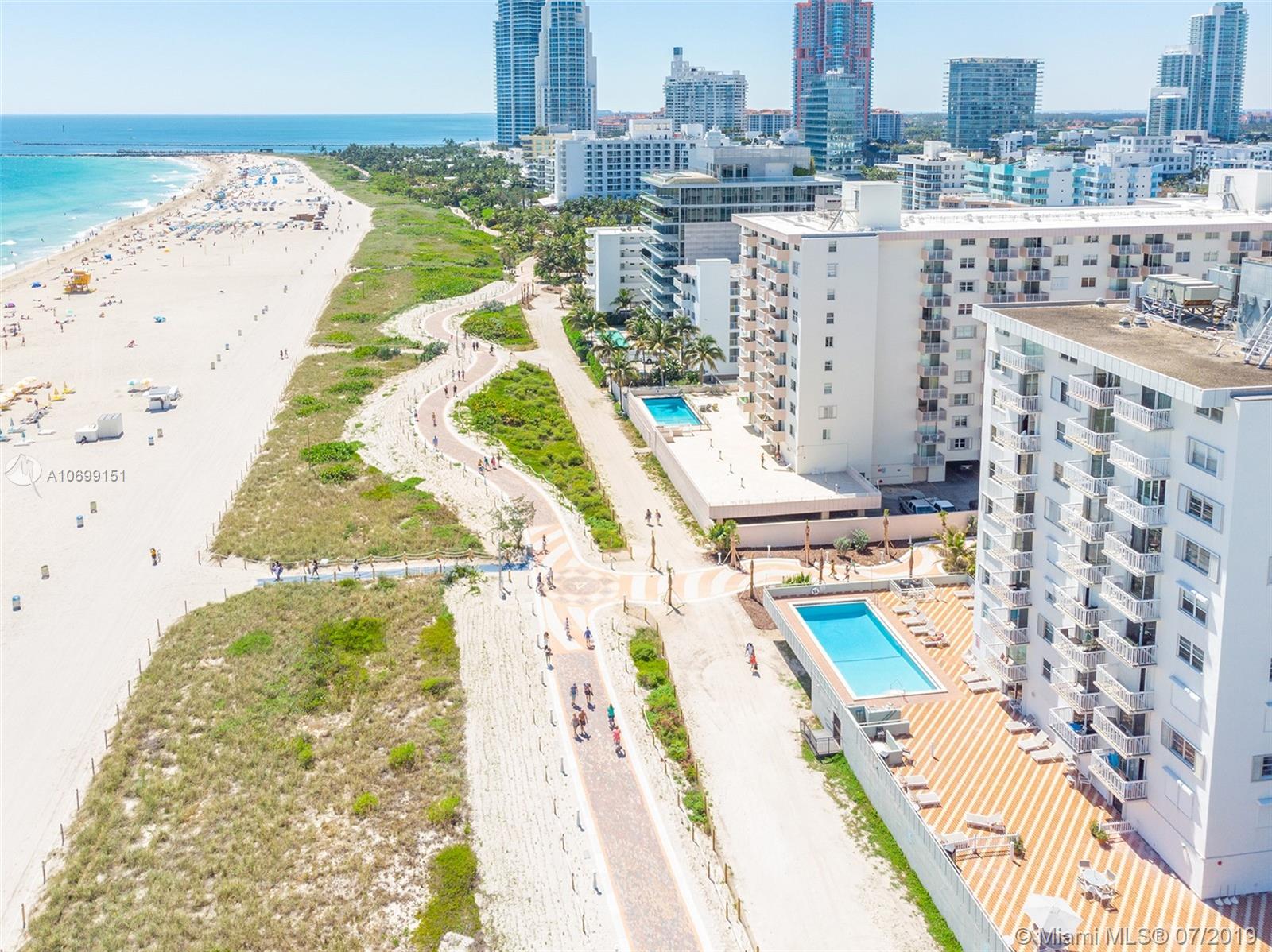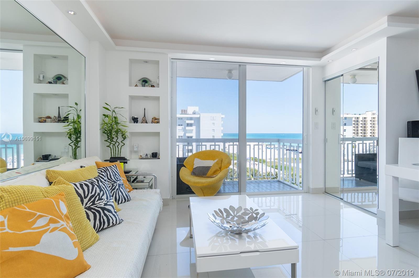 401 Ocean Drive Jr. one bedroom presented in sheer perfection. Northeast corner with panoramic views of the Atlantic Ocean, the beach & Ocean Drive. White tiled floors, custom kitchen with stainless appliances, marble spa-inspired bath and a white modern palate that frames this offering and welcomes all with beautiful natural sunlight, ocean sounds and a balcony that is more of an extended outdoor living space where sunrises greet daily on command.