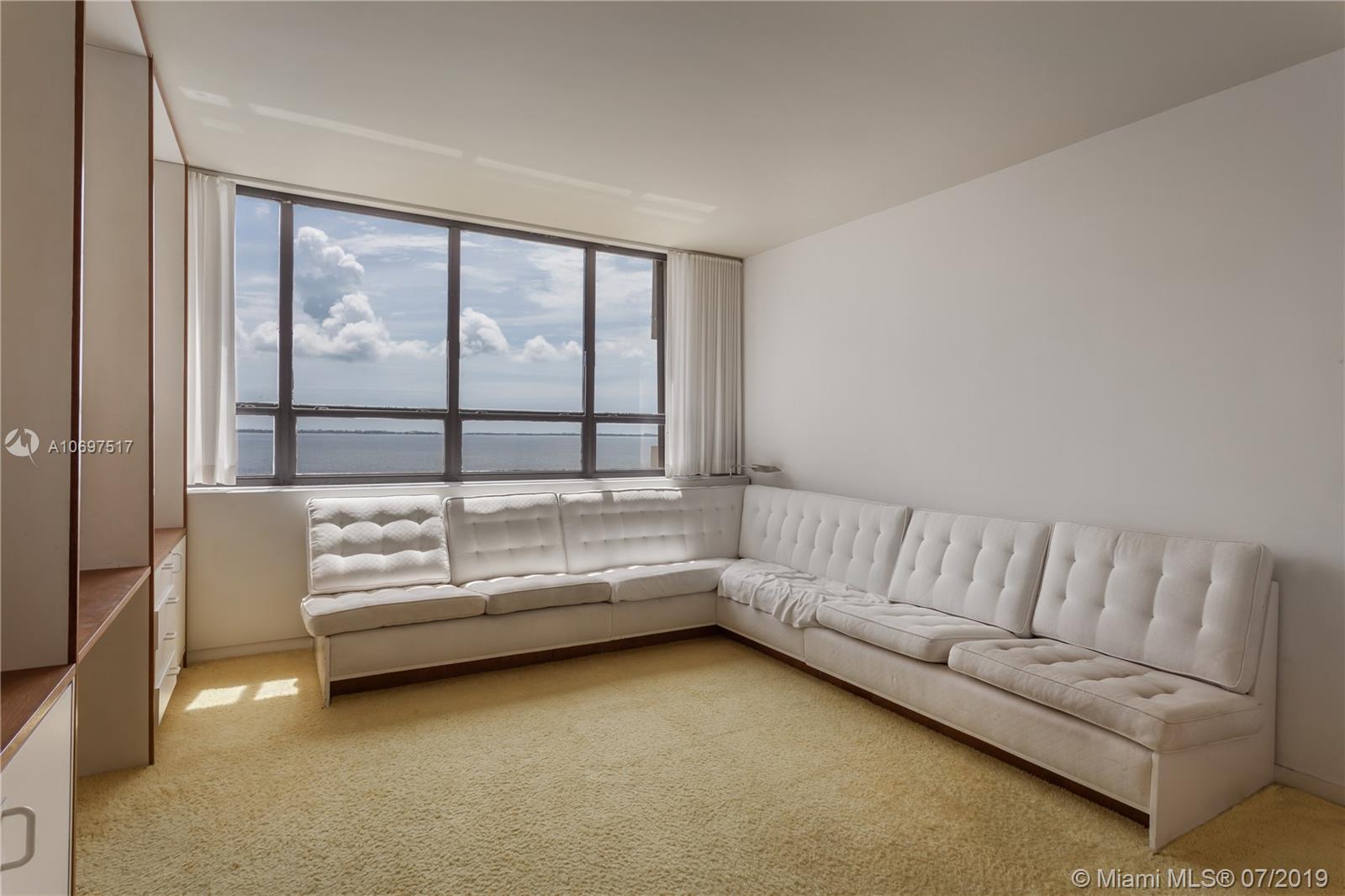 This spacious unit located in sophisticated Grove Isle offers a breathtaking ocean and bay view from its roomy terrace and sunlit sliding glass doors and windows. Residents have access to luxurious amenities including a fitness center, pool, club, and several tennis courts. Perfectly located in Coconut Grove with easy access to shops, entertainment, and fine dining. Once occupied by renowned architect and designer Florence Knoll Bassett, who found inspiration from her surroundings.