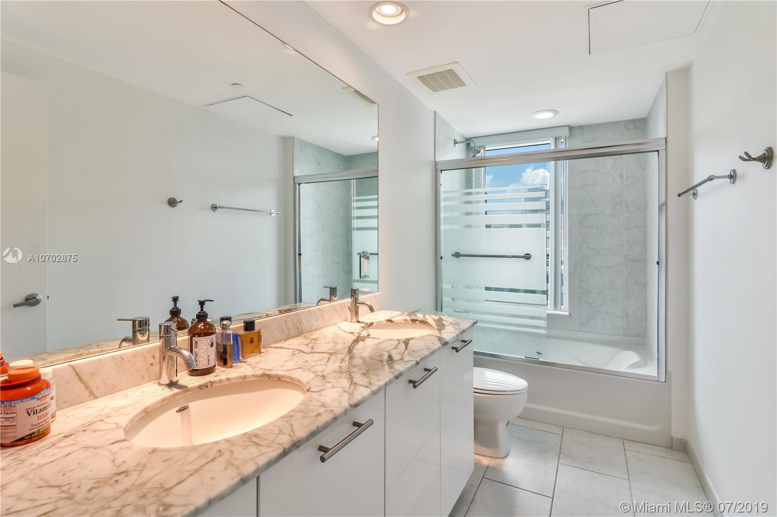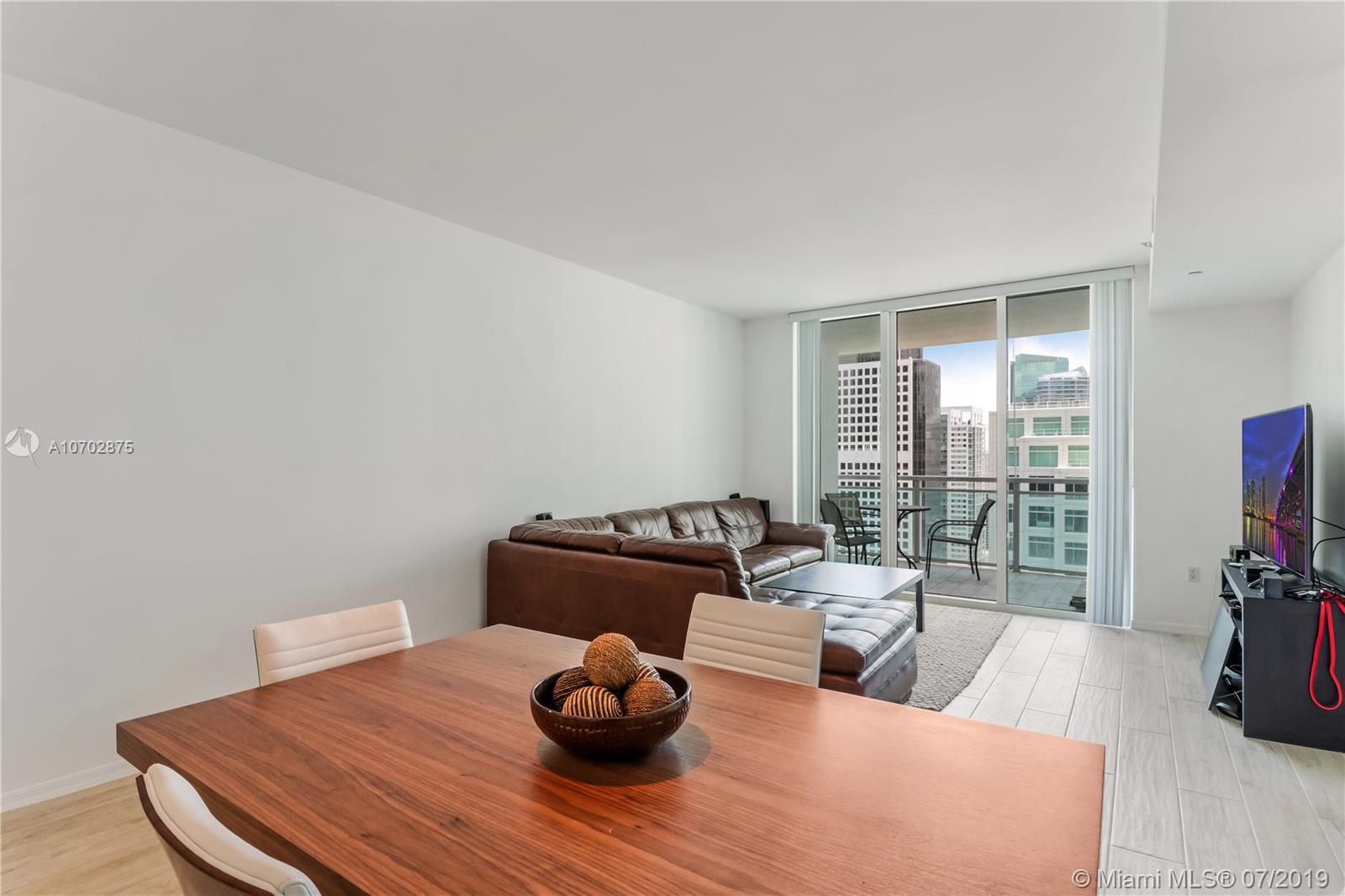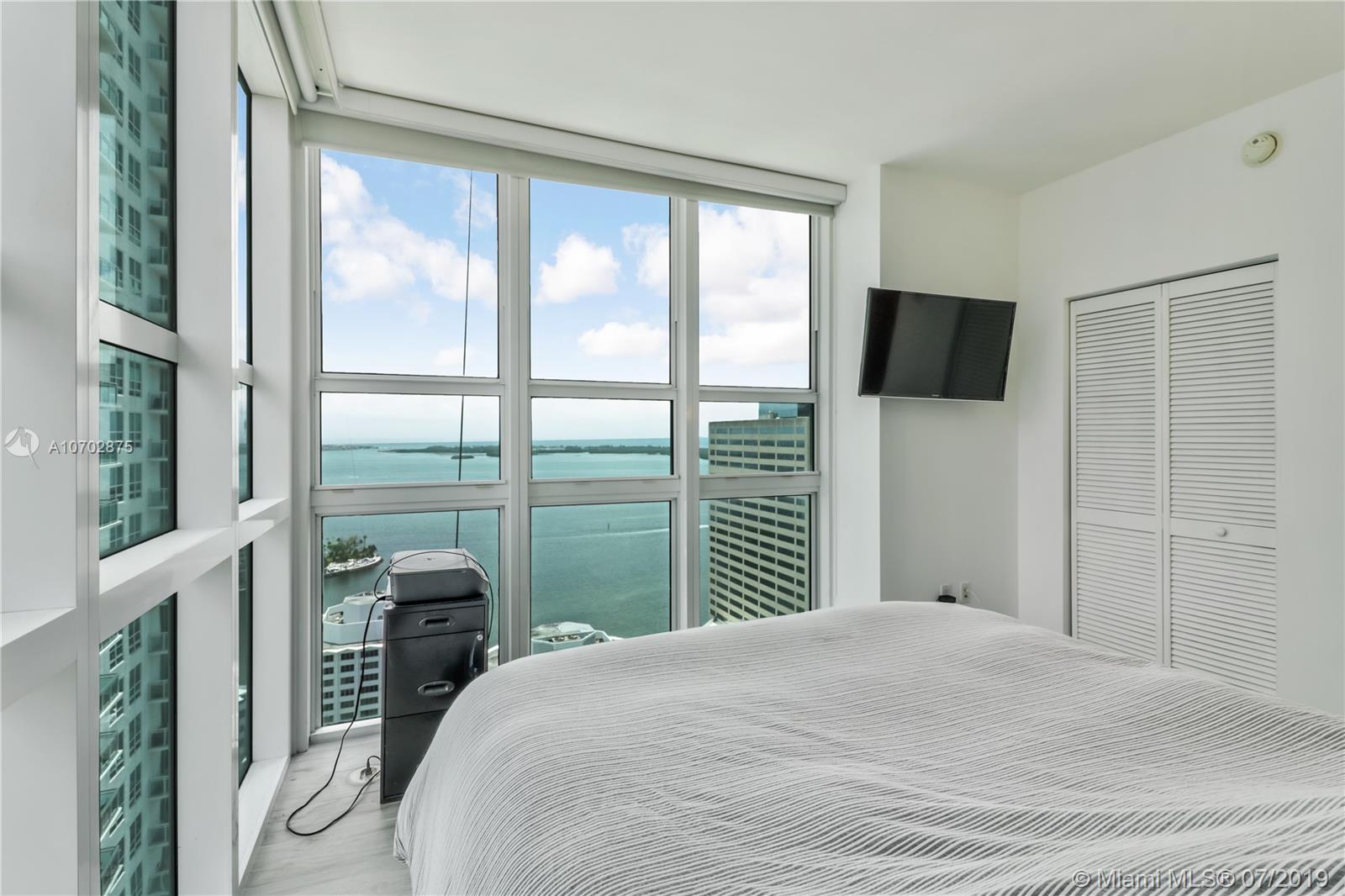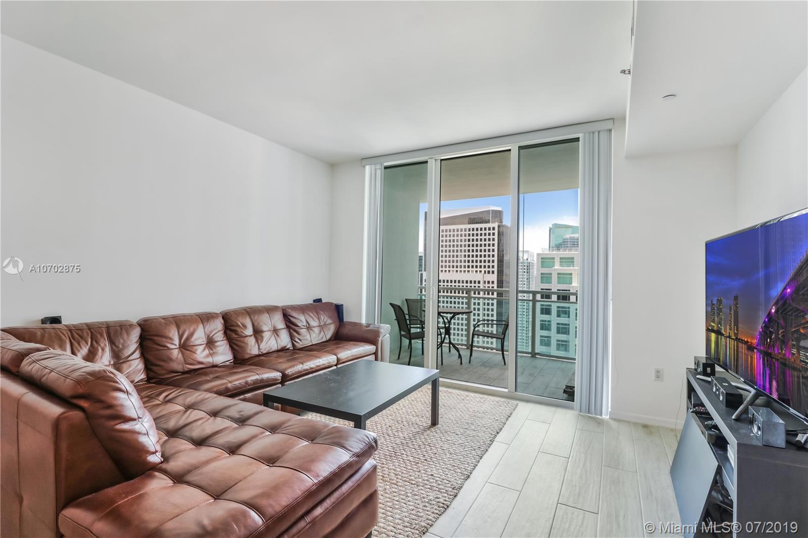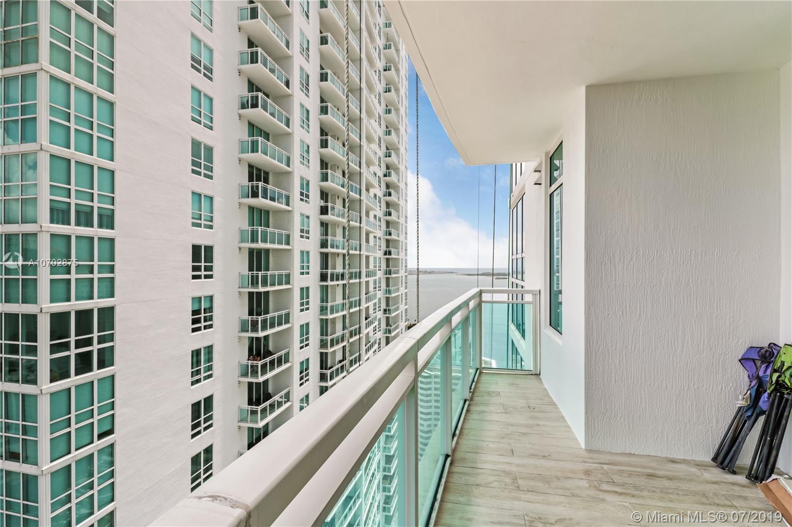 Beautiful 1/1 condo on the 35th floor in a prime location directly on Brickell Ave. Beautiful water and city views from the large blacony and extended bay views from the bedroom floor-to-ceiling windows. Brand new porcelain tile floor throughout and recently painted interior and exterior walls and doors. Unique opportunity to acquire the largest 1 bedroom floorplan in the building with a rare high view. The building is centrally located steps from Brickell City Centre and Mary Brickell Village. Amenities include 2 pools, jacuzzi, gym, business center, and club room. The brand new pool deck renovation added new: hammocks, daybeds, landscaping and BBQ grill. A private thruway provides unique access to both Brickell Bay Dr aned Brickell Ave, highly useful to avoid Brickell Ave rush hour.