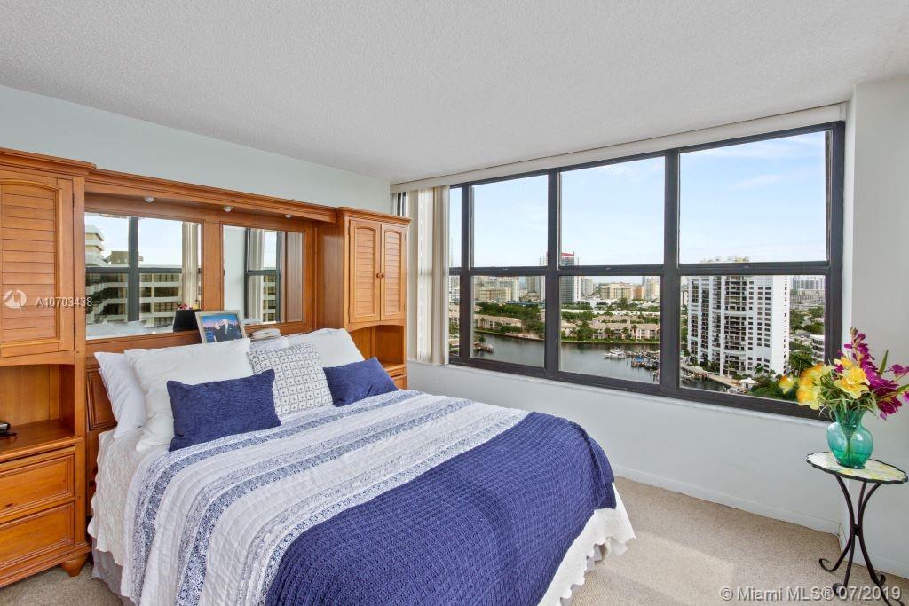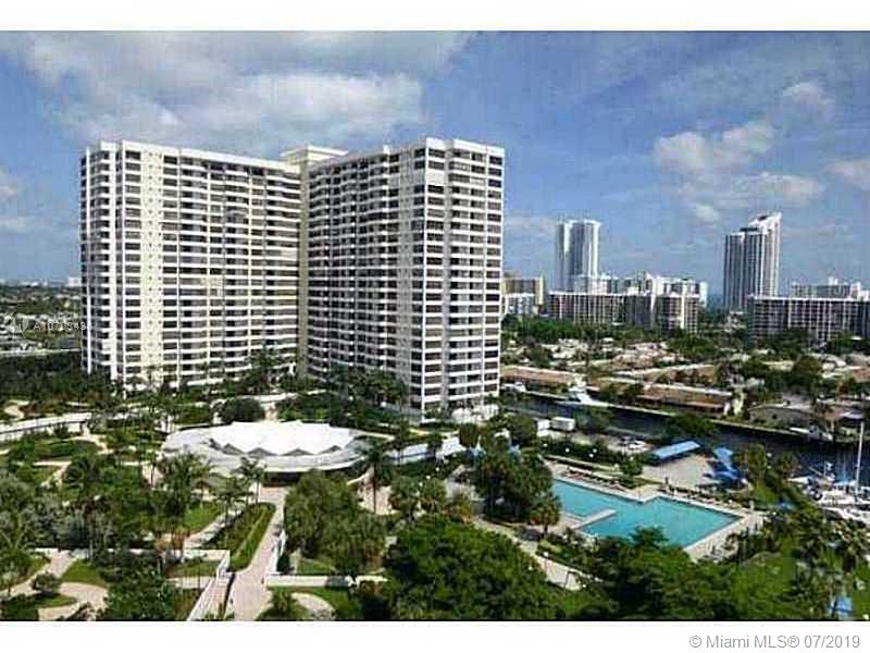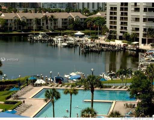 HUGE SECLUDED CORNER UNIT WITH FABULOUS 20th FLOOR VIEW of Marina, bay, pool, ocean & gardens!! Large eat-in kitchen, enormous living/dining room, master bedroom is a corner w/2 walls of windows & 180 degree view. Large open balcony with forever view. Guest bath has walk in tub for the perfect spa treatment. Desirable split bedroom plan makes for more privacy. 8 closets!!! New AC, tile floors. Brand new fitness center, 2 large pools, garage parking, tennis courts, BBQ, marina, extra storage,24 hr security & valet, community bus to malls, shopping, beaches. OK to lease. 1 Cat welcome. Maint. $886/mo. incl. cable, HBO & Showtime. 2nd parking space $60/mo. Many renovations in progress. Seller to pay all assessments. Walk to beaches, shopping, dining. New playground right across the street.