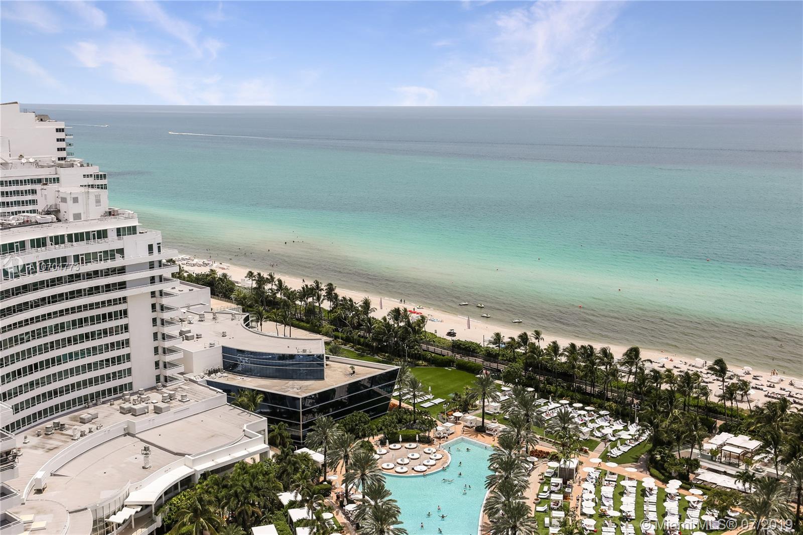 Beautiful 2BD/3BA with spectacular unobstructed ocean, bay & intracoastal views at the Fontainebleau II. Enjoy full service, vacation-style living in a furnished turnkey unit with sleeper sofa & more. Enroll in hotel rental program & receive income while away! The Fontainebleau Resort offers luxury amenities on 22 oceanfront acres including award-winning restaurants, LIV night club, Lapis spa & state-of-the-art fitness center. Maintenance includes: AC, local calls, electricity, valet + daily free breakfast in the owner’s lounge.