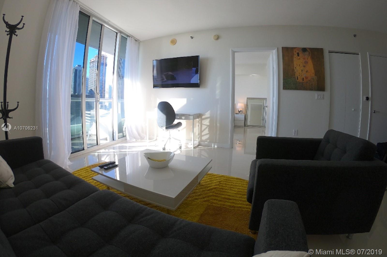 Beautiful 1 bedroom plus den floor plan unit in a high floor at the luxurious Icon Brickell Tower 3 (W Hotel Miami) with bay and skylines views. Unit is fully furnished. Top of the line gourmet kitchen with Sub Zero and Bosh stainless steel appliances. Cable and internet included in maintenance fees. State of the art pool, spa, party room, 4 in-house restaurants including the world famous Cipriani.