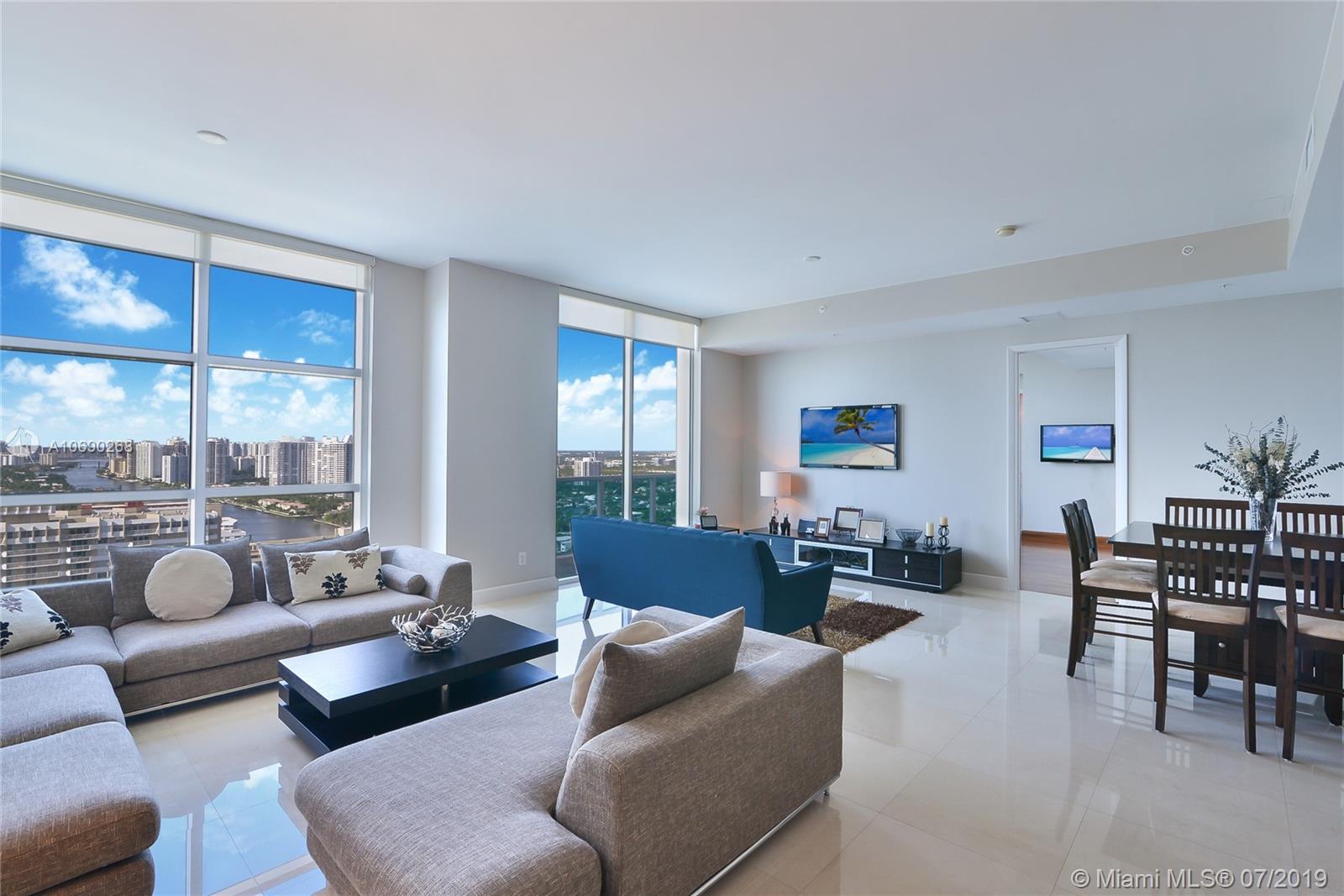 THIS MODERN CONDO HAS NATURAL LIGHT FROM UNOBSTRUCTED PANORAMIC VIEWS OF THE OCEAN, INSTRACOASTAL AND CANALS.THE OPEN CONCEPT EMBRACES 2-BEDROOM WITH 2-1/2 BATHROOMS BOTH WITH BUILT-IN WALK-IN CLOSETS WITH MARBLE & SOLID HARDWOOD FLOORS. THE HIGH FLOOR-TO-CEILING WINDOWS AND SLIDING DOORS FRAME THE VIEW LIKE A PICTURE. BALCONY HAS GLASS FRAME TO ENJOY THE ENLESS VIEWS. THE KITCHEN HAS HIGH-END APPLIANCES, SMARTY CONCEALED LAUNDRY WITH ORGANIZED PANTRY. THIS MODERN BUILDING OFFERS MANY AMENITIES LIKE 24/7 FRONT DESK ATTENDANT, GUEST VALET SERVICE, BUSINESS CENTER & CONFERENCE ROOM, WELL EQUIPPED FITNESS CENTER, POOL DECK WITH CABANAS FACING THE WATER AND MARINA. STEPS FROM THE SANDY BEACH, WALKING DISTANCE TO FINE DINING & ENTERTAINMENT, ACCESS TO INTERSTATE HIGHWAYS, AIRPORT AND SEAPORT