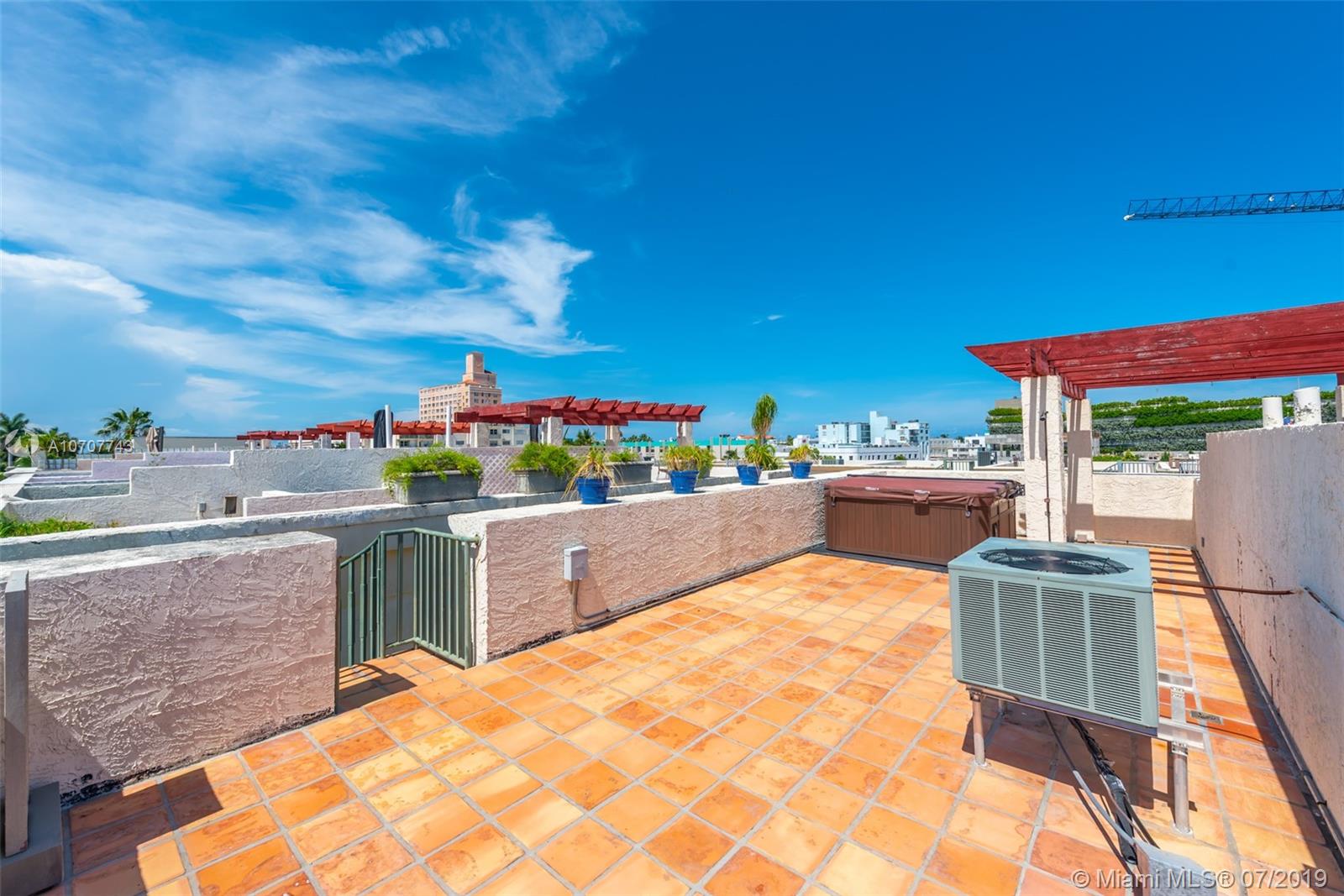Beautiful South Beach residence in Mediterranean boutique building. This 2-story home offers 2 BD/2 BA on the 2nd level with an eat-in kitchen, spacious living room, and powder room on the 1st floor. Enjoy true Miami beach living with large, private rooftop terrace and hot tub. Upgraded with brand new tile and wood flooring. Assigned, secure parking. Located within walking distance from the Beach, South Pointe Elementary, Lincoln Road, , South Pointe and Flamingo parks, and historic Ocean Drive. Ready to move in immediately. Easy to show.