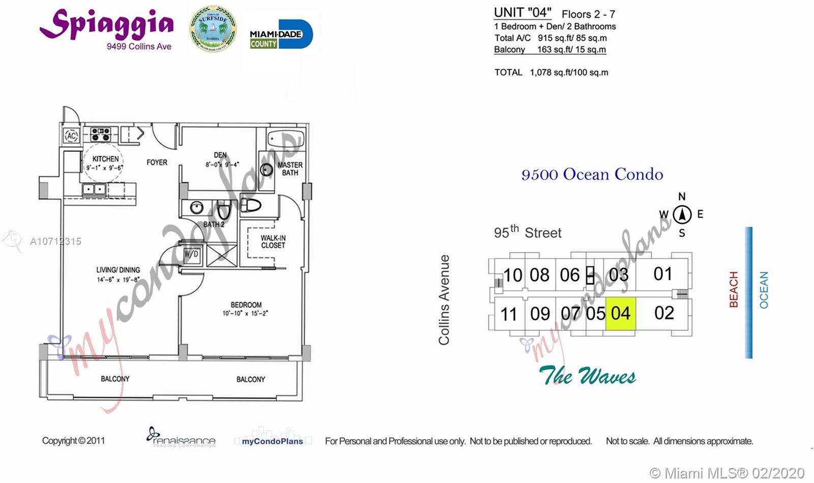 Beautiful Ocean view 1 bedroom + Den + 2 Bathrooms ( Den converted to 2nd bedroom ) Updated kitchen with Marble counter top and stainless steel appliances, washer and dryer inside the unit. ***2 Parking spaces - Valet*** Ocean front Boutique type building offers beach service, valet, management on site and fitness center. Spiaggia is located in the heart of Surfside, steps away from great shopping & dinning at Harding District and Bal Harbour Shops - walking distance to house of worship and same block as the trendy new Grand Beach Hotel. Currently rented for $2500/m ( Good return as investment )