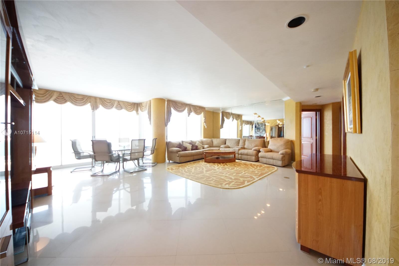 Spectacular high floor 2/2 apartment! Enjoy sunrise to sunset views from expansive wrap-around balcony facing Ocean, Canal & Miami skyline. This unit is all tiled and painted thoroughly including the ceilings with high end Venetian plaster. Bath rooms and kitchen are all updated. Walk in closet fully build out with wood. Here you will live a luxurious lifestyle with spectacular amenities, a private full service beach club with beach and pool attendants, spa, gym, tennis courts, racquetball, beauty salon, sauna, steam room, oceanfront dining, and 24/7 security. Walking distance you will find the famous Sunny Isles Beach Pier and the newly opened Gateway Park plus a vast array of fine wining and dining venues. Location!