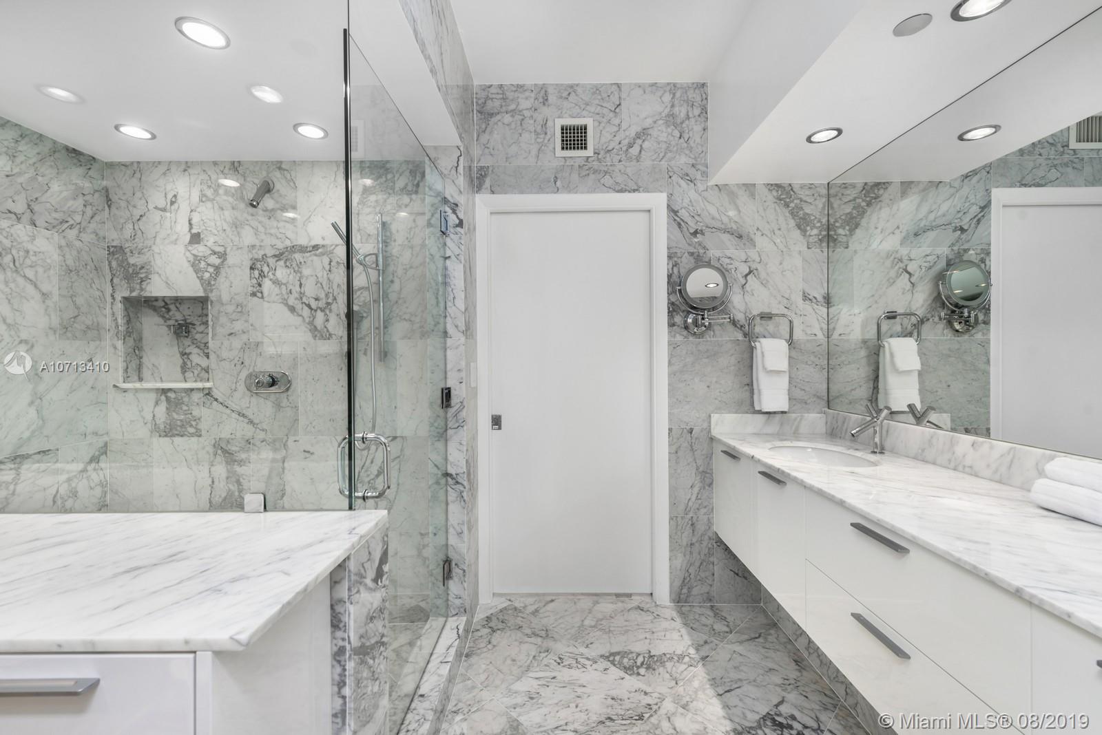 Impeccable unit completely renovated with the finest materials.Needs nothing & is presented with the utmost taste.This rarely available and spacious 2BR/2BA unit has the best Murano Grande has to offer!Open kitchen layout contains custom pull out pantry system,Sub Zero refrigerator, Miele oven, Jenn-Air induction cooktop,Double Blanco deep sinks,&touch faucet. Living room has built in entertainment and nest thermostat.Master contains full size stacked LG washer & dryer in custom closet with folding pocket door & is equipped with curtains & remote black out shades. Guest contains blackout & privacy shades.Both master and guest bath have floor to ceiling marble, Duravit appliances, & Stark fixtures. Enjoy amazing day and night views of the ocean & Miami Beach skyline from your vast terrace.