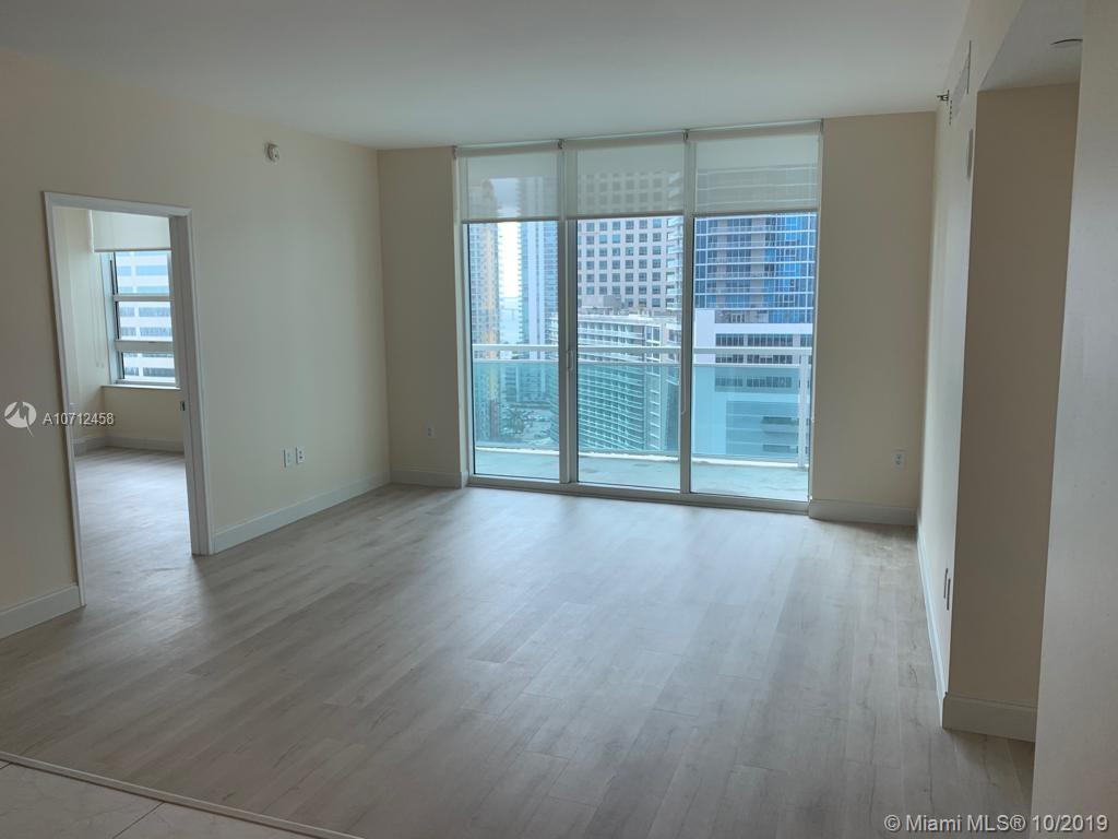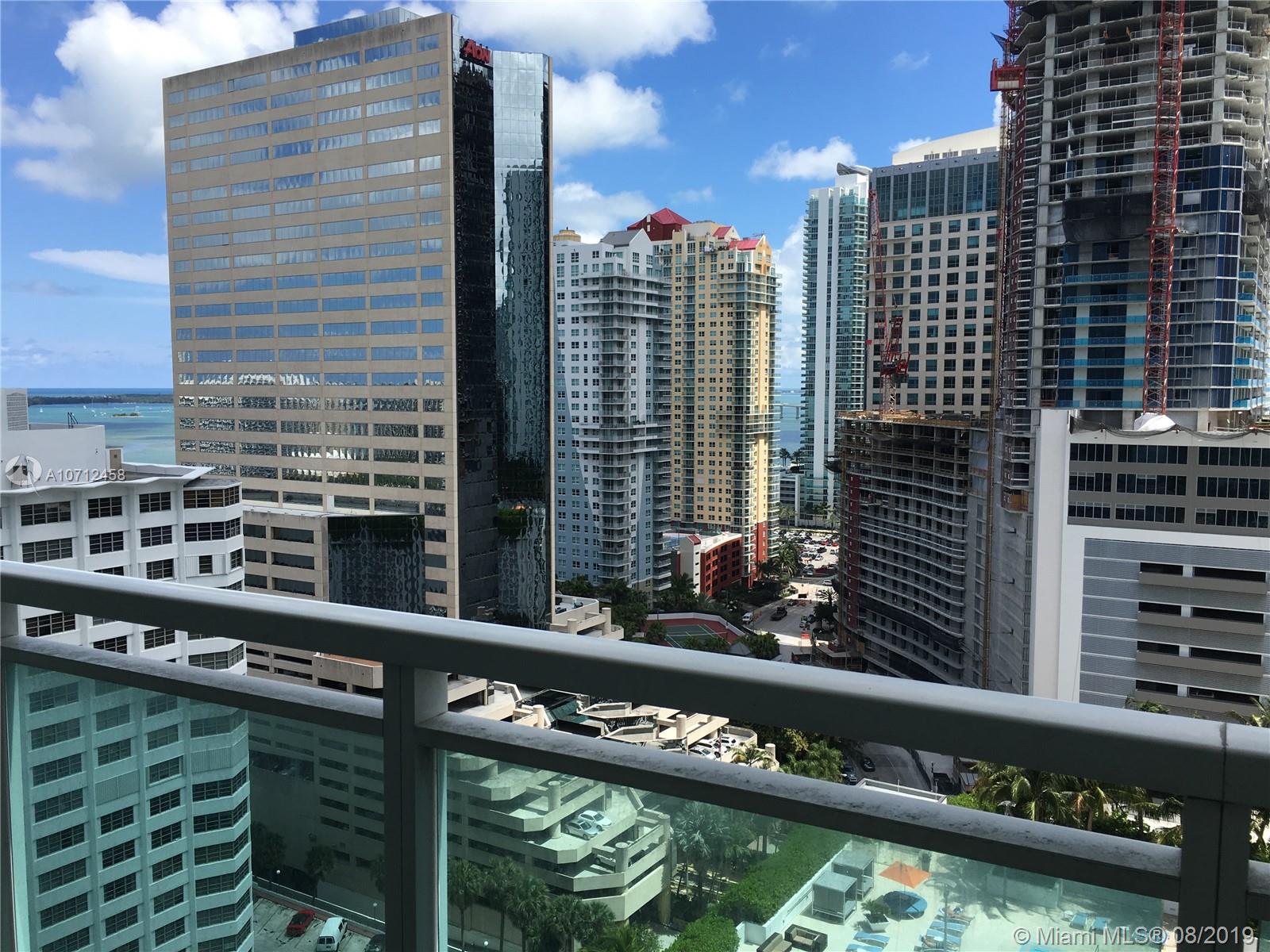Beautiful view of skyline, bay and pool from this great unit on 21st floor. Compared to other units in this building this one overlooks over swimming pool area belonging to the building, creating an open space that you will never loose, no buildings will be built just in front to block your view!!! A plus in Brickell. You have some ocean view too! and a high rise! 2Bed/2Bath unit, recently installed luxurious vinyl floors (wood look, super water resistant), modern kitchen w/ granite countertop and stainless steel appliances. Washer and dryer inside the unit. Assigned parking space. The building offers world class amenities such as 2 heated pools, Sauna, Theater Room, State-of-the-art gym, Business Center, Party Room, Pool Table, Lounge, 24hr security.