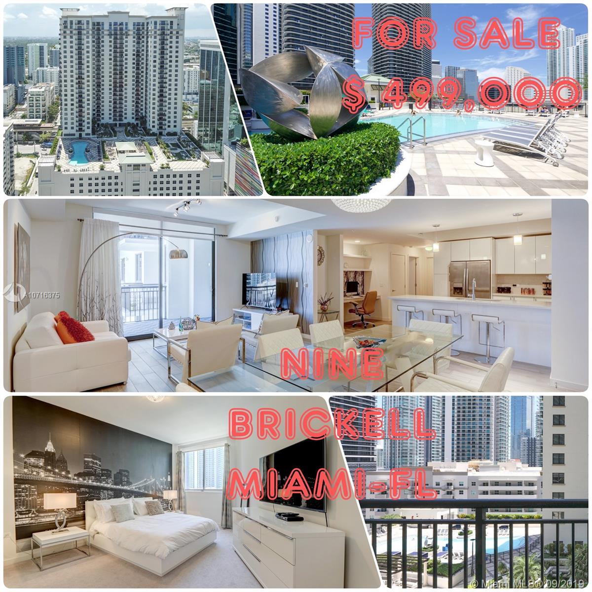 NINE at Mary Brickell Village #1616, SEE YOUTUBE VIDEO. Reduced for Quick Sale $ 465,000 plus $ 20,000 for THE NEW furniture (Must be sold together), Look like new, never been rented, is used only for owner vacations, price firm or little room to negotiate. Seller paid over $ 600,000+ $ 27,000 for Luxury TUI Furniture (See pictures). Similar furniture unit 2416 sold $ 487,000, in 05/2019. -SIZE: The Biggest 2 Bed+ 2 Bath w/, 152 M2= 1,644 SF Total, 1,501 SF Builder, 1,384 SF- Property appraiser. -LOCATION- Next door to Brickell City Center. -GREAT FOR INVESTORS: Condo allows short term 30 days rental & can go up to $ 4,000 p/ month. -PARKING: 1 assigned & 1 valet -GREAT AMENITIES: Heated pool, 3 hot tubs, grills, Sauna, party room & much more -$ 912 p/ Month. Taxes-$ 9488 / Year.