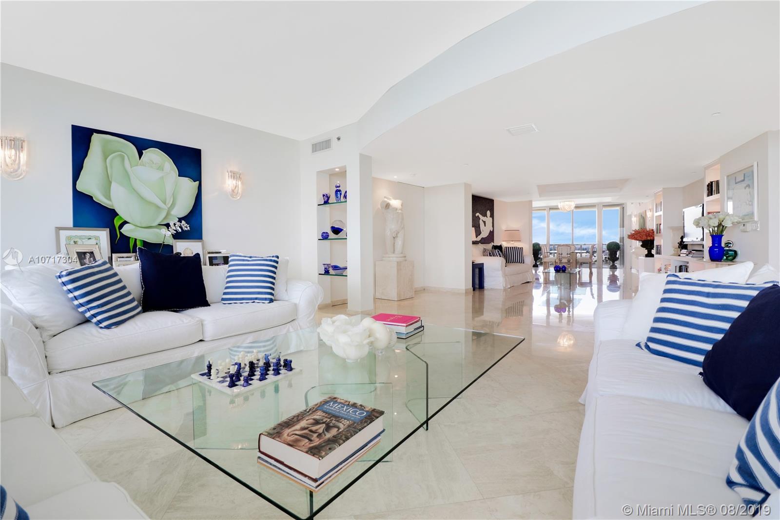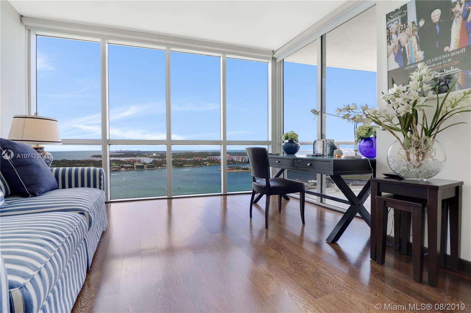 Spectacular flow-through unit at the ultra-chic Murano Grande with breathtaking, unobstructed views of Miami Beach, Fisher Island and the Miami skyline. Residence 2904 consist of 3 BED/3.5 BATHS and offers floor to ceiling windows, 2 large terraces (sunrise/sunset) gorgeous custom finishes including LED lighting system and electronic window treatments, marble and wood flooring, state-of-the-art-kitchen with Miele/Subzero appliances and a private elevator vestibule. Murano Grande is one of SOFI’s most exclusive full-service waterfront buildings directly on Biscayne Bay with Five Star resort-like amenities such as a bayside pool, onsite restaurant, gym, spa and tennis court. Adjacent to the Miami Beach Marina, dock your boat and a day at sea is just minutes away.