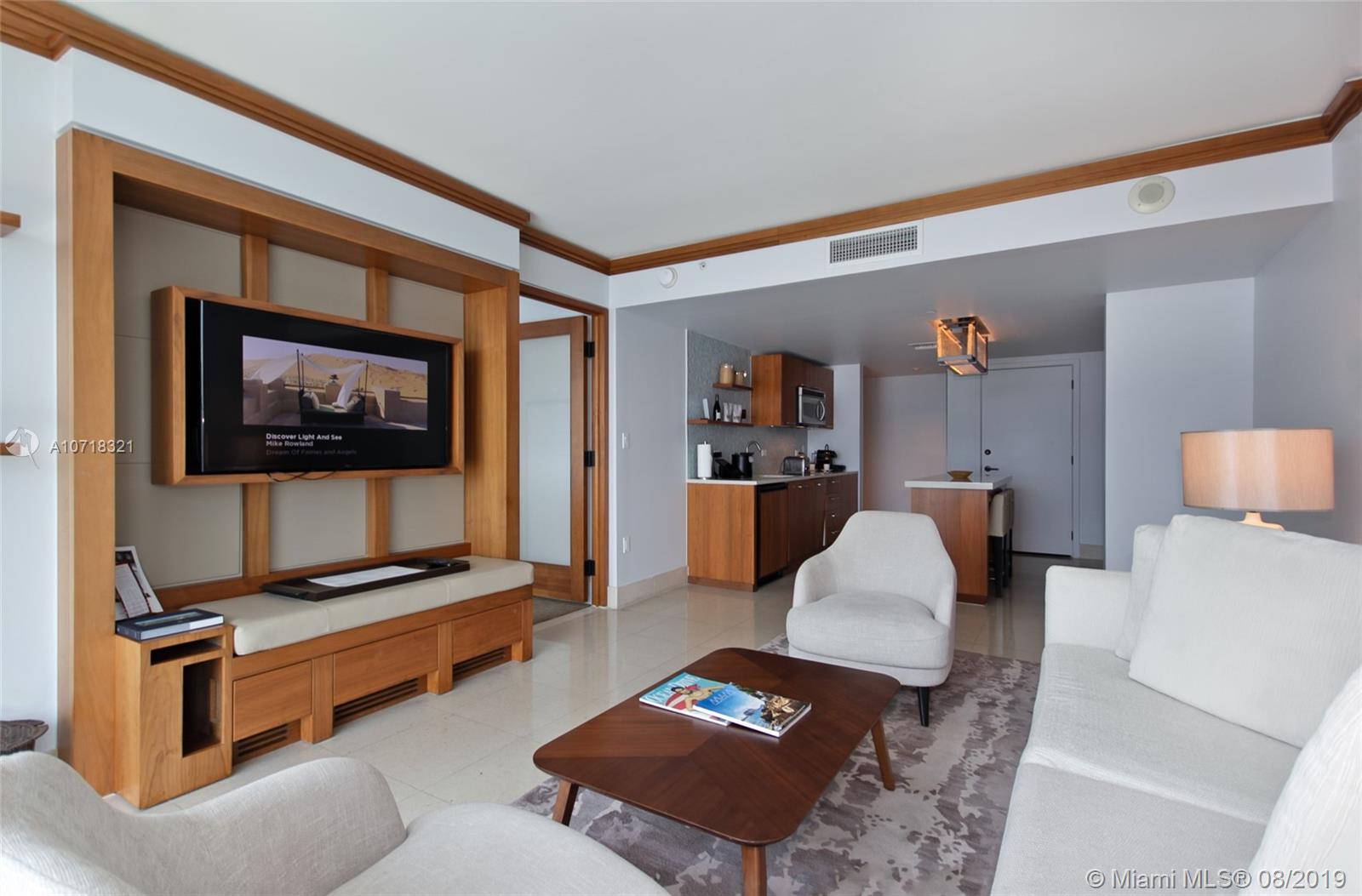 Highest floor corner hotel suite unit at Carillon Miami Wellness Resort, with city, bay and sunset views. Option of participating in hotel rental program, or not. Owner may also keep for own use. Unit has always been in the hotel rental program; so, it has upgrades required by hotel and kept in the standards of the Carillon (and previously Canyon Ranch). Kitchen has 2 burner stove, microwave, refrigerator, washer, dryer, dishwasher. Large, spacious unit can be made unique for longer-term living. Classes 7days week, ALL included. Enjoy 70,000 sqft fitness spa center – to rejuvenate body an soul -- 4 pools, salon, concierge, restaurant, bar, 24hr security, valet, wellness staff, boardwalk. Great value for desired unit. Luxury and wellness combined an unparalleled lifestyle.