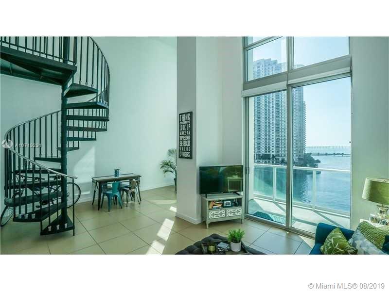 Amazing bay views from this 2-story Loft with South exposure. This one-of-a-kind unit offers 19'4" high ceilings, tile floors throughout, floor to ceiling black-out shades. Master bedroom upstairs. Granite counter tops, stainless steel appliances, top-of-the-line appliances. Water, basic cable and Internet included. One assigned parking space on the same floor. Walk to Whole Foods Market, Bayfront Park, metro mover and Novikov Bar & Grill Restaurant, Joe & the Juice downstairs and 17 screens' Silverspot Cinema. Building offers luxurious life style, 24-hr front desk attended. Chic downtown living at its best!