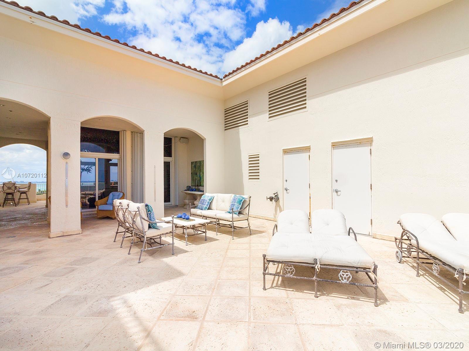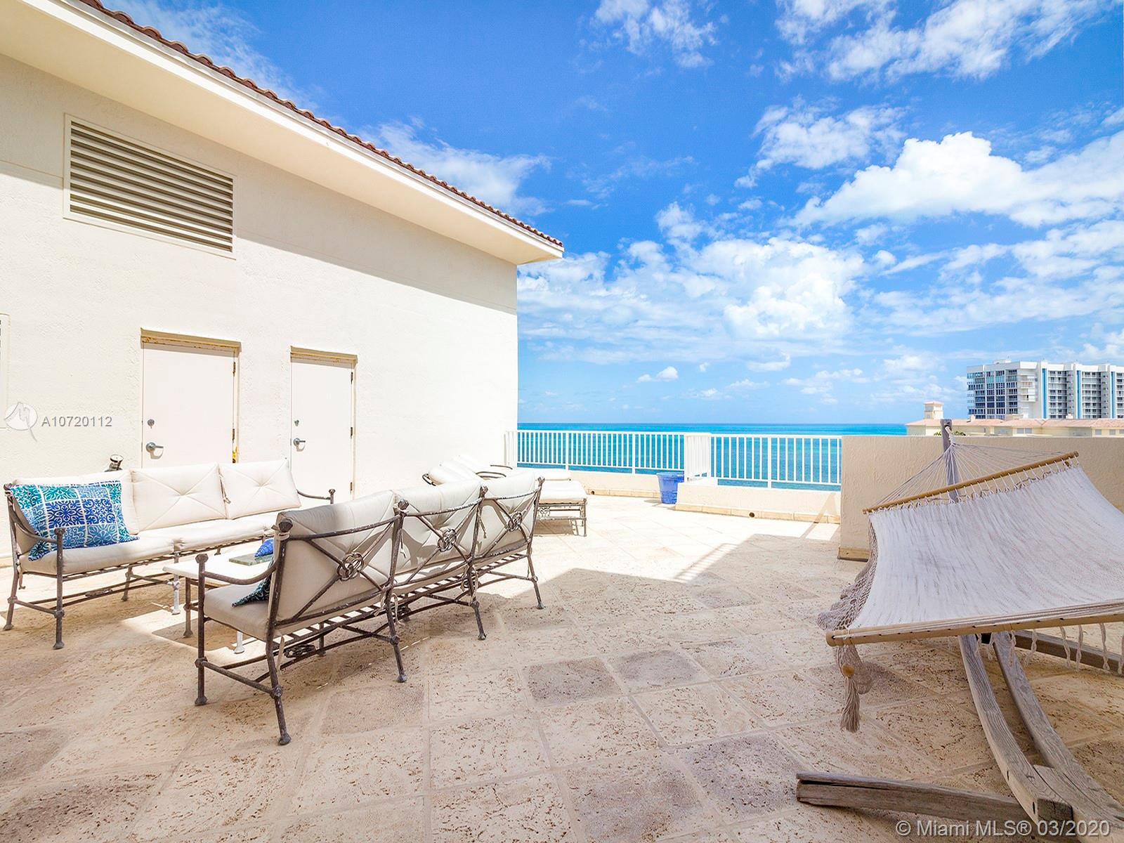 Sensational 2 story Penthouse with Ocean, City, Bay and Beach views. Expansive roof terrace is partially covered and can be enclosed to add additional living space. Main floor comprises 3 bedrooms, 4.5 baths. Total 2740SF plus East and West terraces. Lowest priced Penthouse in the Ocean Club.