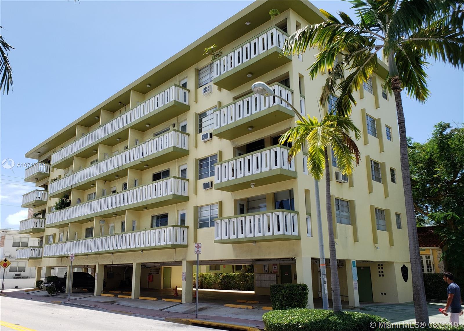 Well kept, updated studio unit in low-rise secure building on Meridian and 8th. Open floor plan, breakfast bar and extra large walk-in closet. Private outdoor balcony. Assigned covered parking space! Secure building with elevator. Short easy walk to the beach and the entertainment district. Just a few blocks to Publix, Target and Central shopping area. SHOWINGS WILL START AUGUST 16! Motivated seller and priced to sell!
