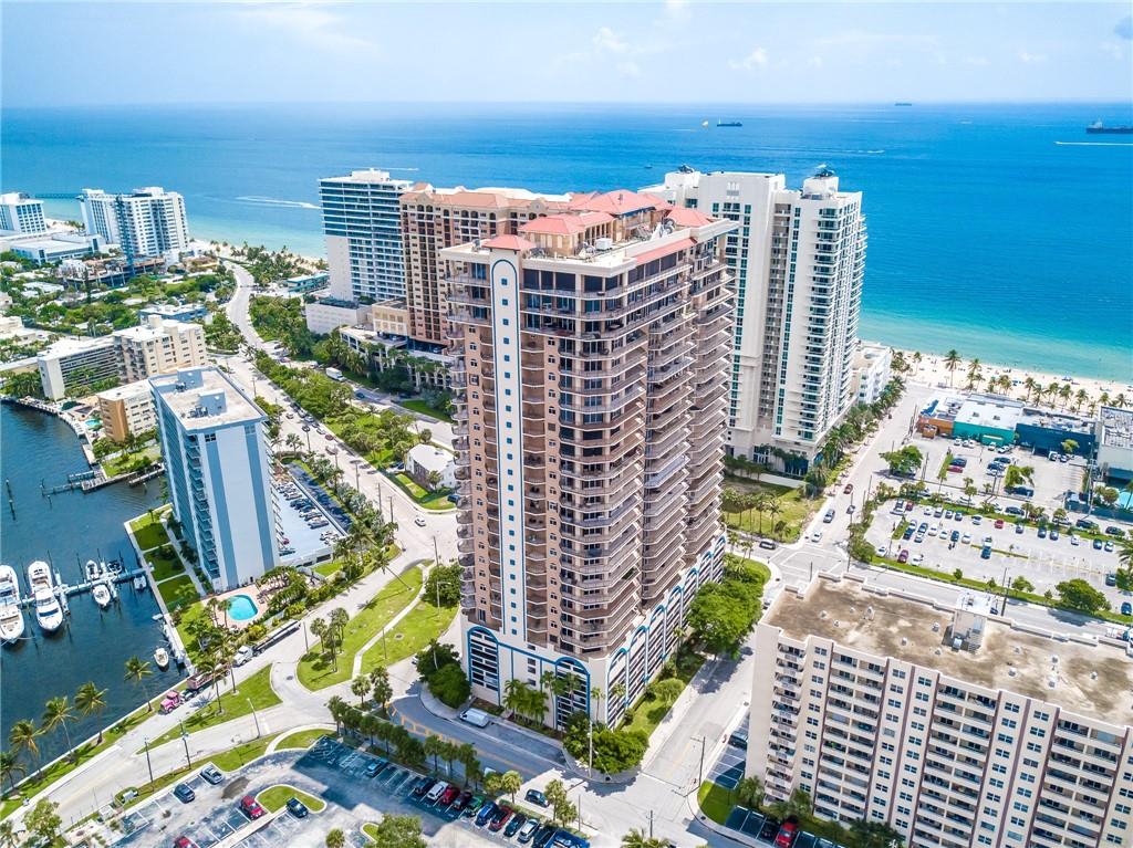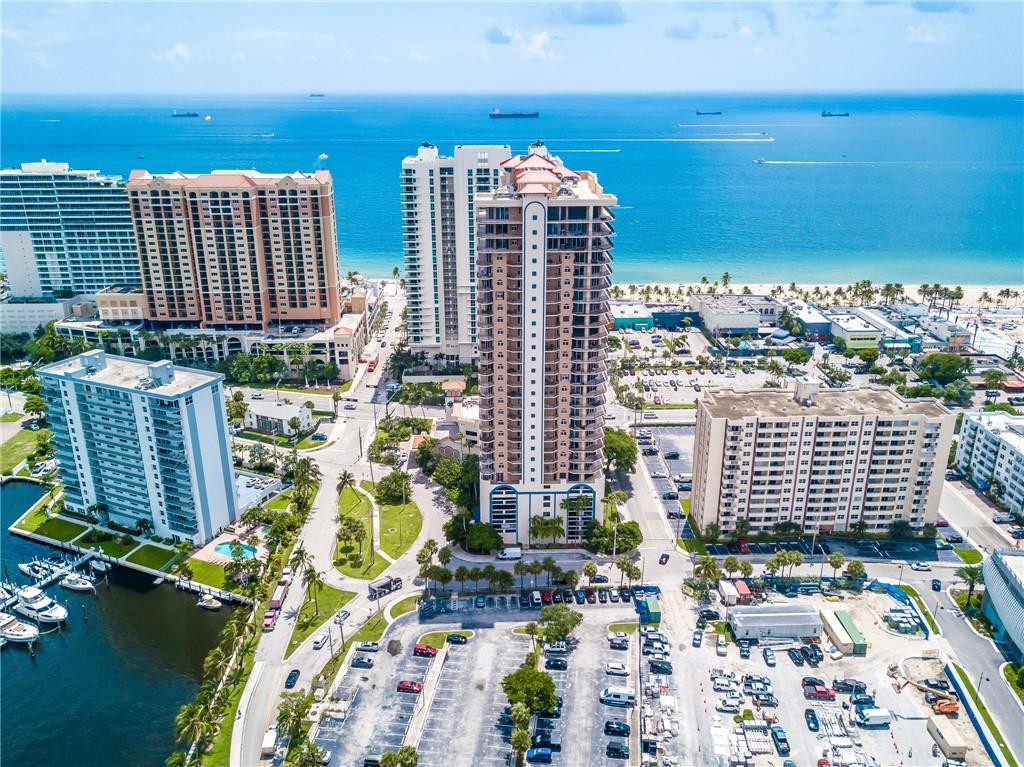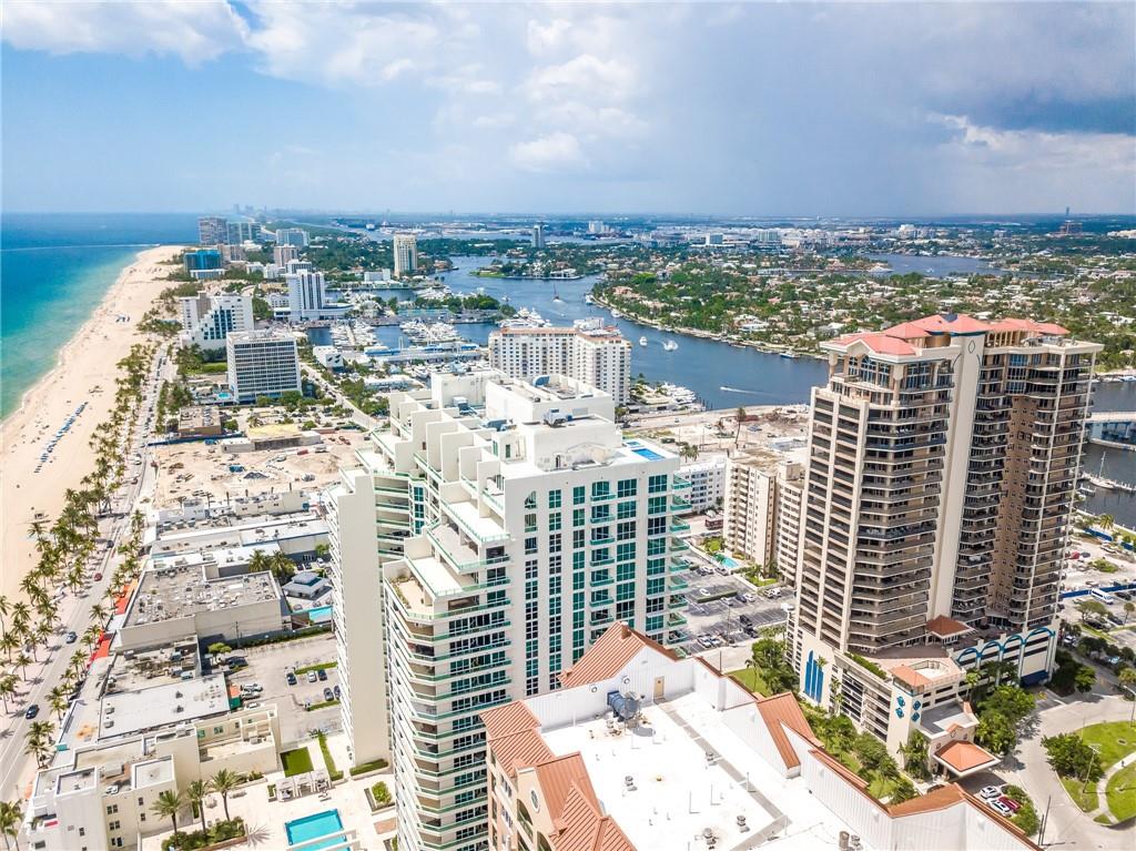Breathtaking Ocean, Intracoastal AND City views from this SE Corner Unit! Tremendous wraparound balcony offers multiple options for outdoor living space. Jackson Tower is nestled in a prime location between the Las Olas Marina Project, the $49 Million Las Olas Beach Park Project and Fort Lauderdale Beach! The new Marina sits next to Jackson Tower and will feature 68 boat slips and 2 new restaurants. The Las Olas Beach Park Project is adding open green space, inviting gathering spots and a tree-lined promenade. Two bedrooms, 2.5 bathrooms plus a bonus room that could be used as a third bedroom or office. Luxurious lobby with elevator entry directly into the unit. Two parking spots, pet friendly building, fitness center, 7th floor heated outdoor pool and spa and on-site management office.