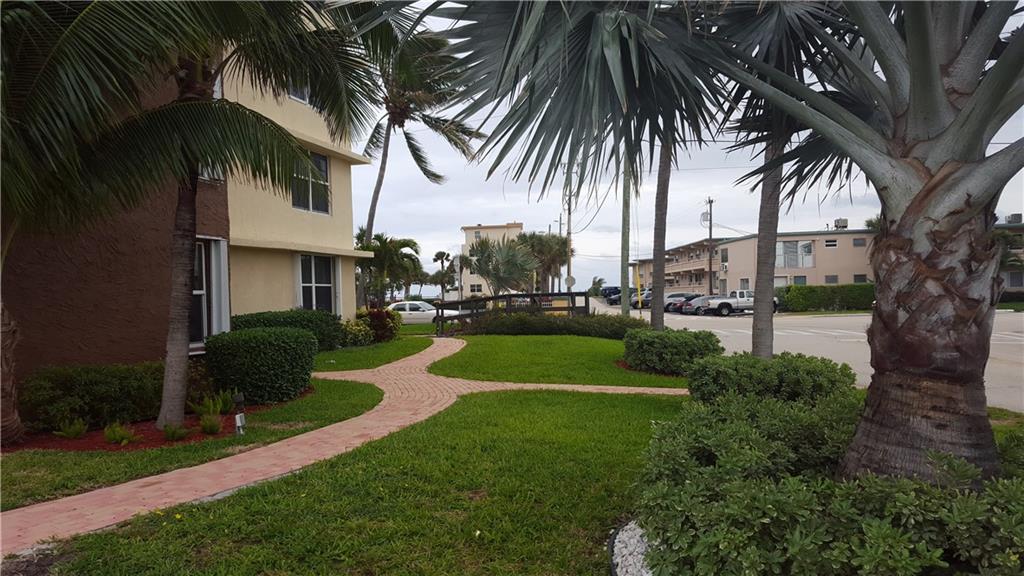 CORNER UNIT.....Boutique building just across the BEACH ! One of the lowest prices in the area. 2/1.5 with a balcony over looking the pool. Tennis court, heated pool, BBQ, community room with kitchen facilities, Laundry facilities, extra storage, High impact windows and door. FURNITURE available for sale separate .40 year building inspection already passed.