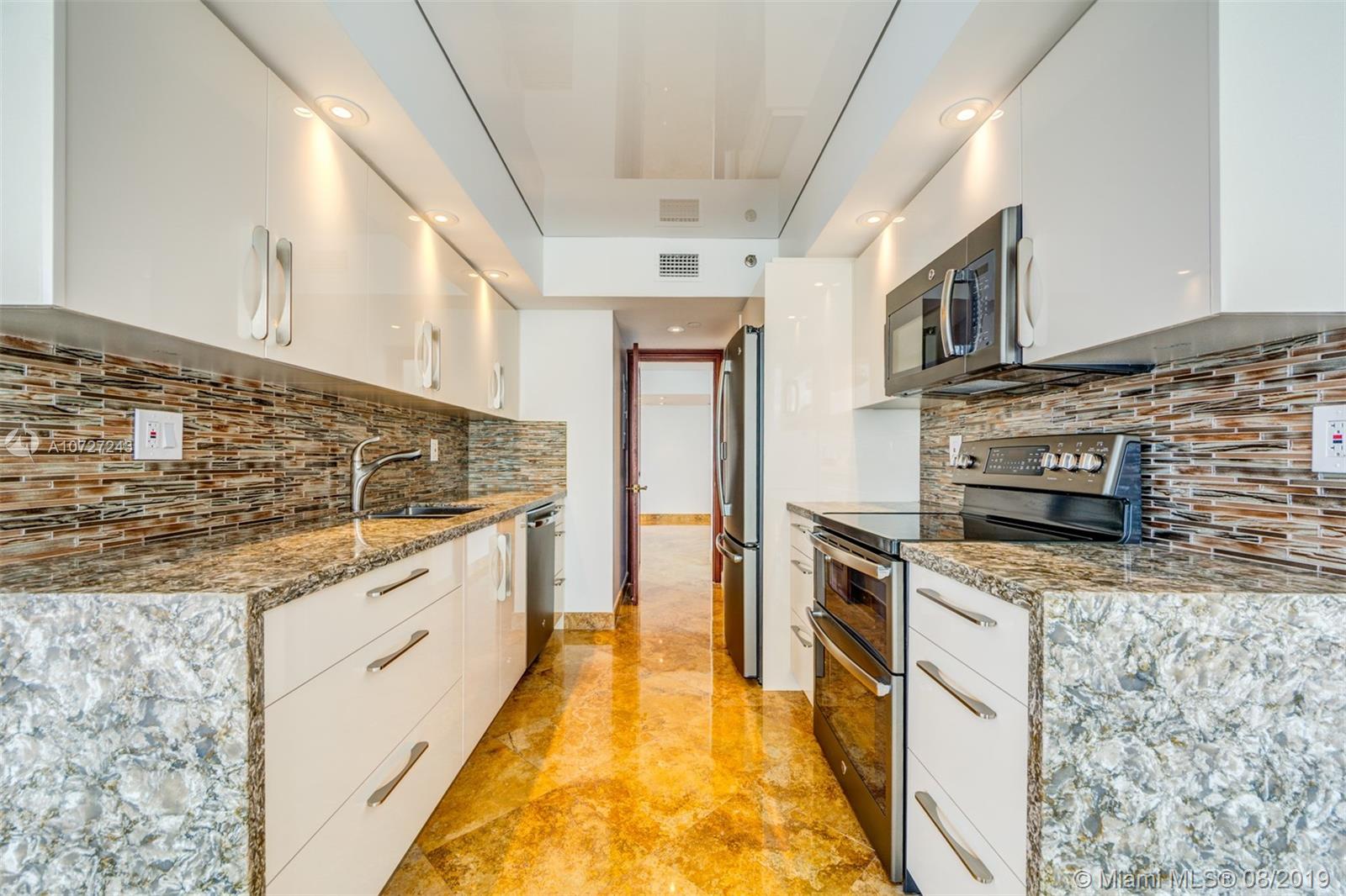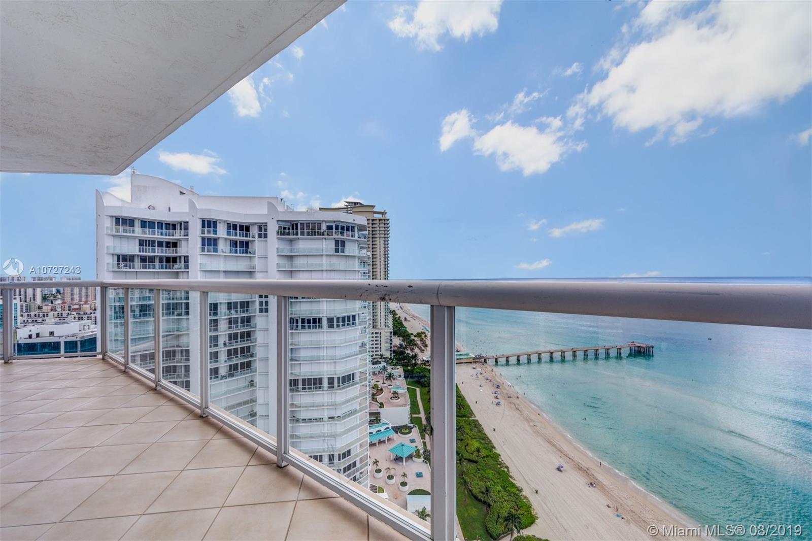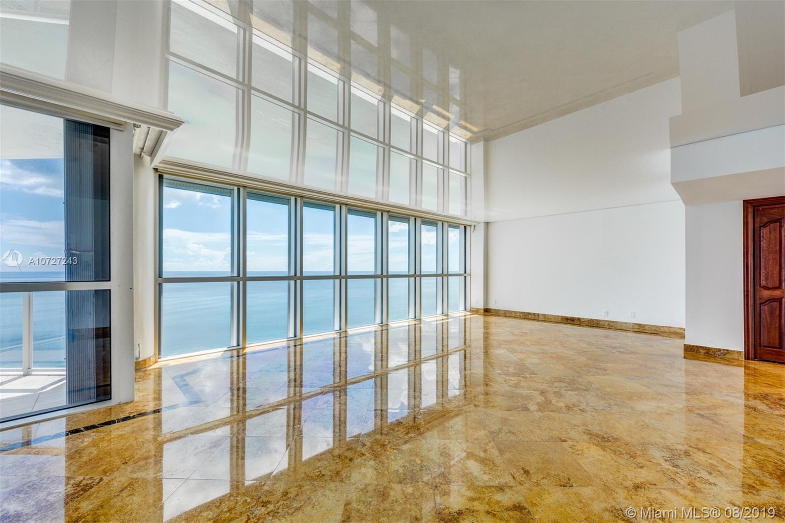 Spectacular, unobstructed oceanfront & city views from this elegantly appointed 2020 SF, 2 Bd/3 Bths corner unit with high ceilings which reflect the ocean & wraparound balcony. New kitchen with top-of-the-line SS appliances. Inlaid polished marble flooring throughout. Custom walk-in closets, luxe designer baths with high-tech toilet, roman tub & sauna in MBR ensuite. Remote controlled window treatments & hurricane shutters. Building offers resort style living with club; heated pool; fitness center; basketball, racquetball & tennis courts; salon; cafeteria; formal dining restaurant & beach valet service. 24-hr. gated security and attended lobby. $ 1,298 monthly fee, $ 750 quarertly beach club fee, $ 265 quarertly for POA fee, $ 750 annual mandatory expenses for club.