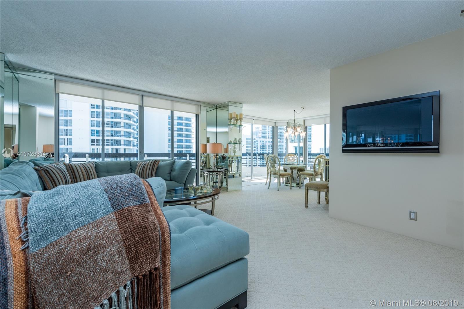 Price to sell. Enjoy great views of the Intracoastal, Sunny Isles Beach and the Mystic Pointe from one of the few 2 bedrooms over 1,400 sq. ft. available at this time in all Mystic Pointe. Very bright corner unit with an open floor plan and lots of natural light. Separate laundry area. Mystic Pointe is an all-inclusive gated community providing an active lifestyle w/ pool, spa, tennis courts, walking paths, gym & conveniences of dry cleaning, market, salon & more. 3 min to Aventura Mall, 5 min to beach.