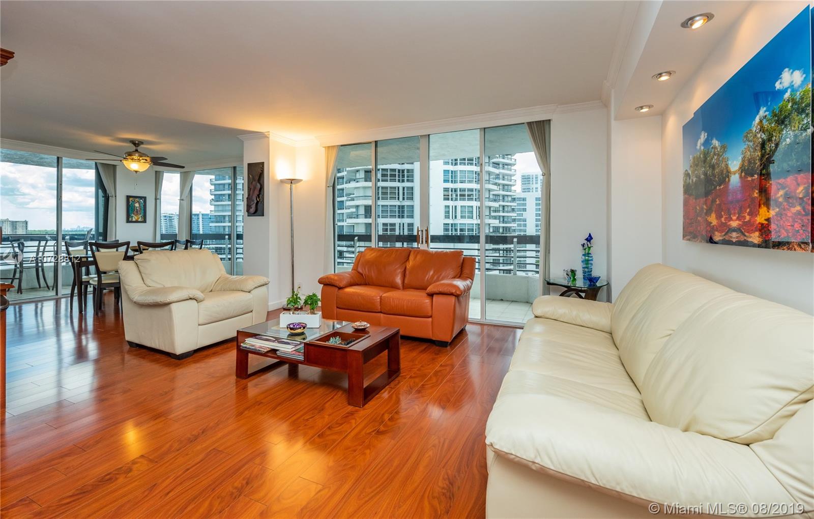 Spectacular and completely updated unit with incredible Ocean & Inter-coastal views. Spacious floor plan. This Large 2 bedroom - 2 bathroom corner unit has been totally upgraded with the highest quality kitchen, bathrooms, crown/molding, baseboards, build-out closets, hurricane shutters and wood floors throughout. Full-service Community with Tennis Courts, Pool, Sauna, Entertainment Room, Marina, Convenience Store, Salon, Restaurant and much more. Located within walking distance to Aventura Circle and Aventura Mall. 5 minute drive to the beach and the most amazing restaurants.