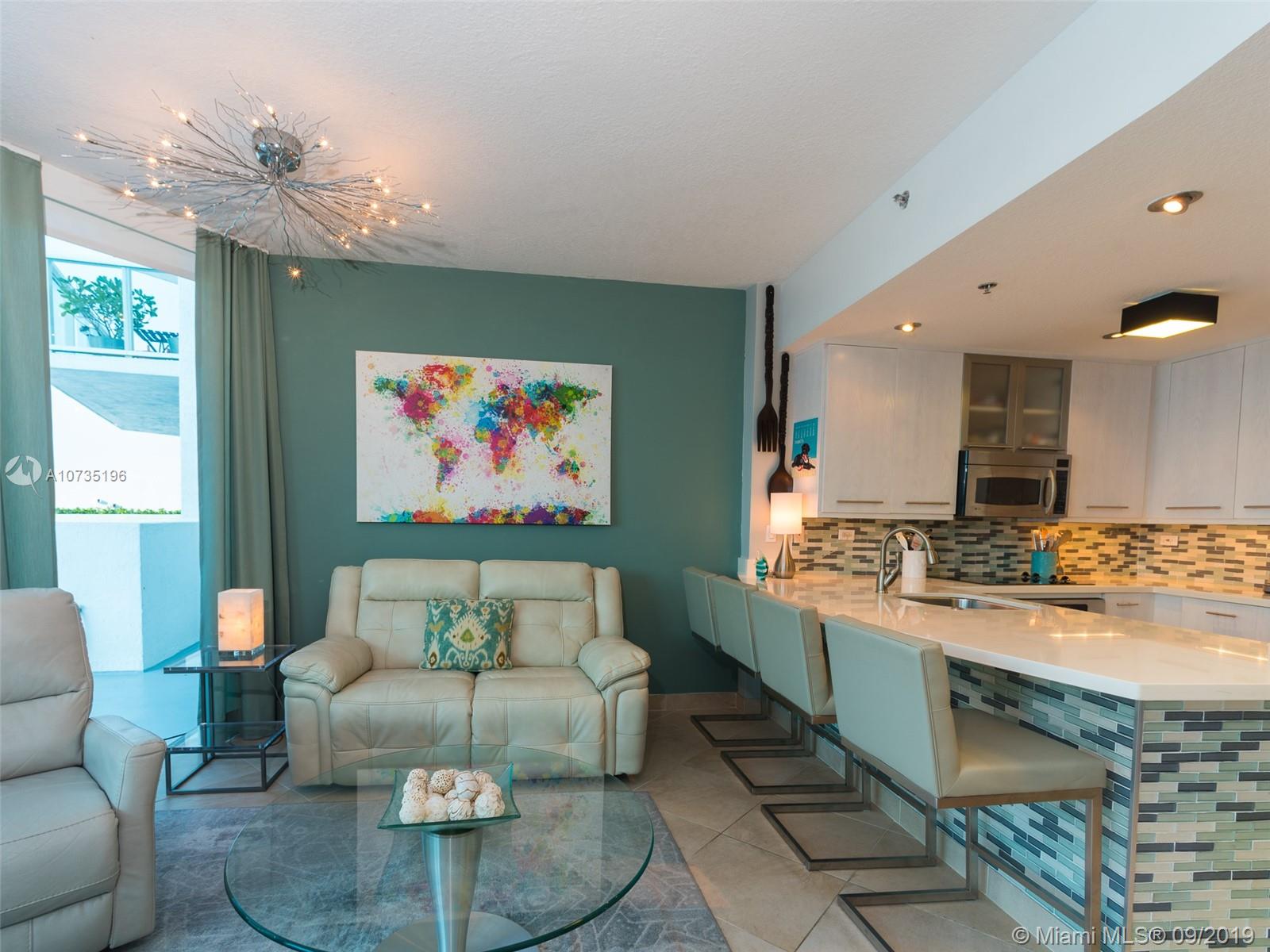 Priced to Sell! Amazing 1 bed 1.5 bath w/ sprawling private patio in the beautiful beachfront Bel-Air on the Ocean. Step into this bright & modern oceanside retreat. Upgraded kitchen features oversized quartz countertop, solid wood cabinets with ample storage and s/s appliances. Spacious master includes walk-in closet, linen closet and en suite bath. Dine al fresco while enjoying sunrises & sunsets with the ocean breeze on the massive private lanai that offers unlimited options for entertaining or relaxing. Amenities include gleaming pool & spa, custom built-in BBQ & full summer kitchen, gym, conference room, billiards room & 24-hour concierge & security. Unit comes with 2 parking spaces. Big dogs welcome with no size or weight restrictions. Ideal for investors - 30 day rentals permitted.