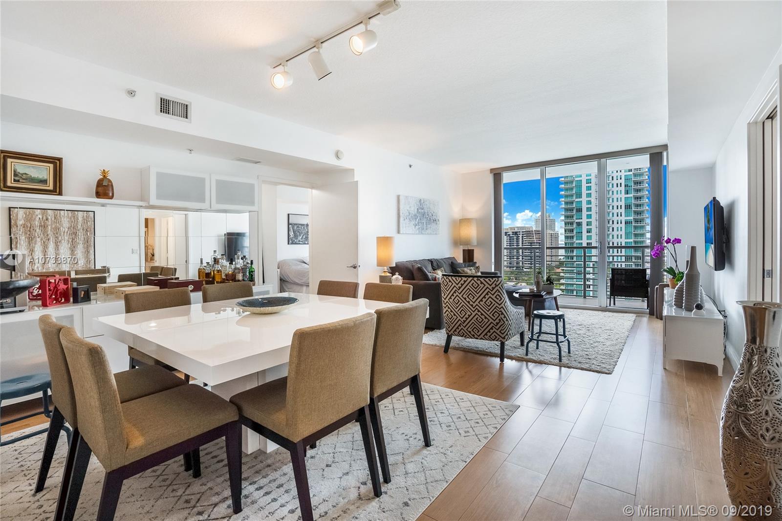 Enjoy a peaceful ocean/bay and city view from this large 2 bedrooms 2 bathrooms (1,227 sq ft) condo in downtown. In the heart of Brickell. New flooring throughout the apartment. The waterfront building has 2 pools, fitness center, spa, 24/7 security, concierge and much more. Located just few blocks away from Whole Foods, Movie Theater, Restaurants, Shopping, Brickell City Center, American Airlines Arena. Easy access to the highway, airport, South Beach.