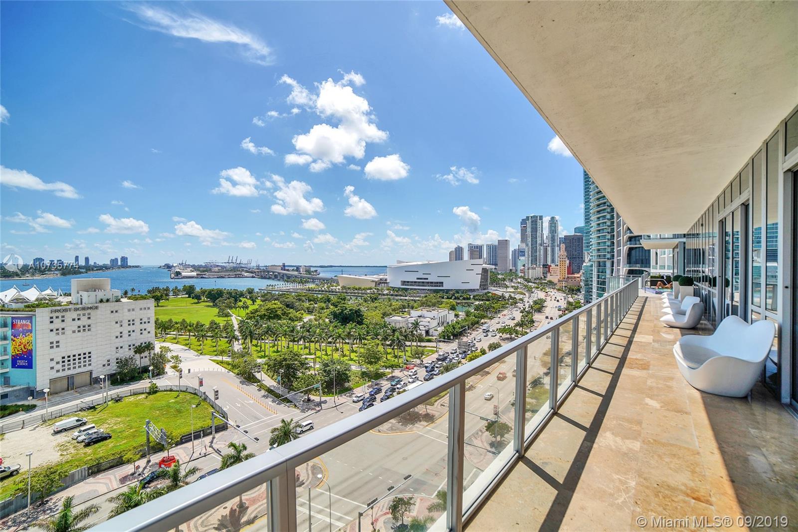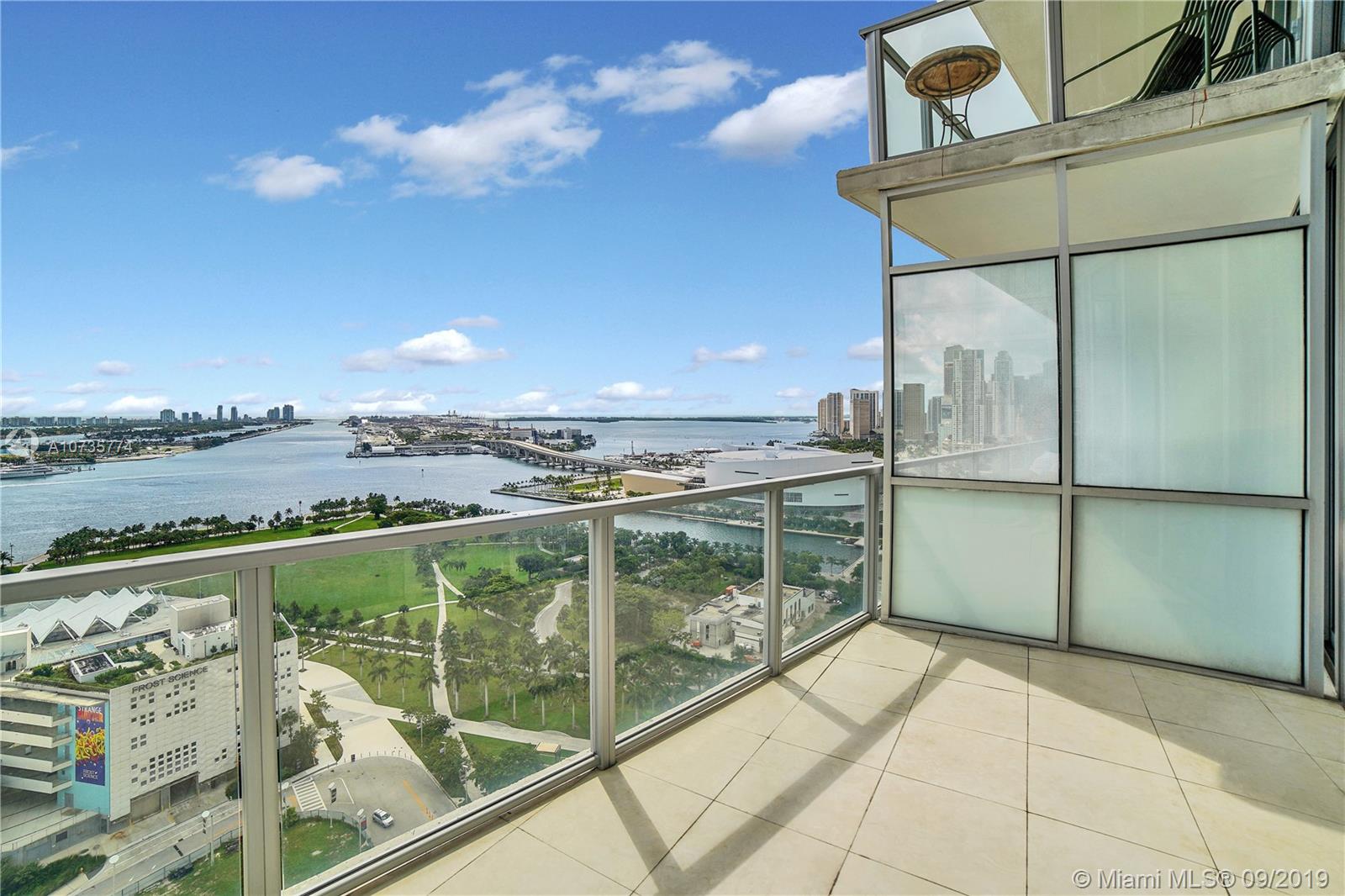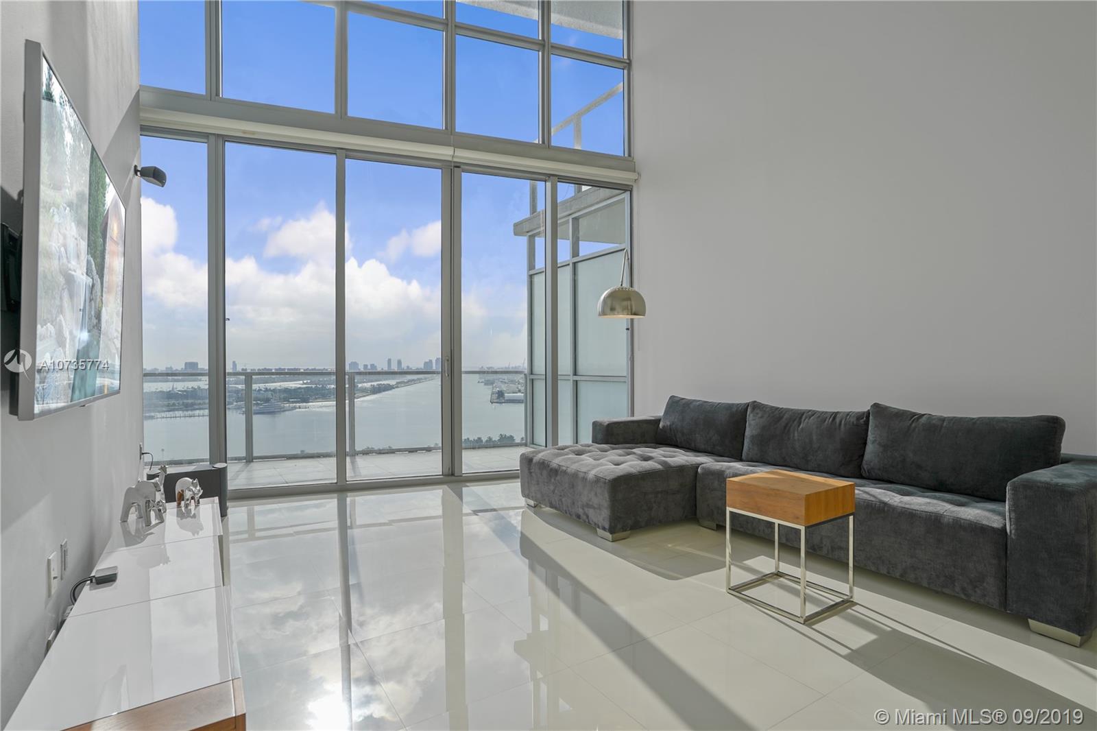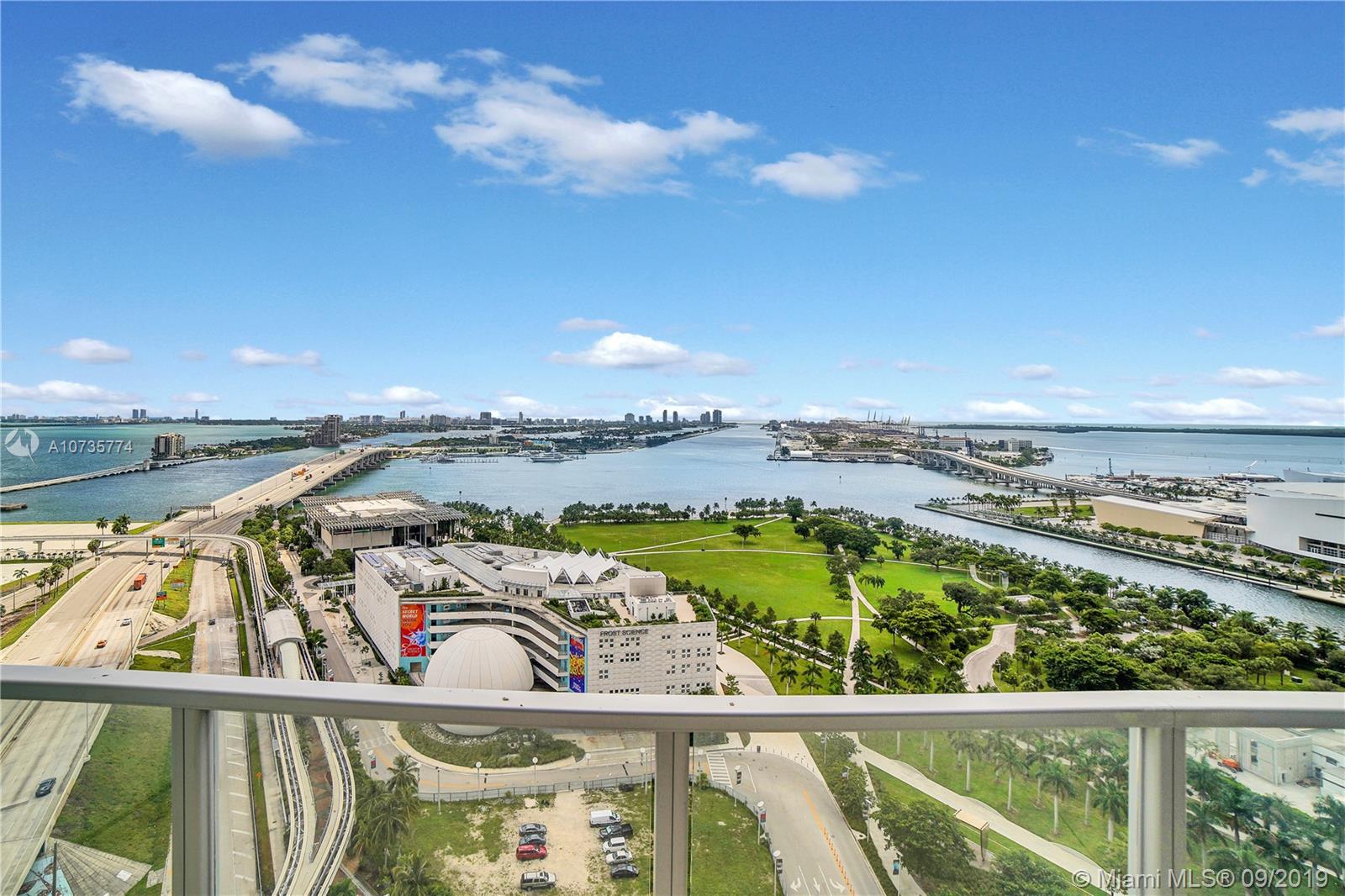 Stunning bay, park and city views await you from this pristine 2 story unit at Marquis Residences. This 1,675 S.F 1BD PLUS DEN /2BA loft is the size of a two bedroom apartment. This spacious unit comes finished with porcelain flooring throughout, full Viking kitchen appliances, motorized blackout shades and more. Live in the cultural hub of the city with the P.A.M., Frost Science Museum and the Adrienne Arsht Center for the Performing Arts all within a 2 minute walk from your front door. Marquis is a full service luxury building with 24 hour front desk, 2 pools and coming soon a new gym. This is downtown living at its best!