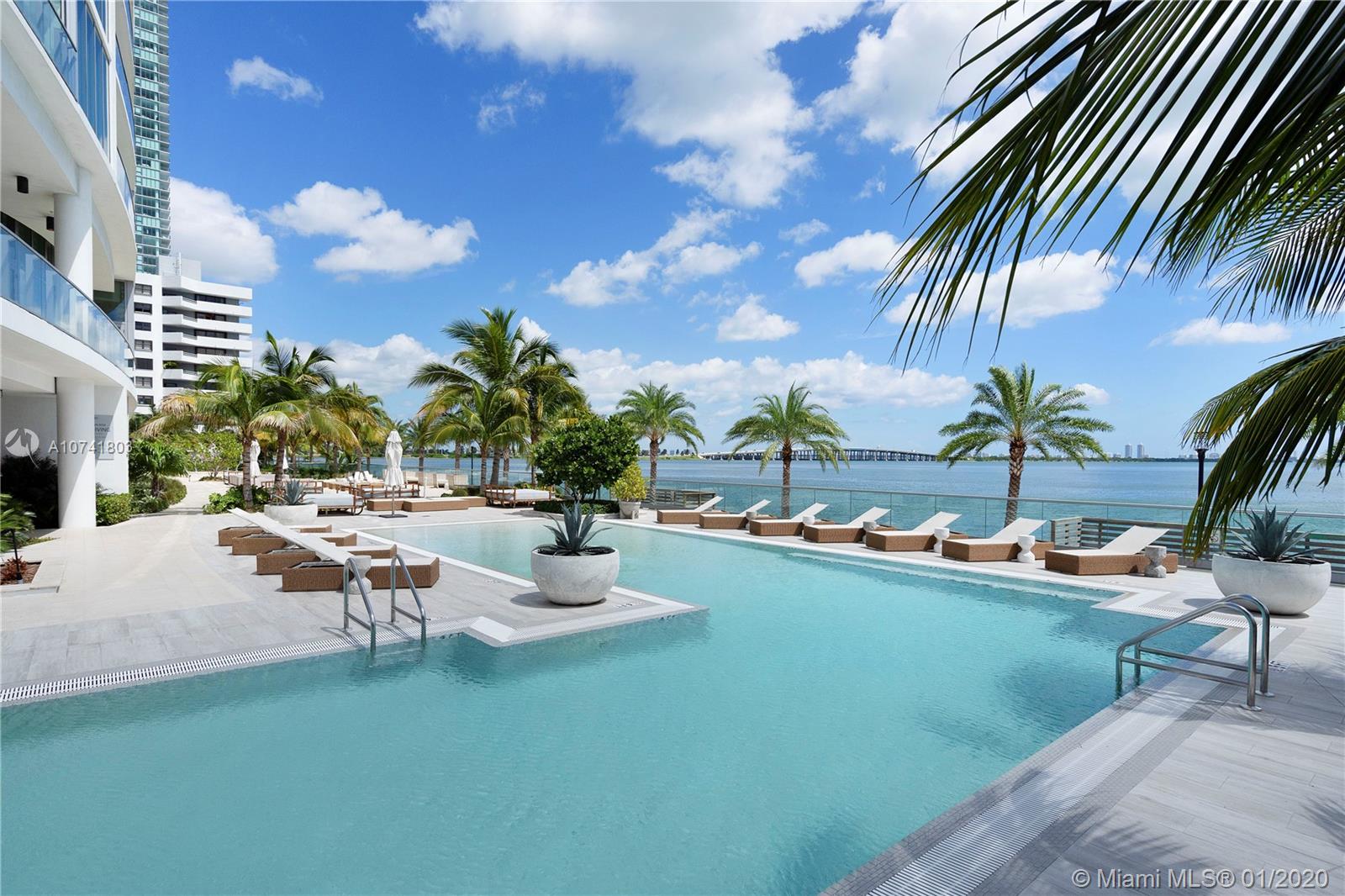 Stunning 2 bedrooms 2.5 baths high floor unit with incredible bay views and the South Beach skyline. Live like you are staying in a luxury 5 star hotel with 2 pools, tennis courts, beach club cabanas, fitness center, sauna & steam room, massage rooms, business center, valet, concierge and bbq area. Parking space and a 9x4 storage unit is included.This condo offers high quality upgrades with light oak wood floors, remote control electrical shades and smart lighting. Open kitchen with high-end appliances and floor to ceiling windows affording water views everywhere. Enjoy Edgewater’s extremely convenient location, only 10 mins away from the beach and MIA airport, minutes from wynwood, design and business districts. Truly a special property for the right buyer. Easy to show.